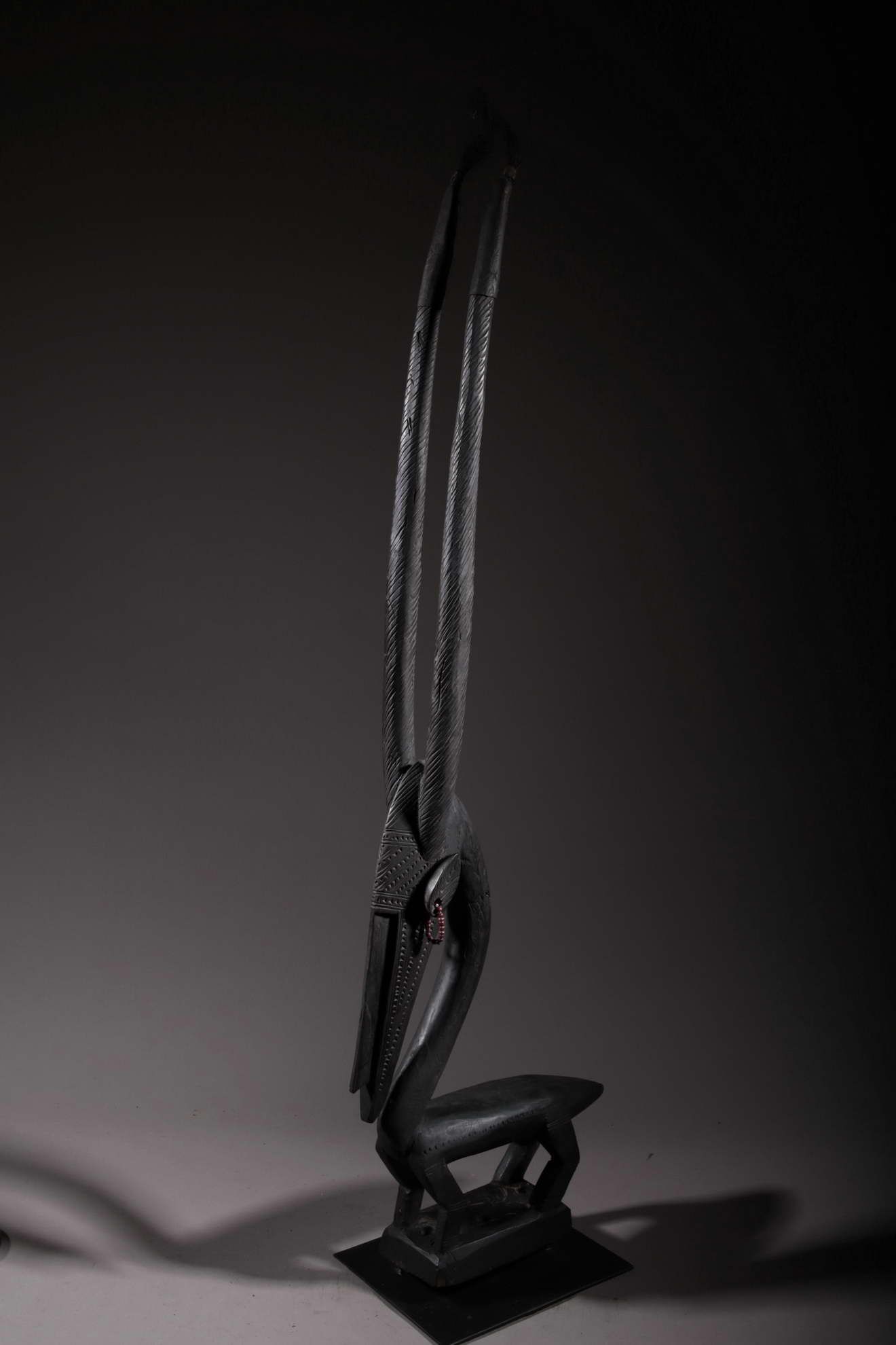 Cimier Tiwara Bambara du Mali. Pièce ancienne de plus de 50 ans. Pièce sur socle.