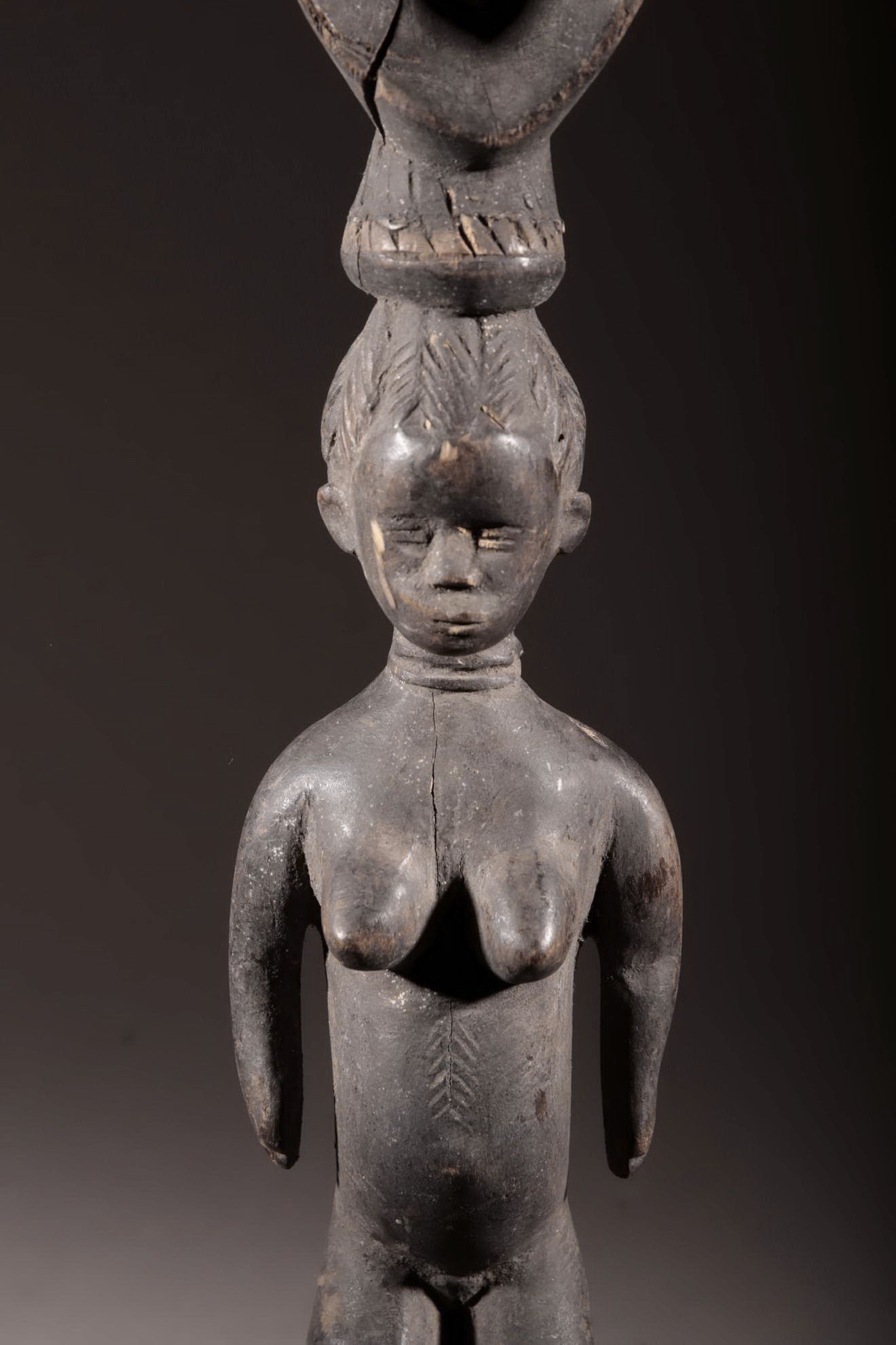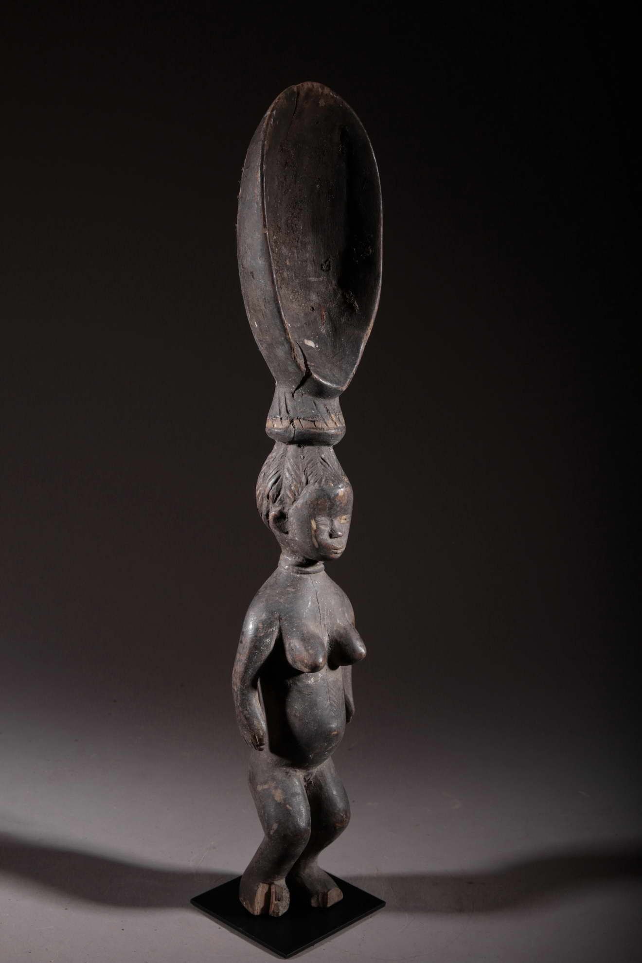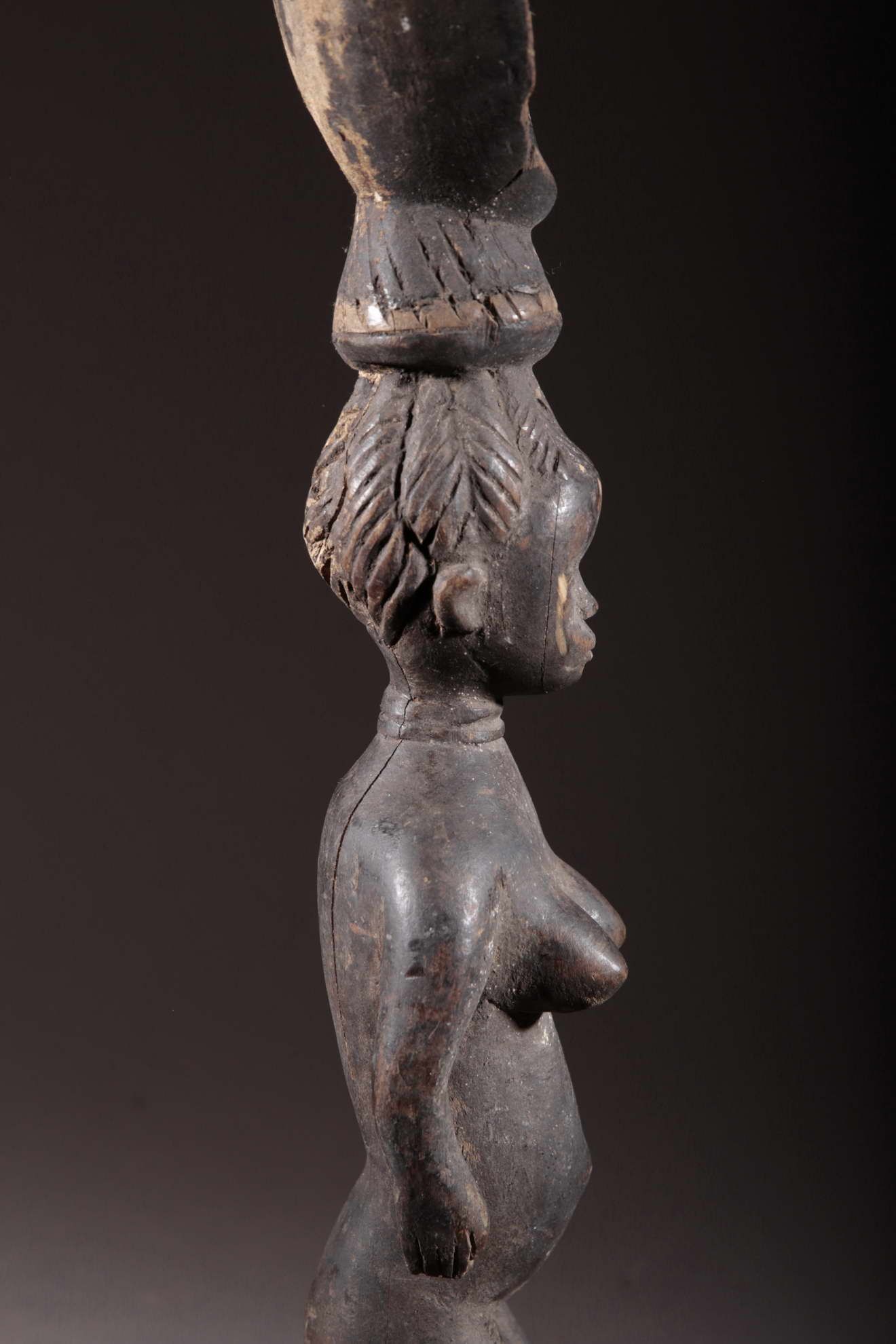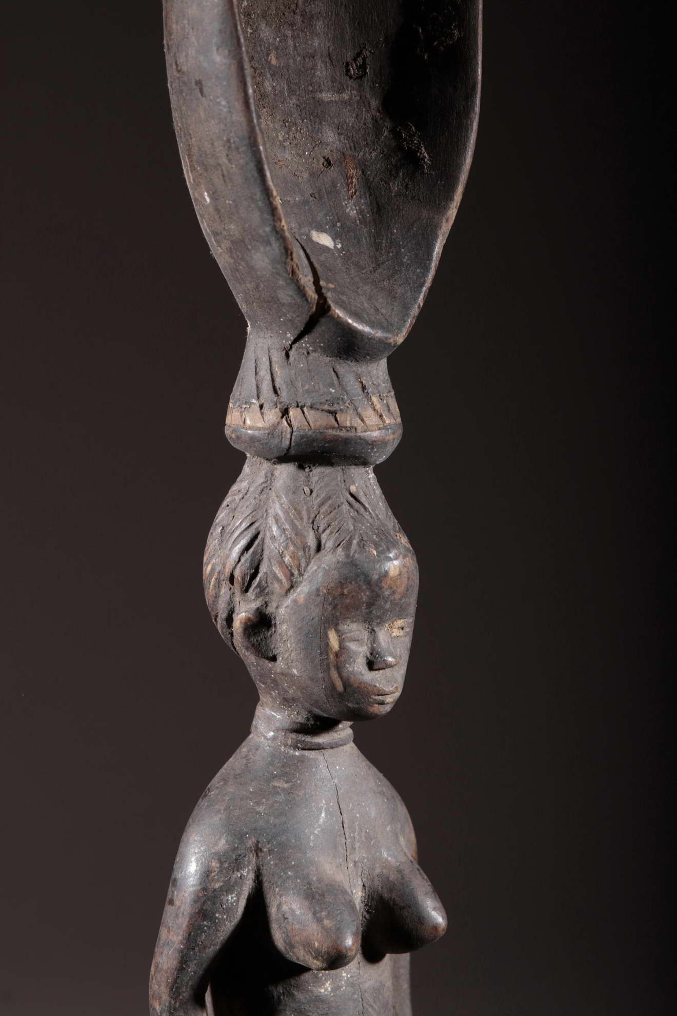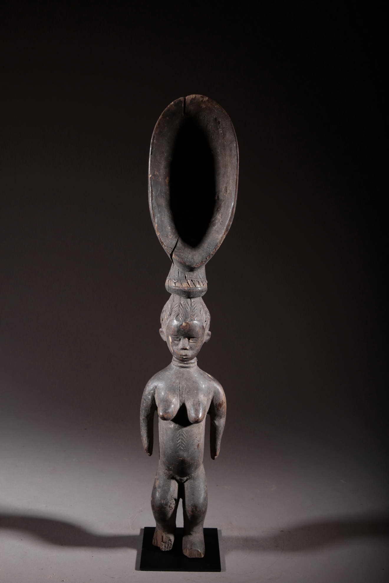 Le cœur de la cuillère peut également symboliser le ventre nourricier de la femme, en étant surmonté d'un visage fort et paré de tous les critères de beauté d'usage dans la culture d'origine. Ici, on retrouve un visage féminin Dan extrêmement travaillé, où la coiffe de cérémonie et les scarifications présentes sur plusieurs endroits du visage montrent un mélange de réalisme et d'idéalisation de la femme représentée.