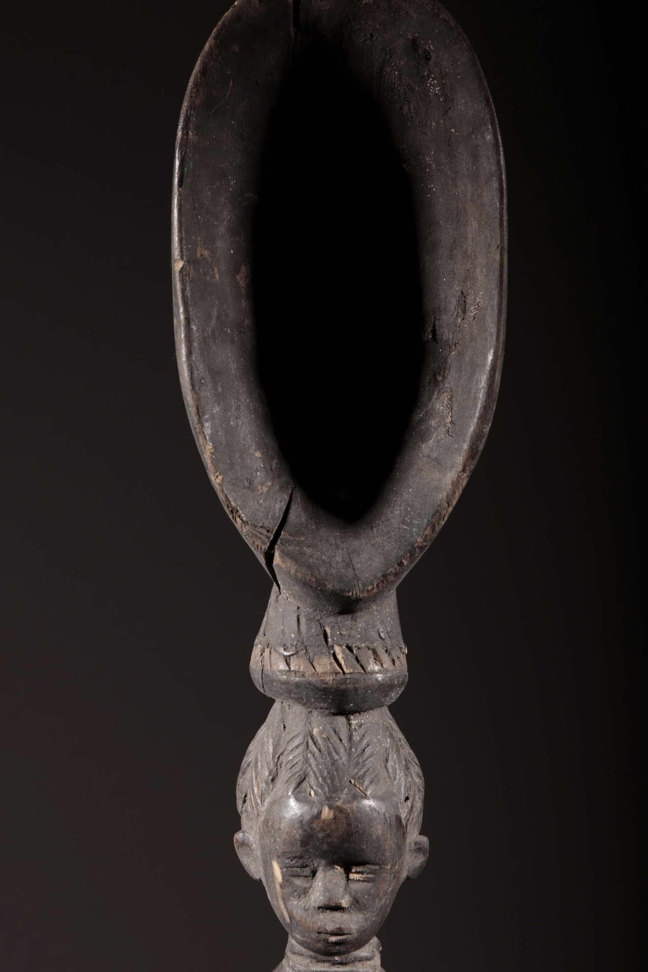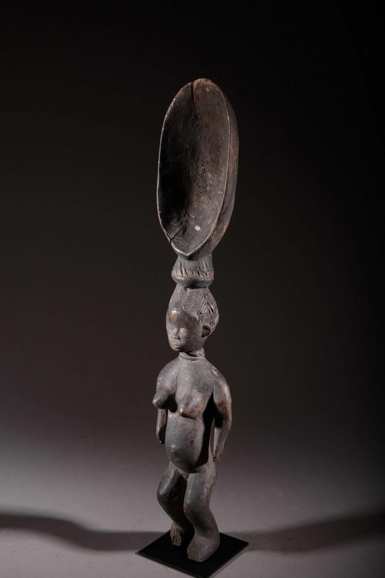 Cuillère de cérémonie Dan de Côte d'Ivoire. Pièce ancienne de plus de 50 ans. Pièce sur socle.
