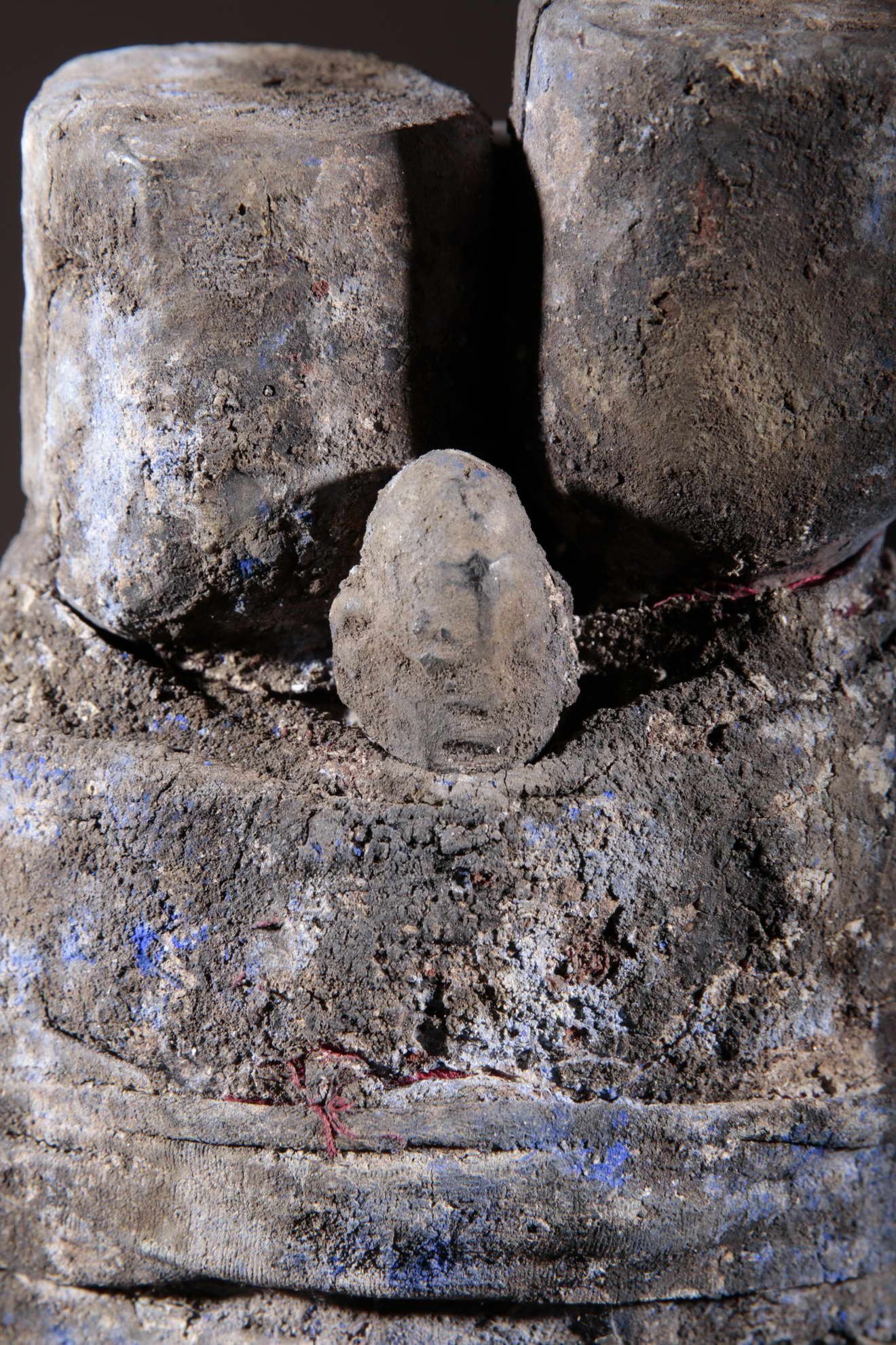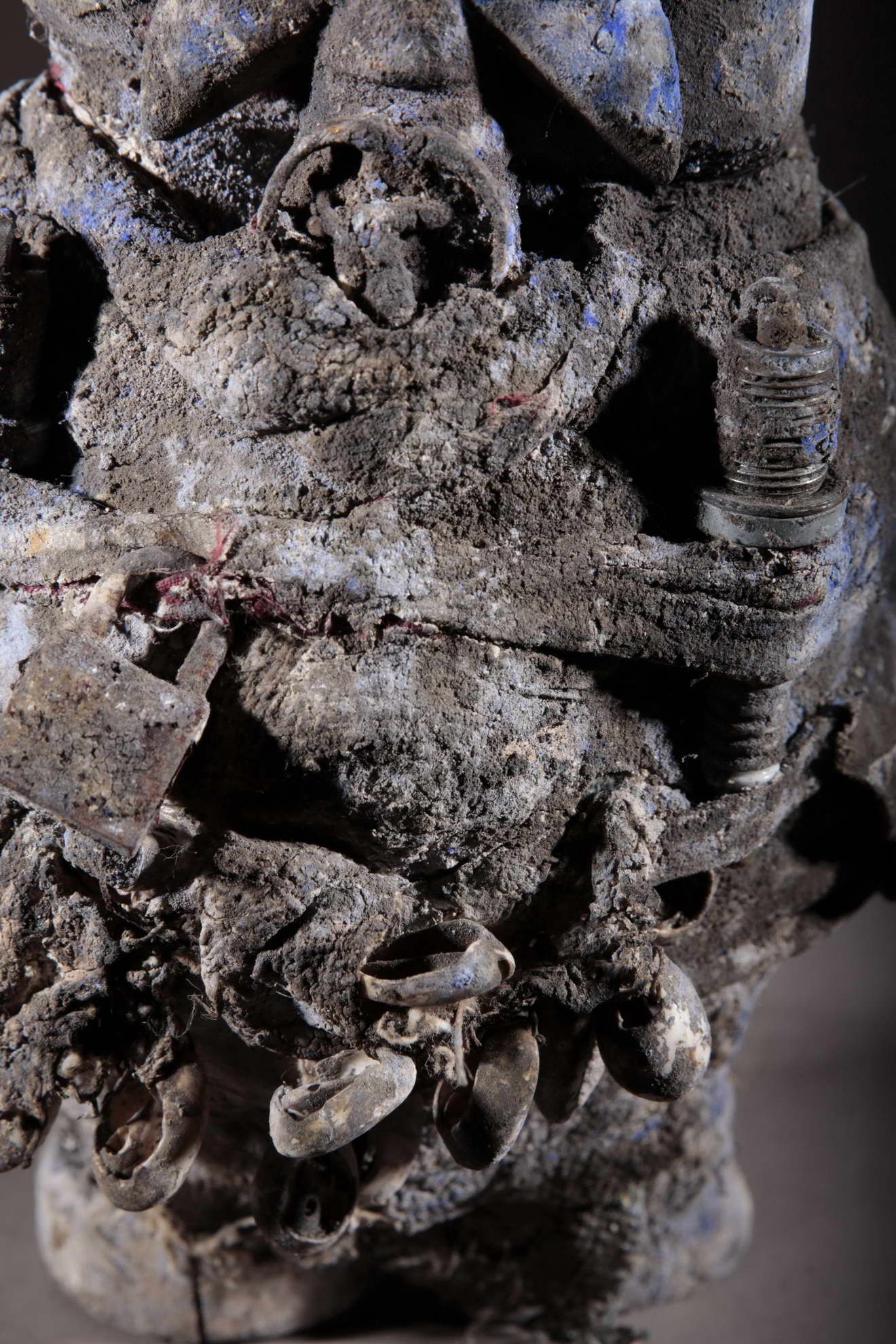 Ces fétiches sont des objets sacrés dans lesquels l'esprit ou la force du dieu trouve son incarnation. Le matériel accumulé à leur surface jusqu'à l'en faire disparaitre confère à sa puissance.