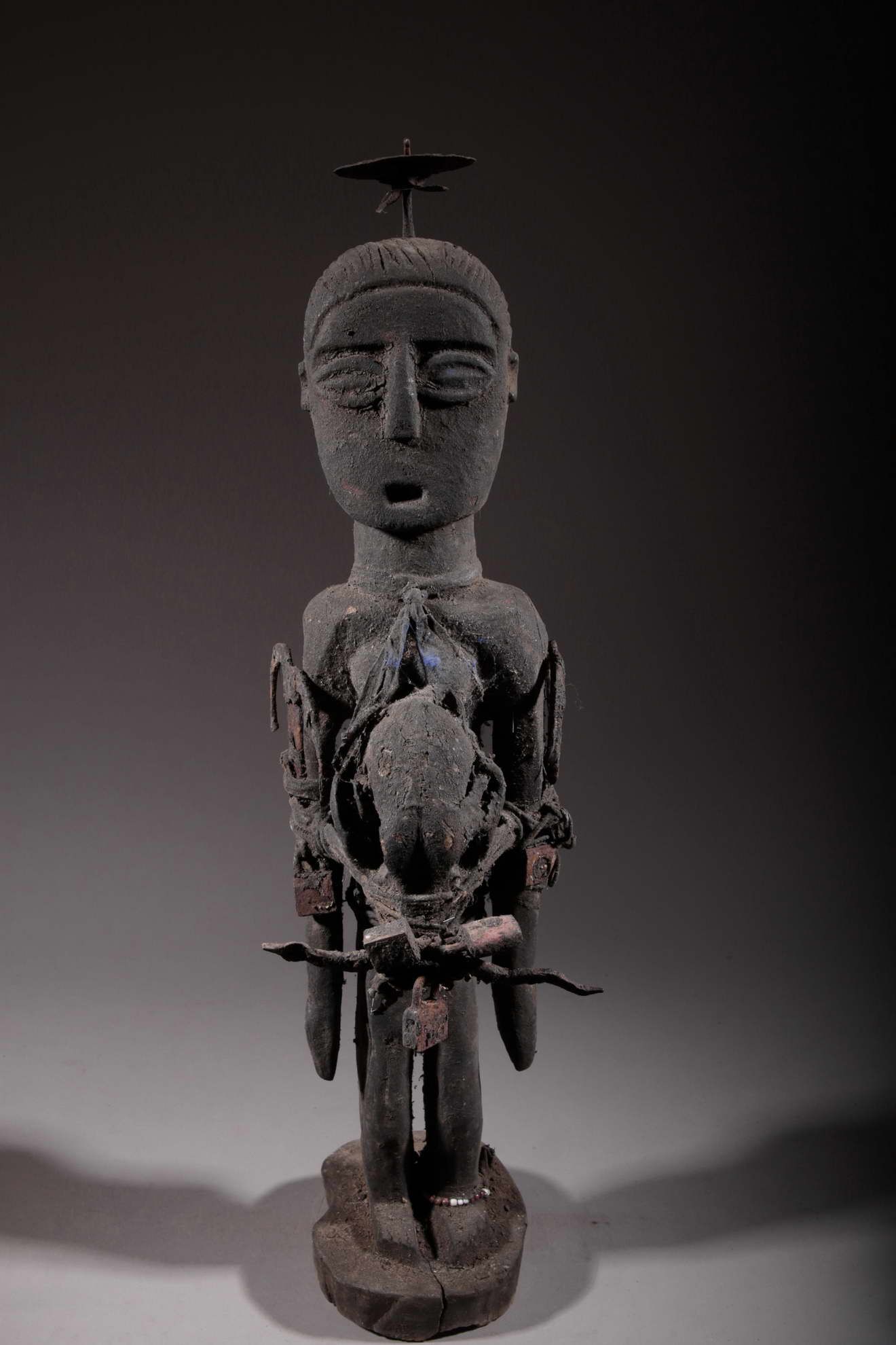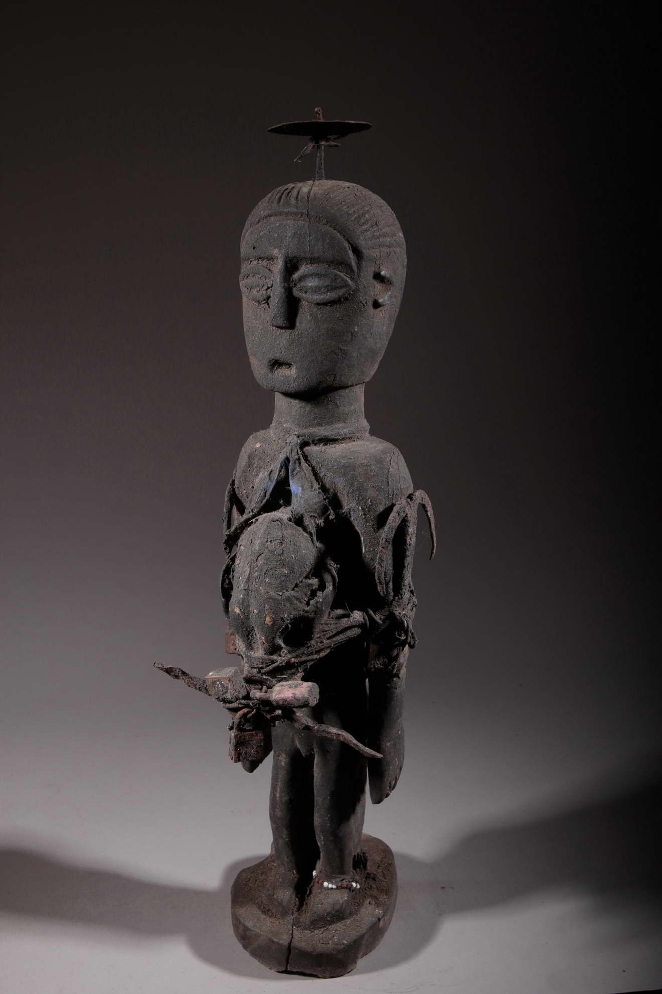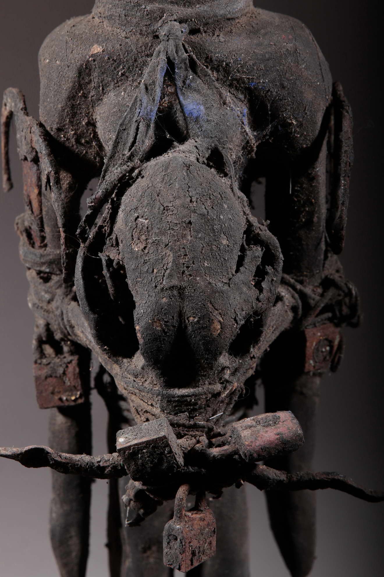 Ces fétiches sont des objets sacrés dans lesquels l'esprit ou la force du dieu trouve son incarnation. Le matériel accumulé à leur surface jusqu'à l'en faire disparaitre confère à sa puissance.