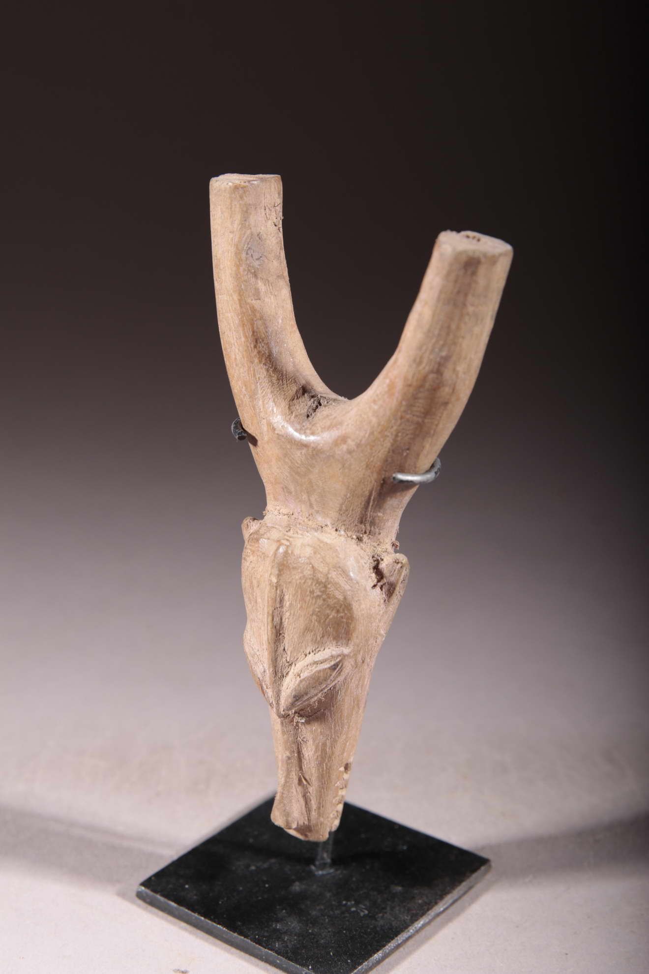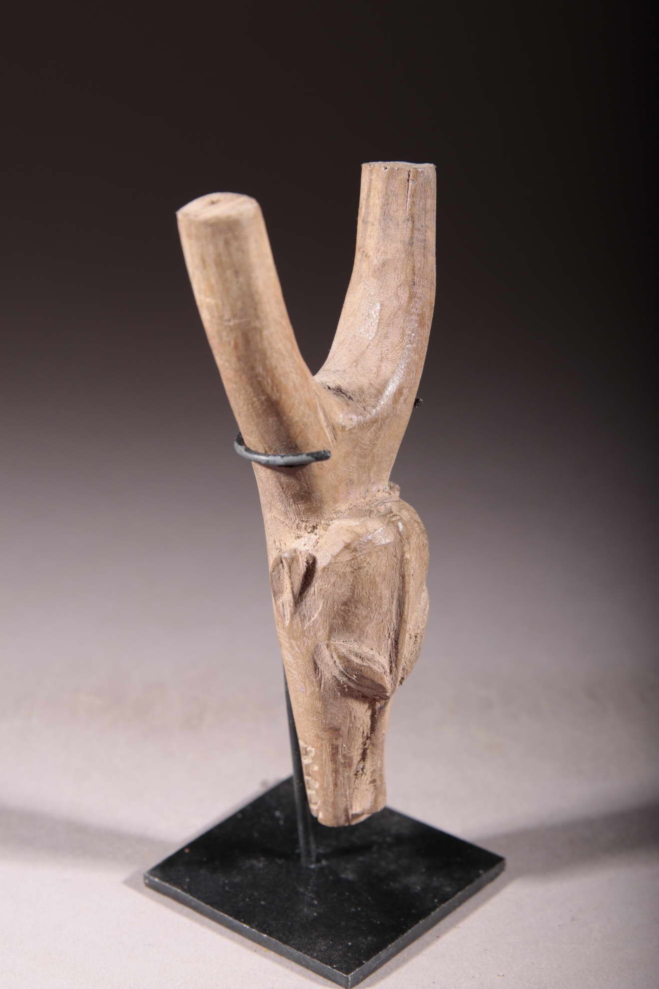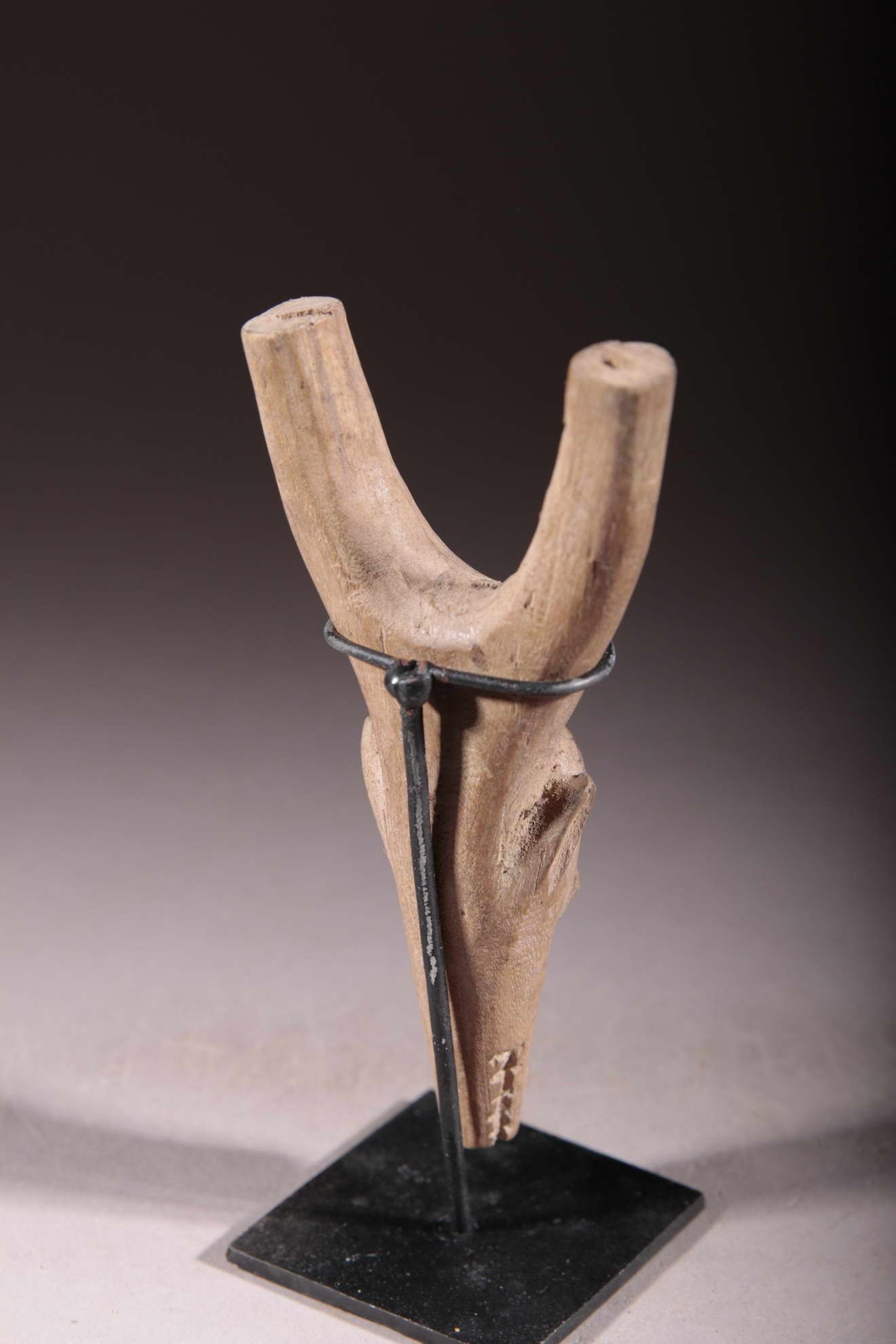 Lance pierre Baoulé de Côte d'Ivoire. Pièce ancienne et utilisée de plus de 50 ans. Livré sur socle.