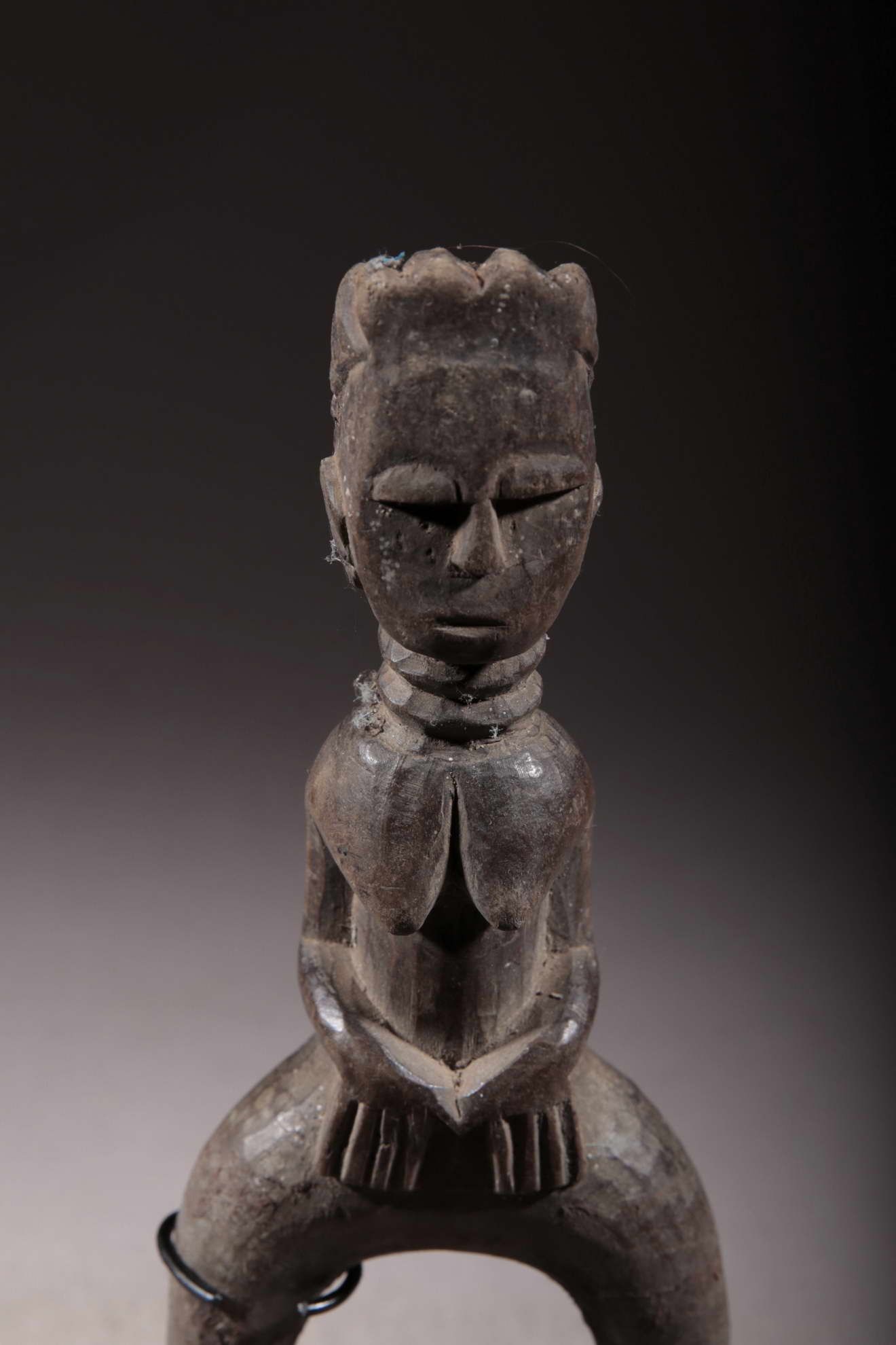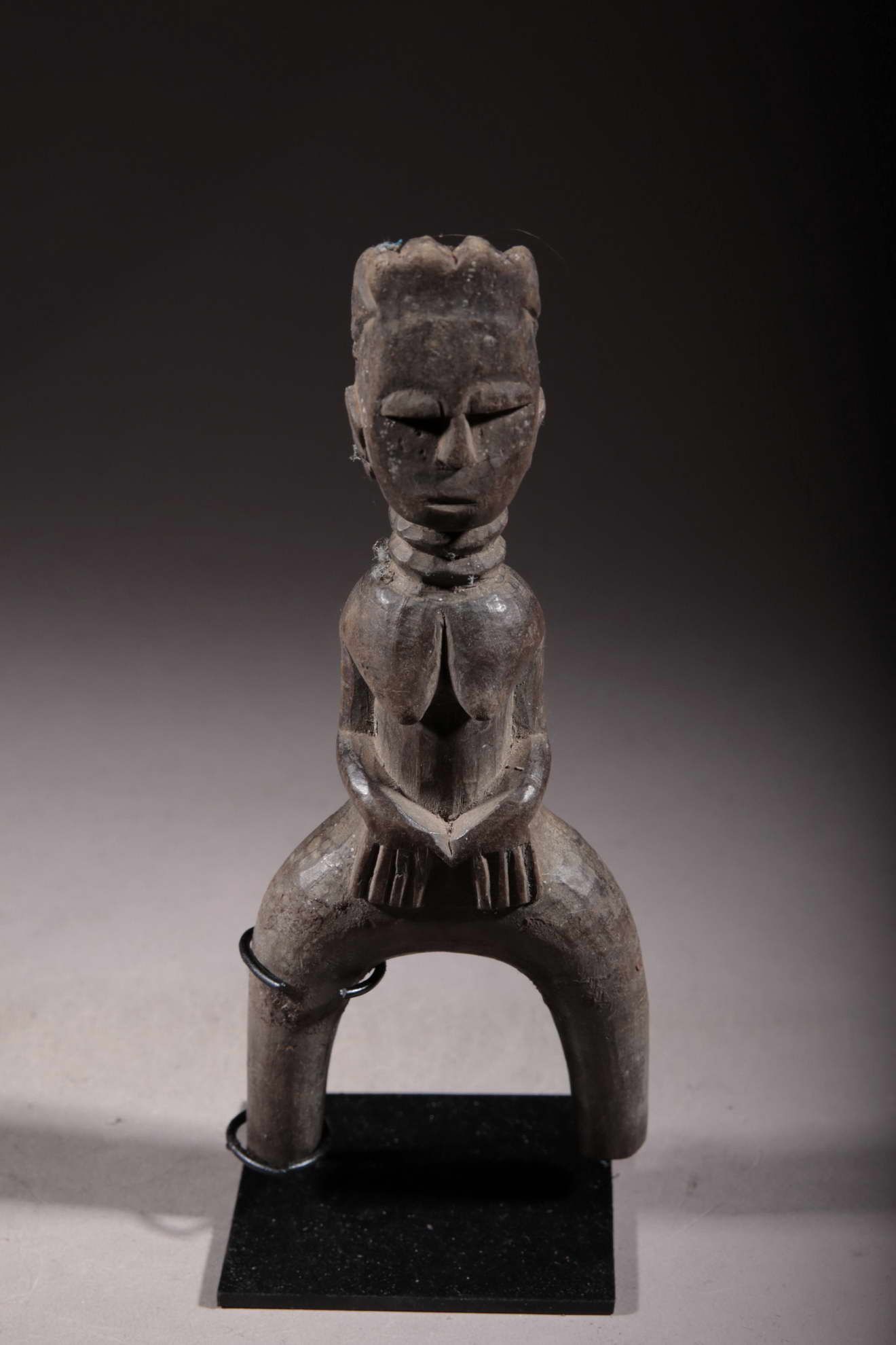 Lance pierre Baoulé de Côte d'Ivoire. Pièce ancienne et utilisée de plus de 50 ans. Livré sur socle.