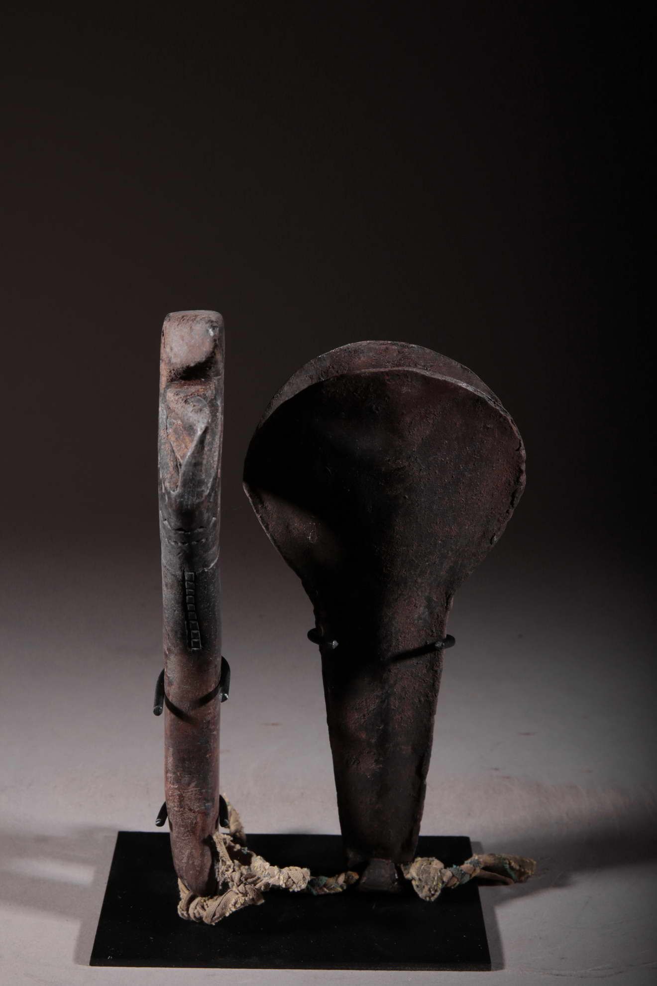 Marteau de gong Baoulé. Avec son gong. Pièce de plus de 50 ans. Livré sur socle.
