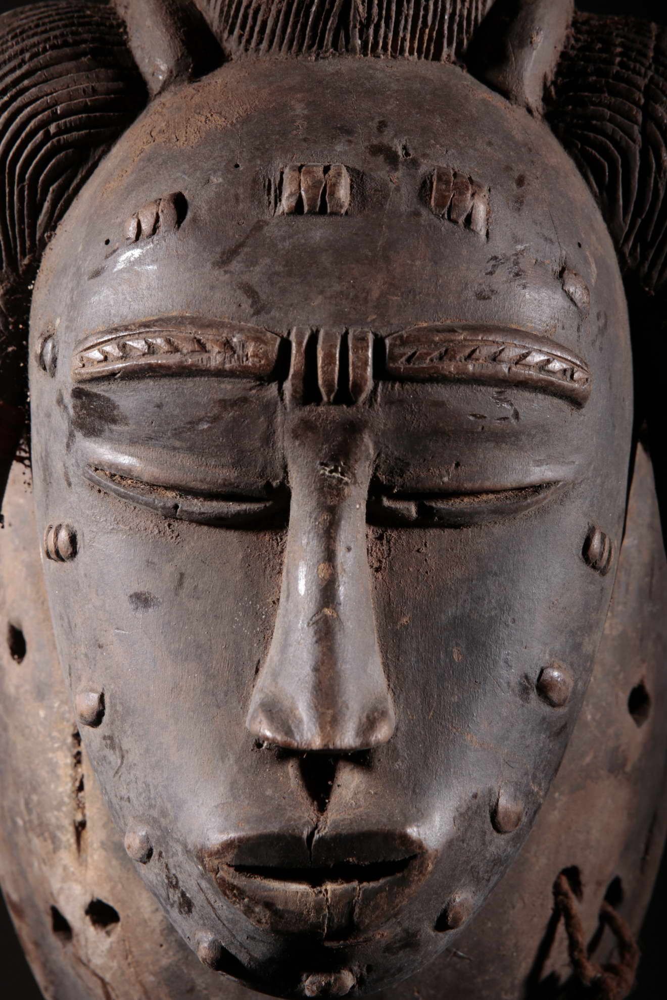 Autrement il existe des masques Baoulé zoomorphes, rappelant le buffle et l’antilope. Ces masques sont toujours portés par des hommes. Ils ont une réalisation différente des masques Baoulé portraits d’ancêtres, ils sont plus conceptuels et schématiques car ils représentent des esprits.