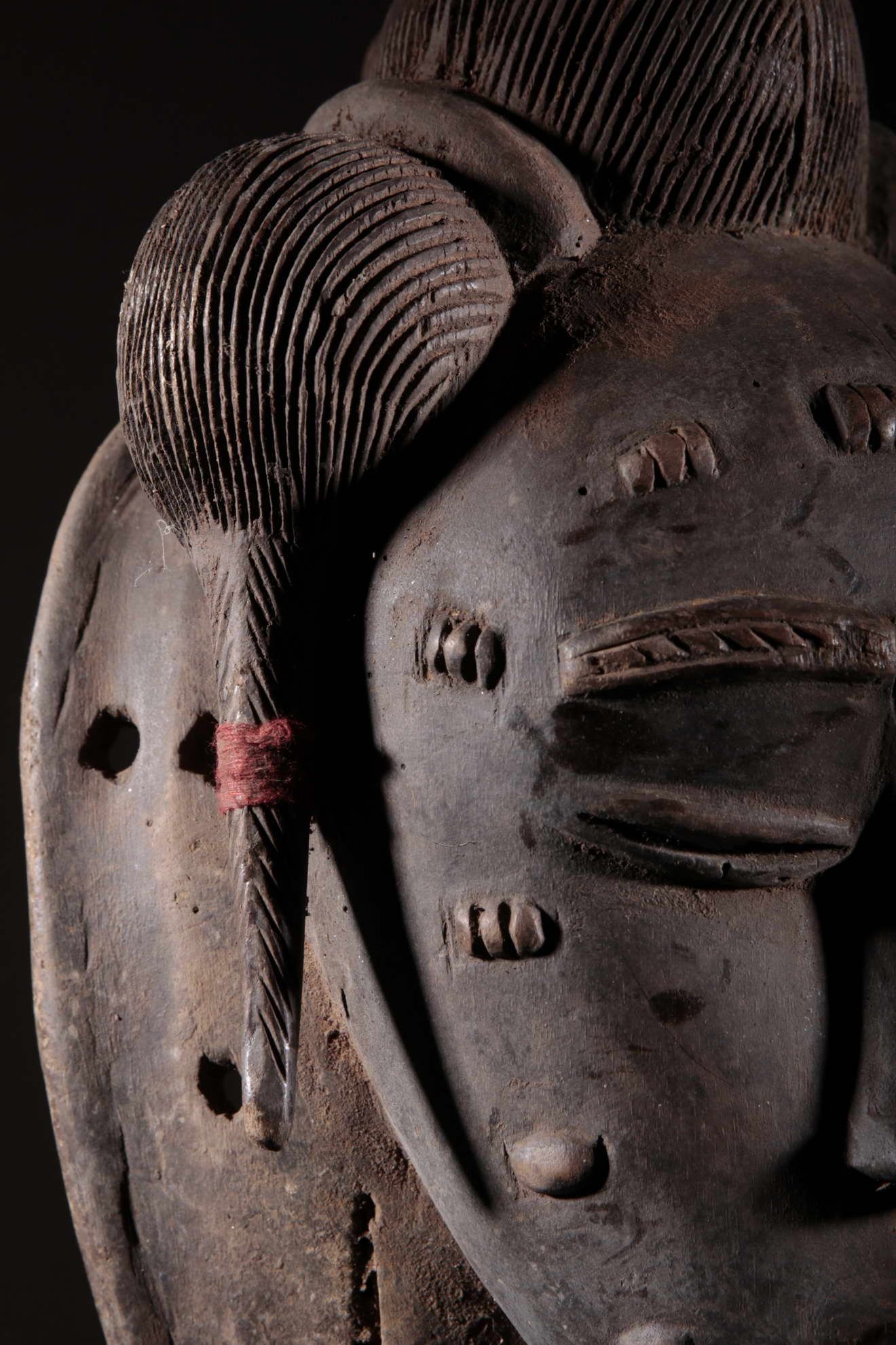 Le gba gba, d’origine Gouro, est employé pour des funérailles de femmes lors de la période des récoltes. Il célèbre la beauté et l’âge, d’où la finesse de ses traits.