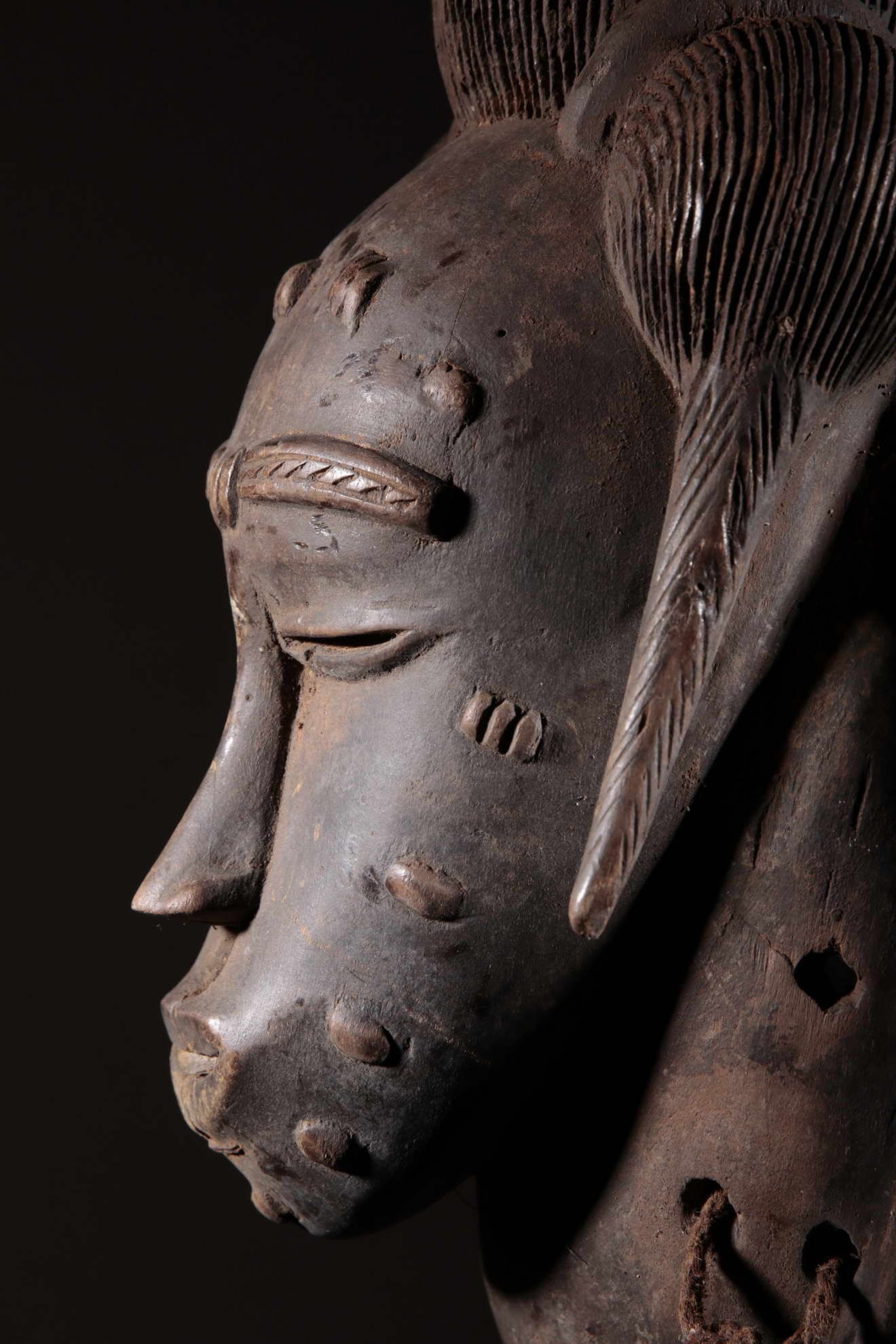 La sculpture Baoulé sur bois possède la finesse de réalisation de l’orfèvrerie : la sculpture est très raffinée, les surfaces sont très polie, la représentation des scarifications, des bijoux, de la coiffure, du visage est faite de manière soignée et minutieuse.