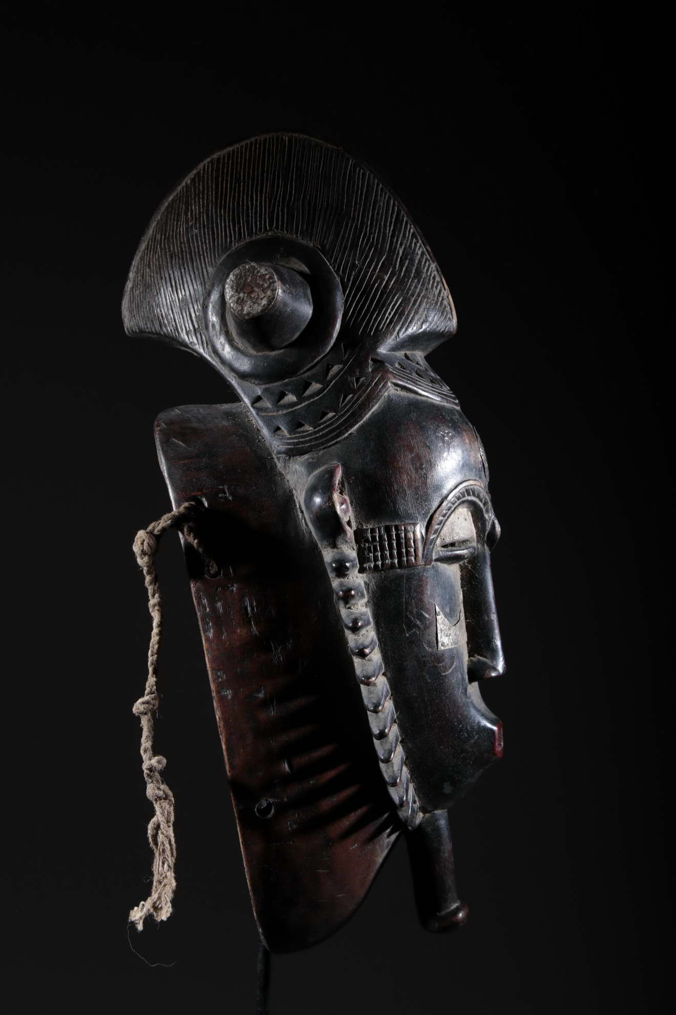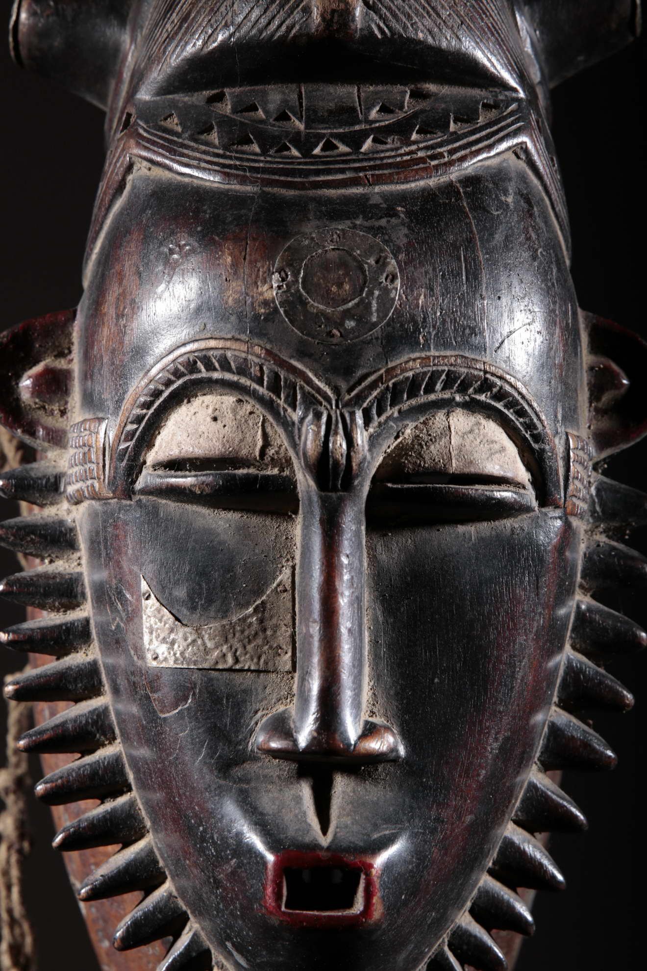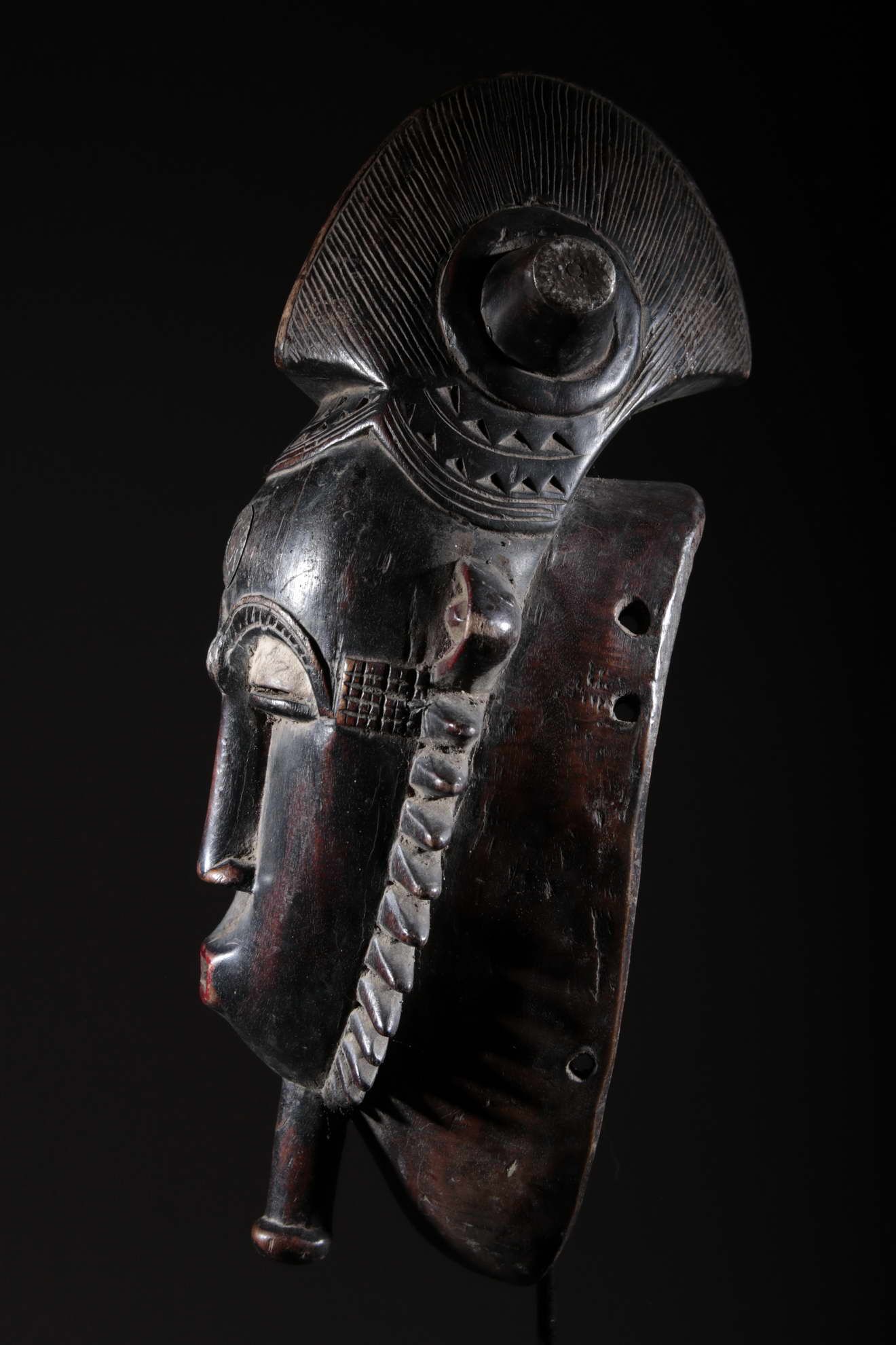 Les Baoulé possèdent des masques, sans doute, sous l’influence de leurs voisins Gouro ou Sénoufo. Il existe des masques Baoulé d’ancêtres mais qui maintenant ont un rôle laïc et apparaissent lors de danses de divertissements. Ces portraits possèdent les mêmes caractéristiques que la statuaire : élégants, sculptés finement et polis. Ils montrent une grande diversité régionale dans les coiffures et les tatouages. . Le masque Baoulé double représente le mariage du soleil et de la lune ou des jumeaux dont la naissance est toujours un bon signe.