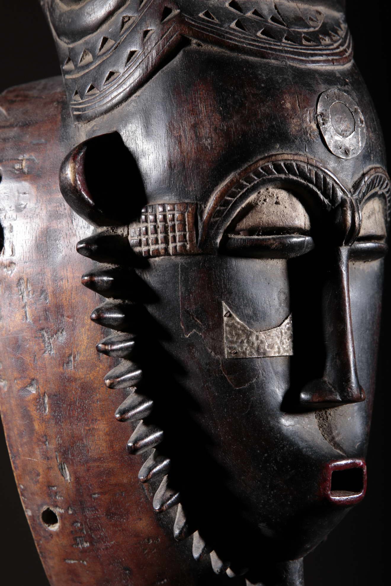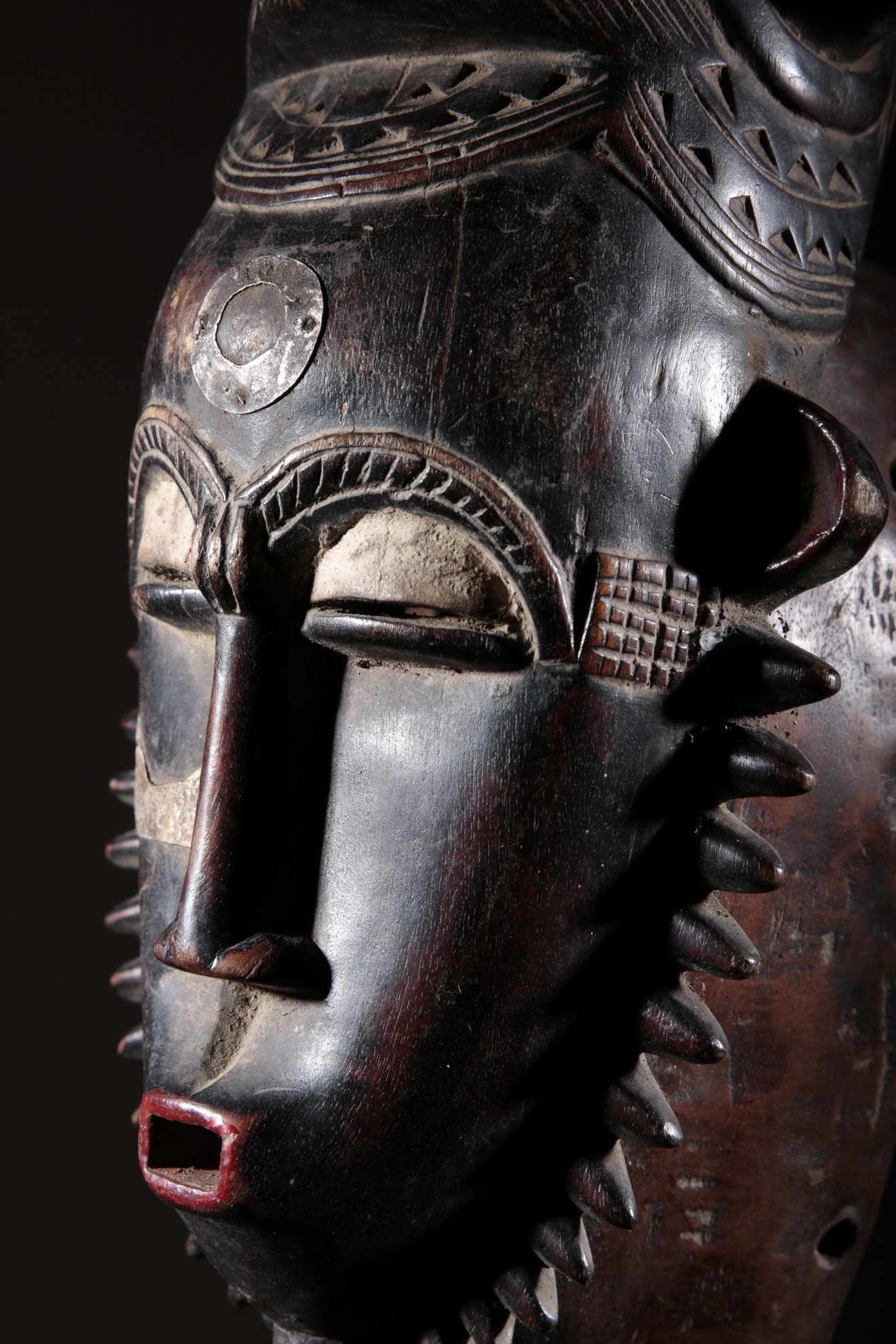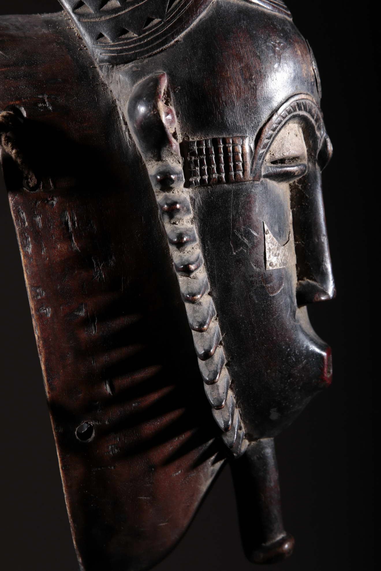 Les Baoulé possèdent des masques, sans doute, sous l’influence de leurs voisins Gouro ou Sénoufo. Il existe des masques Baoulé d’ancêtres mais qui maintenant ont un rôle laïc et apparaissent lors de danses de divertissements. Ces portraits possèdent les mêmes caractéristiques que la statuaire : élégants, sculptés finement et polis. Ils montrent une grande diversité régionale dans les coiffures et les tatouages. . Le masque Baoulé double représente le mariage du soleil et de la lune ou des jumeaux dont la naissance est toujours un bon signe.