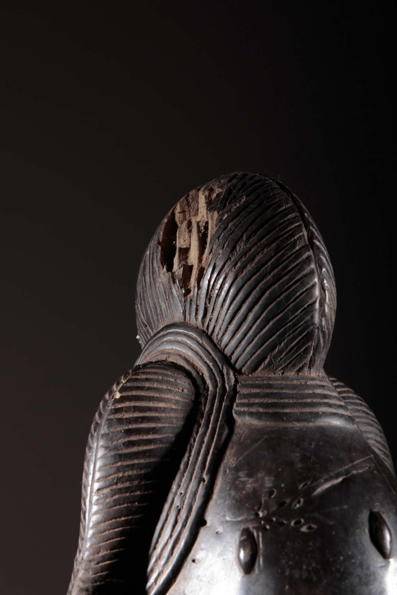 * Les statues Baoulé représentant un esprit ou génie de la nature avec comme objectif de les apaiser. Les statues Asiè usu ("génie de la nature") sont moins fréquentes que les (blo bla). La différence pour les différenciet les uns des autres et la suivante. Le génie de la nature est toujours assis alors que l'époux de l'au delà est toujours debout.