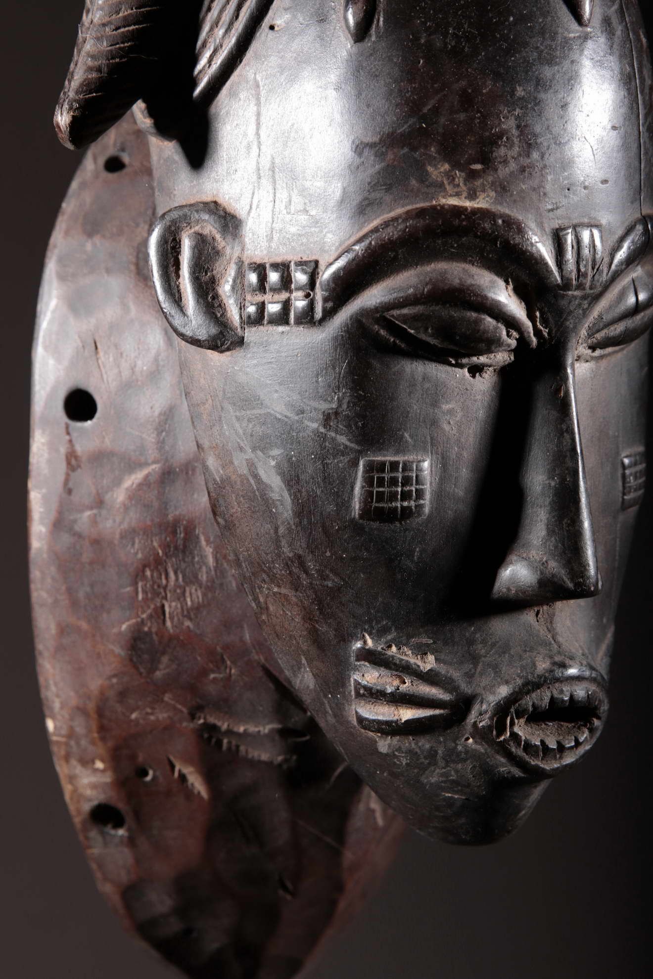 Il existe des masques Baoulé d’ancêtres. Les masques Baoulé possèdent les mêmes caractéristiques que les statues : élégants, sculptés finement et polis.