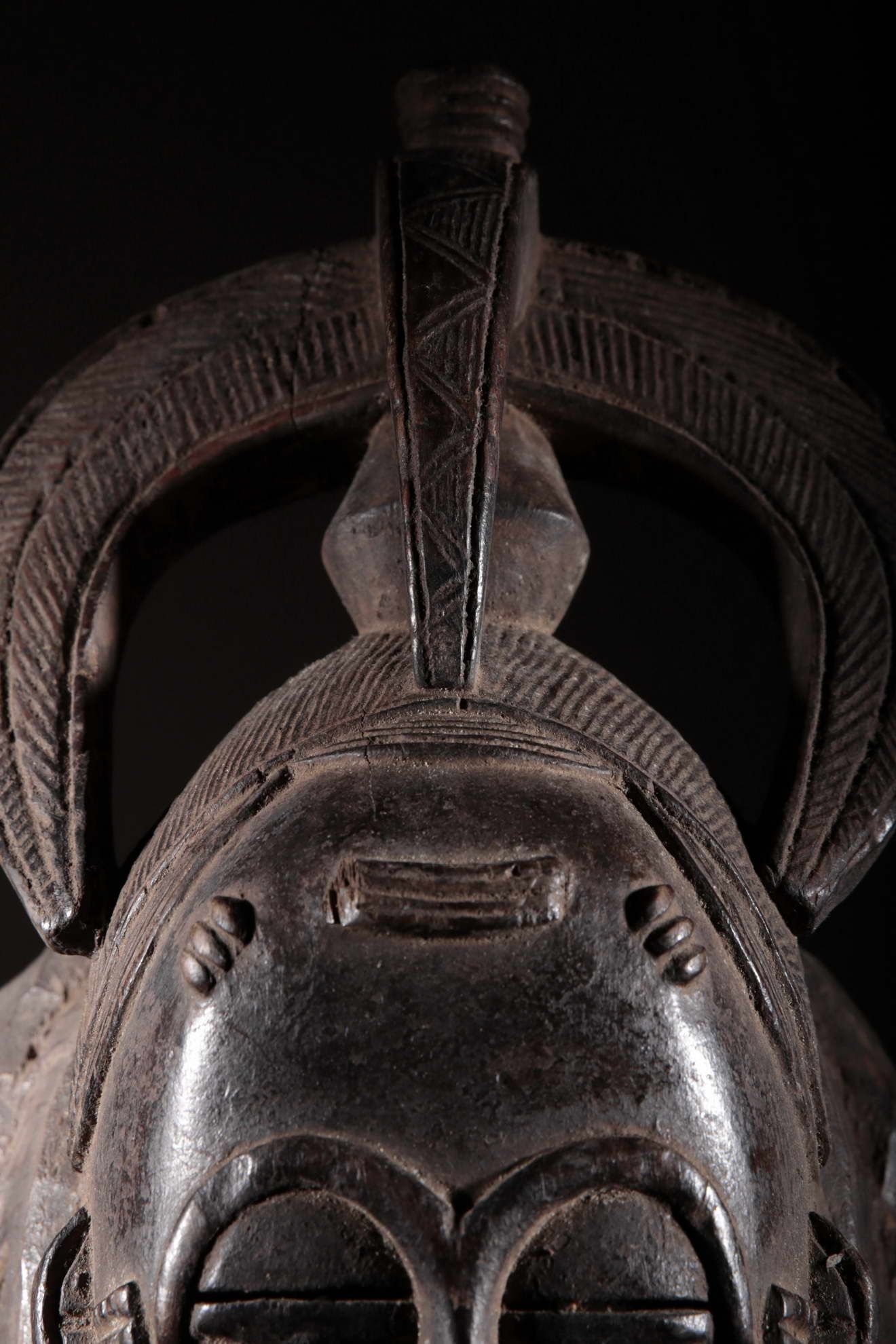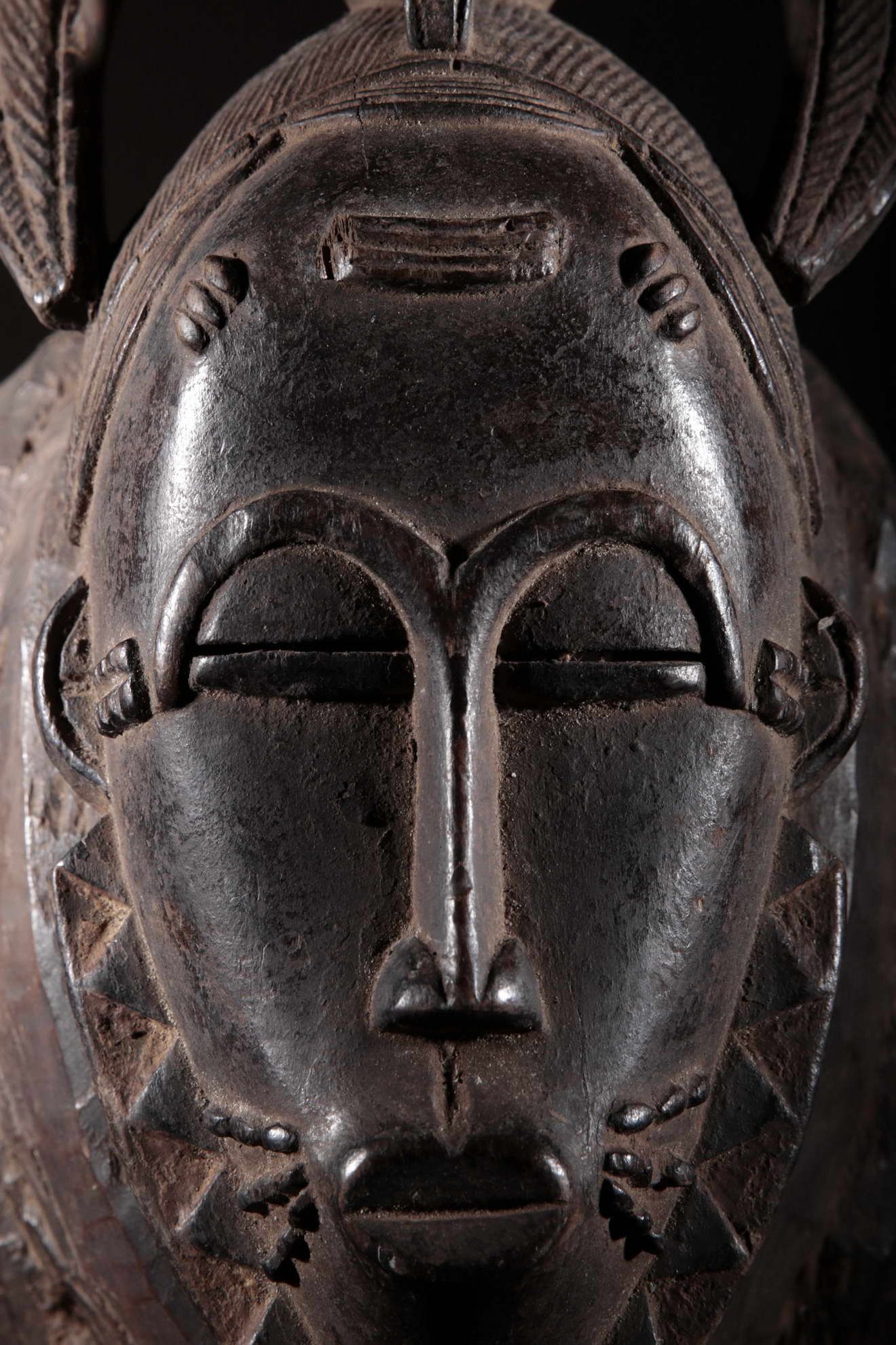 Autrement il existe des masques Baoulé zoomorphes, rappelant le buffle et l’antilope. Ces masques sont toujours portés par des hommes. Ils ont une réalisation différente des masques Baoulé portraits d’ancêtres, ils sont plus conceptuels et schématiques car ils représentent des esprits.
