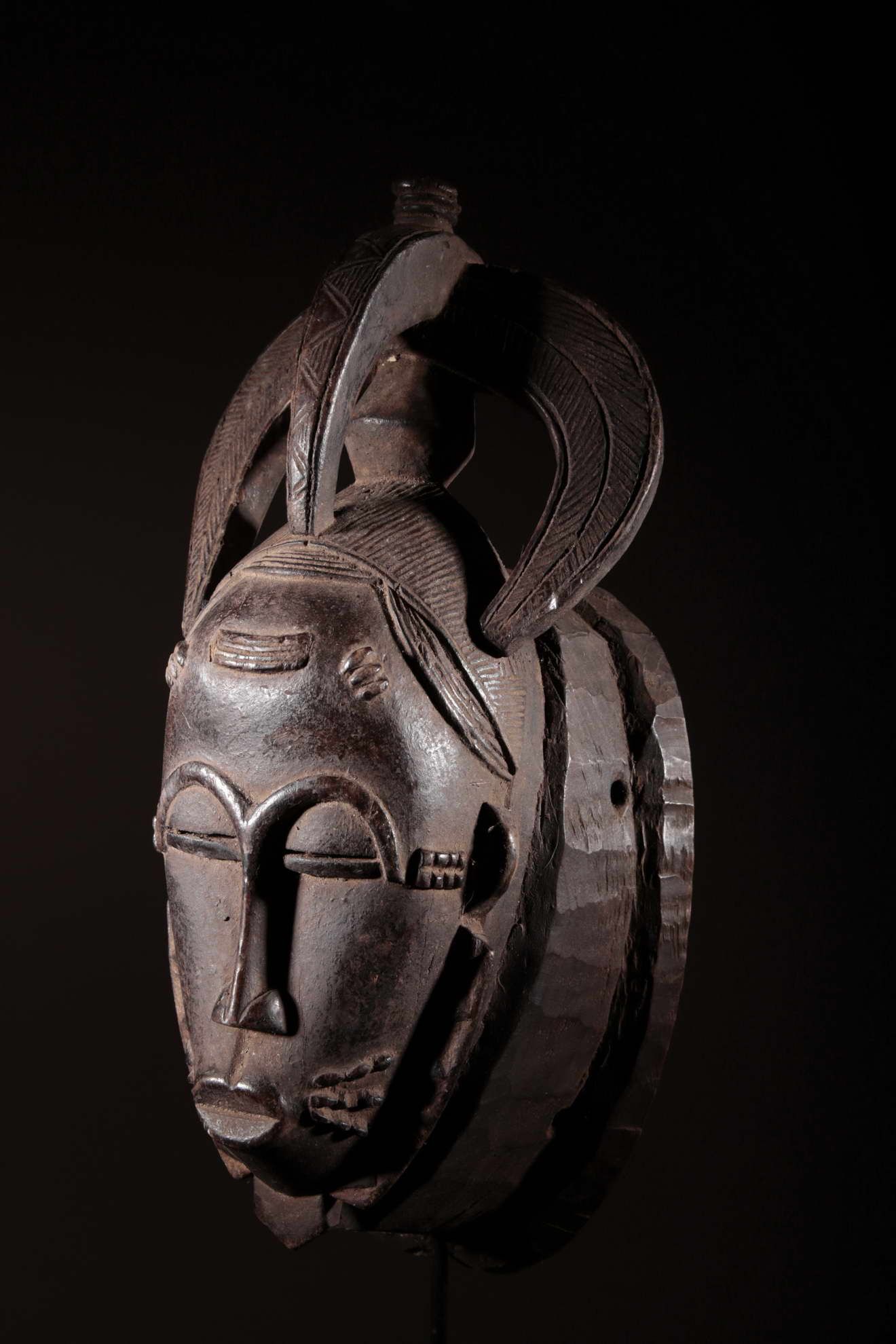 Les Baoulé possèdent des masques, sans doute, sous l’influence de leurs voisins Gouro ou Sénoufo. Il existe des masques Baoulé d’ancêtres mais qui maintenant ont un rôle laïc et apparaissent lors de danses de divertissements. Ces portraits possèdent les mêmes caractéristiques que la statuaire : élégants, sculptés finement et polis. Ils montrent une grande diversité régionale dans les coiffures et les tatouages. . Le masque Baoulé double représente le mariage du soleil et de la lune ou des jumeaux dont la naissance est toujours un bon signe.