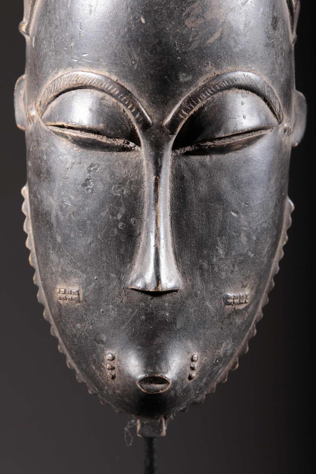 Il existe des masques Baoulé d’ancêtres. Les masques Baoulé possèdent les mêmes caractéristiques que les statues : élégants, sculptés finement et polis.
