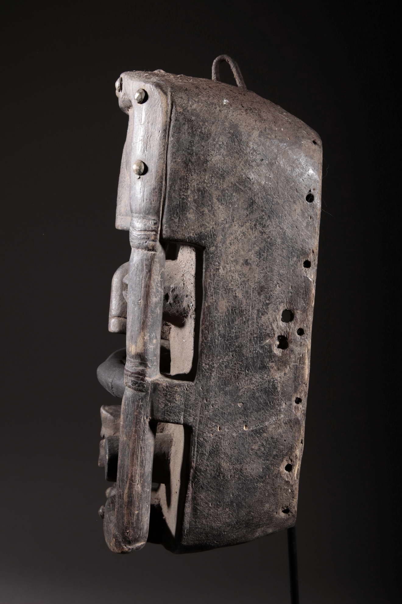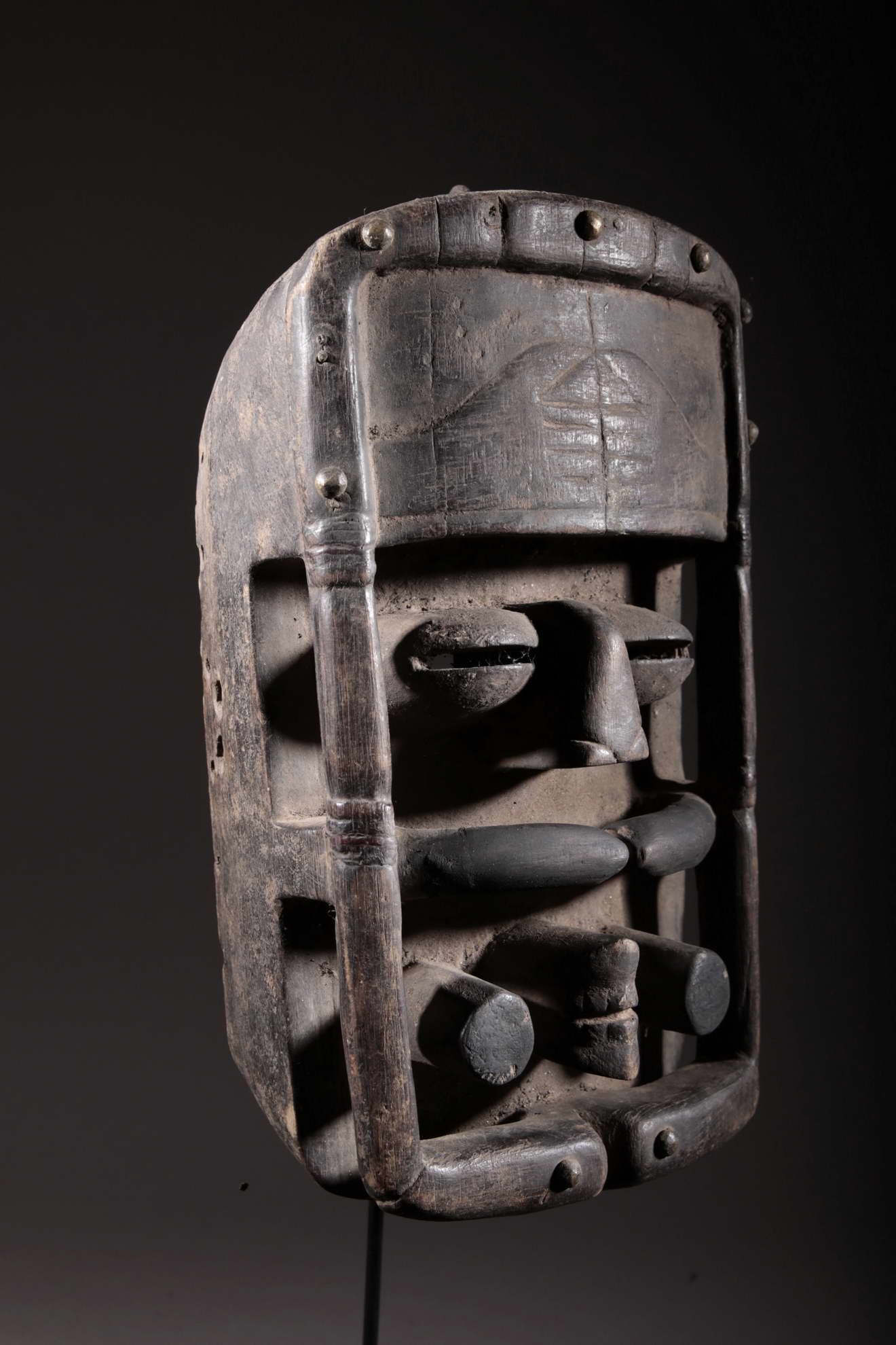 Masque Bété de Côte d'ivoire. Masque de cérémonie. Pièce originale de plus de 50 ans. Pièce sur socle.