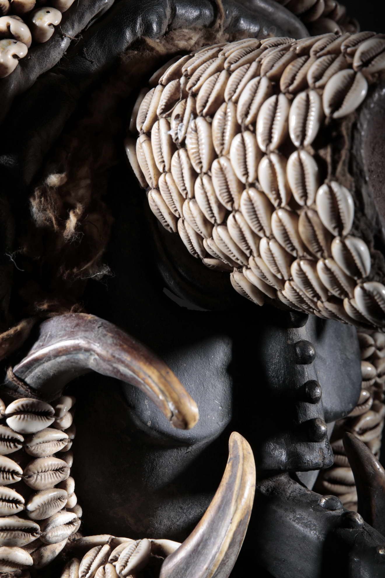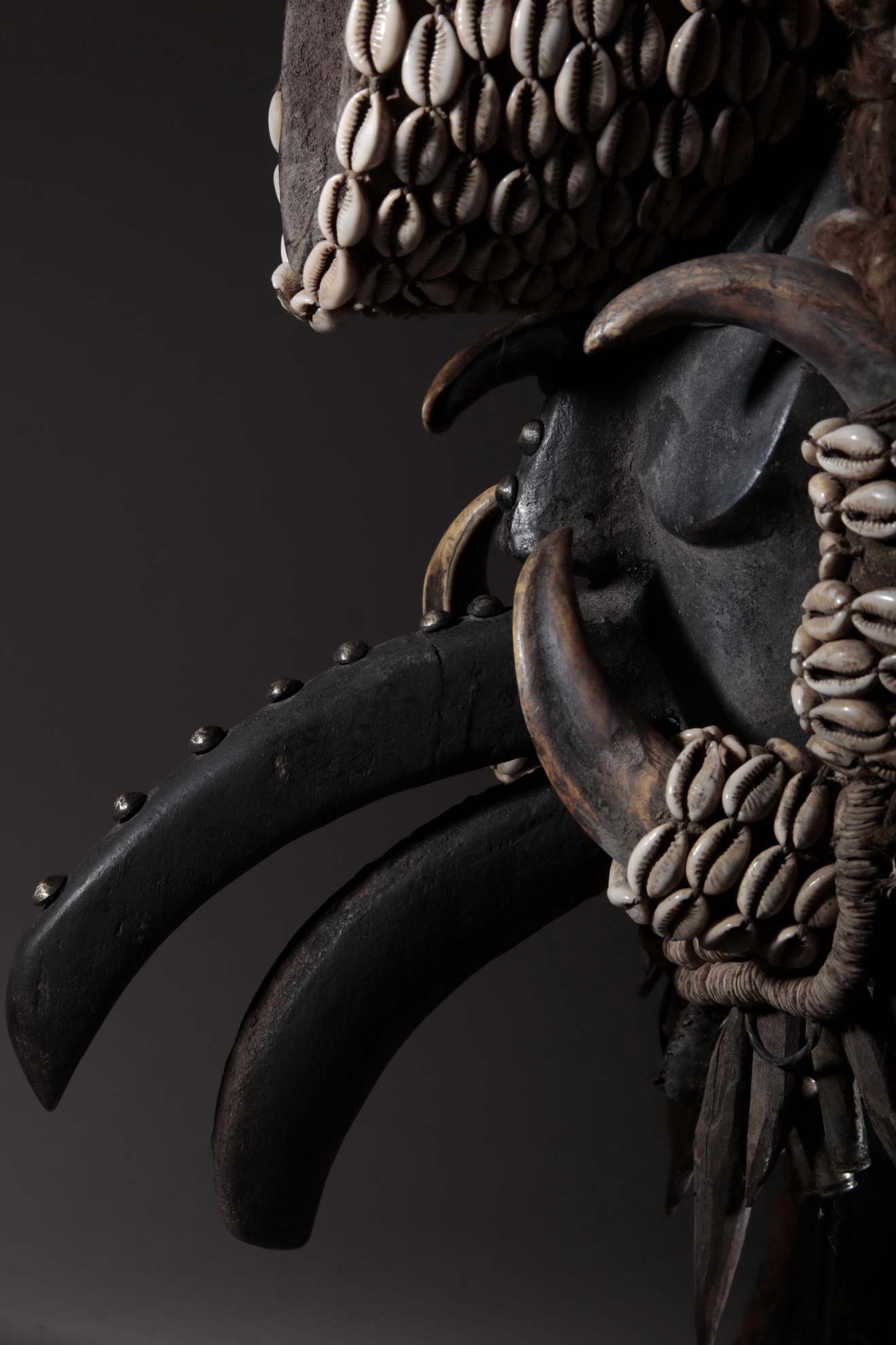 Les Dan sont une sous-tribue appartenant aux Dan-Nguere. Ils habitent le Liberia orientale, la Guinée Conakry et la Côte d'Ivoire. La base sociale et spirituelle des Dan-Nguere est la société secrète Poro, qui veut dire en langue Temmé "sierra". Les masques Dan-Nguere se caractérisent autant par leurs variétés, comme par le fait qu'une même sorte de masque peut être utilisée en différentes zones pour différentes finalités. Les masques Dan féminins sont connus par l'importance qu'ils attribuent à la beauté du visage: la forme ovale, le front légèrement proéminent, les yeux déchirés, le nez fin et la bouche entrouverte. Ils rehaussent la finesse de ses lignes avec une brillante patine introduit dans le bois, en employant des substances végétales. Quand elles sèchent, elles prennent une couleur douce, qui avec l'usage ressemble à la laque. La fonction de ces masques est de régler les désaccords et de protéger les nouveaux nés. Les Dan font généralement des répliques de ces masques, qu'ils appellent "ma", pour les vénérer et comme protection contre les maladies. Ils restent cachés et servent comme preuve d'appartenance à la société Poro, se convertissant en objets presque sacrés, en les honorant avec des offrandes de riz et d'huile de palme, et de sacrifices en périodes de pleine lune. Le visage des masques Dan masculins est plus réaliste, et quelques fois avec des détails d'animaux. Il a la force vital, appelée "du", envoyée par Zlan le créateur aux hommes et aux animaux. Les "du" sont nombreux, et ils disent aux gens en rêve comment ils veulent être représentés. Quelques fois, ils veulent qu'un fétiche, ou qu'un arbre soit planté, mais ils peuvent demander aussi un masque pour résider. Alors, l'esprit se matérialise et se transforme en un "gle", et il peut intervenir directement dans la vie de la communauté. Chaque "gle" a sa fonction, et préside les differents événements sociaux. Ils sont aussi présents dans les moments de danger, ou de distraction. C'est pour ça qu'il y a une grande variété de masques Dan.