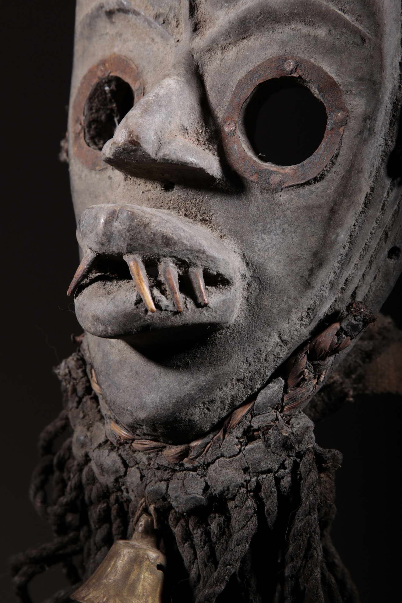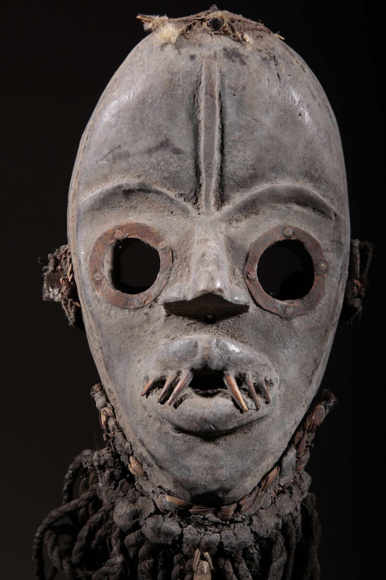 Les Dan sont une sous-tribue appartenant aux Dan-Nguere. Ils habitent le Liberia orientale, la Guinée Conakry et la Côte d'Ivoire. La base sociale et spirituelle des Dan-Nguere est la société secrète Poro, qui veut dire en langue Temmé "sierra". Les masques Dan-Nguere se caractérisent autant par leurs variétés, comme par le fait qu'une même sorte de masque peut être utilisée en différentes zones pour différentes finalités. Les masques Dan féminins sont connus par l'importance qu'ils attribuent à la beauté du visage: la forme ovale, le front légèrement proéminent, les yeux déchirés, le nez fin et la bouche entrouverte. Ils rehaussent la finesse de ses lignes avec une brillante patine introduit dans le bois, en employant des substances végétales. Quand elles sèchent, elles prennent une couleur douce, qui avec l'usage ressemble à la laque. La fonction de ces masques est de régler les désaccords et de protéger les nouveaux nés. Les Dan font généralement des répliques de ces masques, qu'ils appellent "ma", pour les vénérer et comme protection contre les maladies. Ils restent cachés et servent comme preuve d'appartenance à la société Poro, se convertissant en objets presque sacrés, en les honorant avec des offrandes de riz et d'huile de palme, et de sacrifices en périodes de pleine lune. Le visage des masques Dan masculins est plus réaliste, et quelques fois avec des détails d'animaux. Il a la force vital, appelée "du", envoyée par Zlan le créateur aux hommes et aux animaux. Les "du" sont nombreux, et ils disent aux gens en rêve comment ils veulent être représentés. Quelques fois, ils veulent qu'un fétiche, ou qu'un arbre soit planté, mais ils peuvent demander aussi un masque pour résider. Alors, l'esprit se matérialise et se transforme en un "gle", et il peut intervenir directement dans la vie de la communauté. Chaque "gle" a sa fonction, et préside les differents événements sociaux. Ils sont aussi présents dans les moments de danger, ou de distraction. C'est pour ça qu'il y a une grande variété de masques Dan.