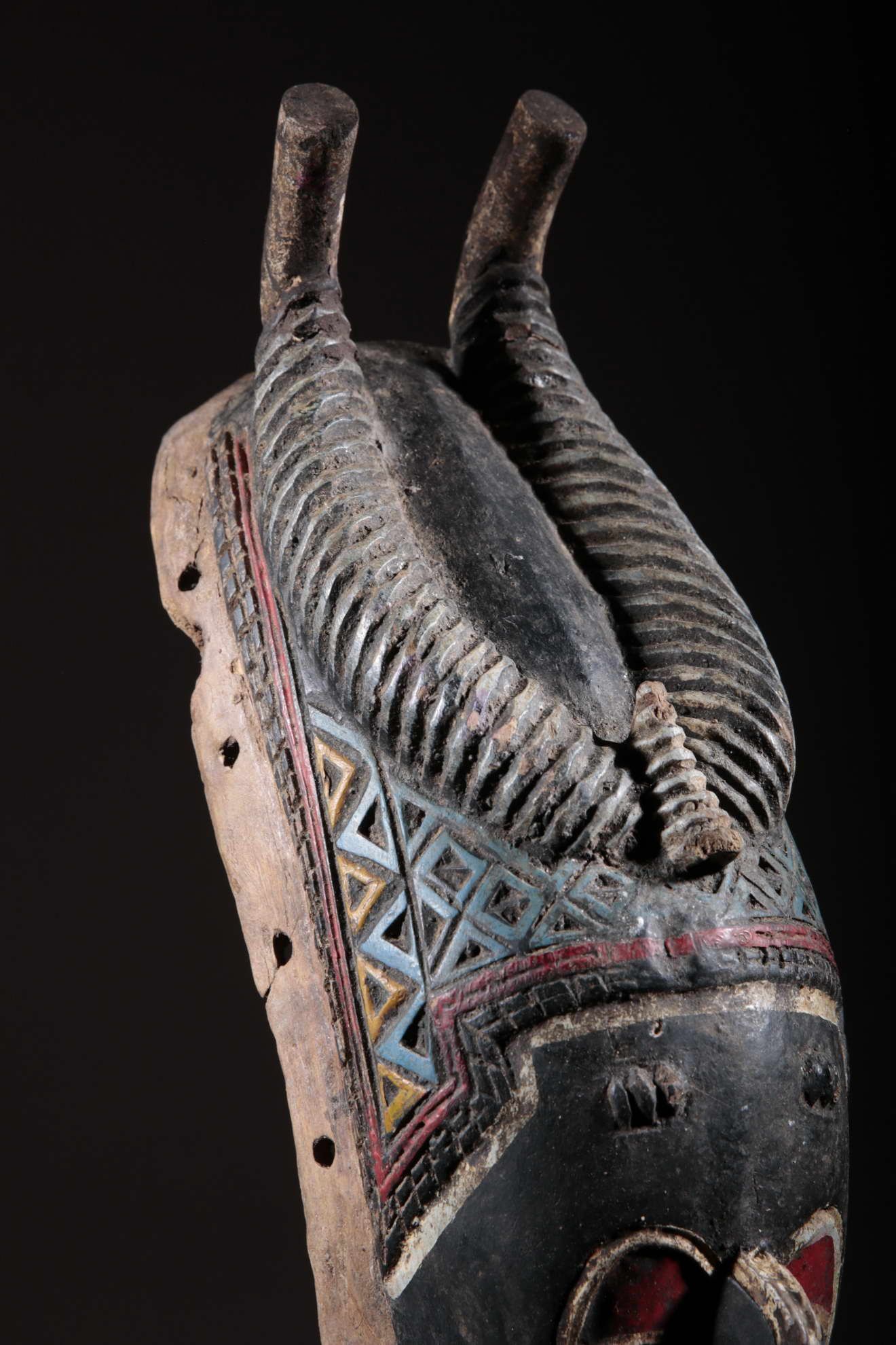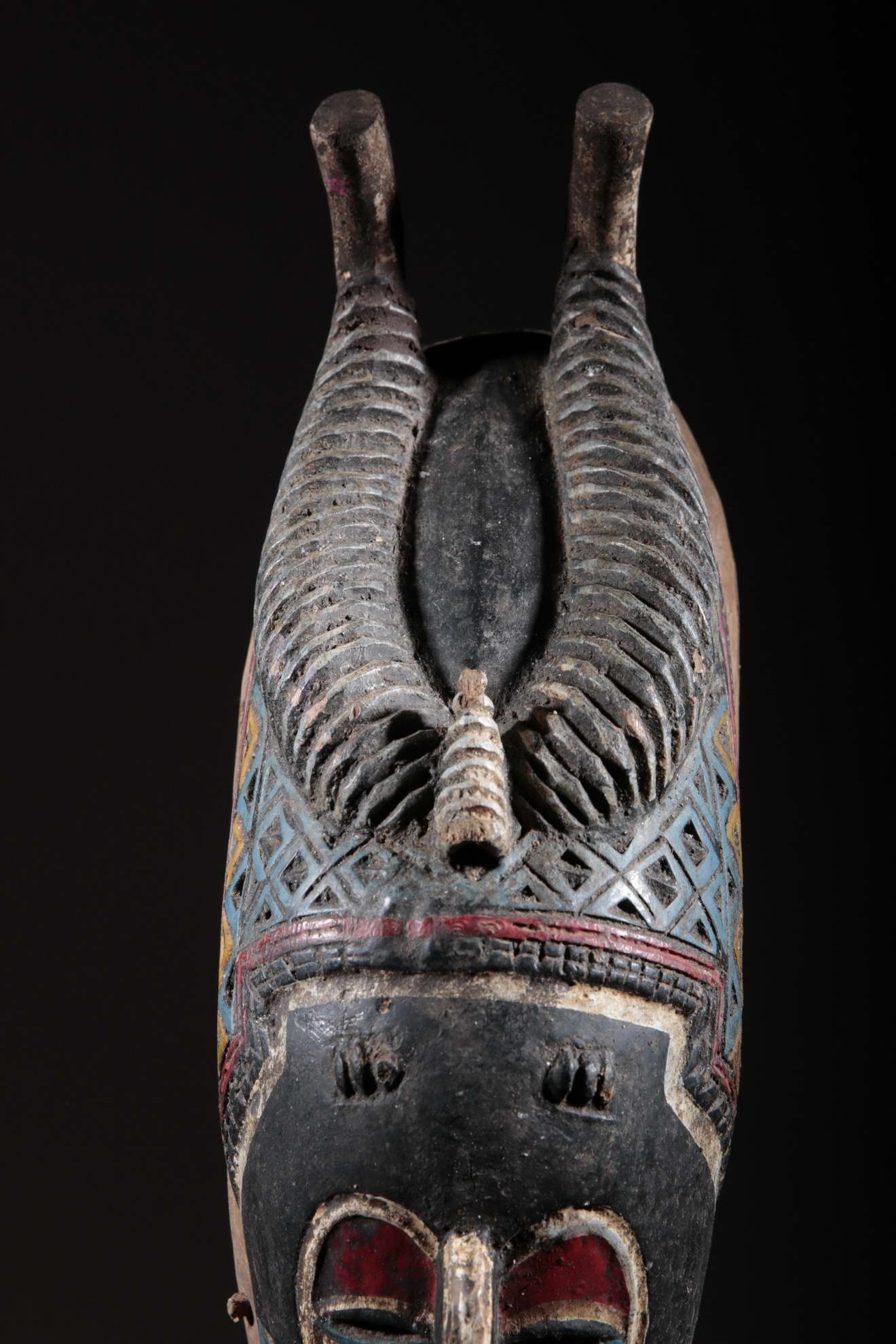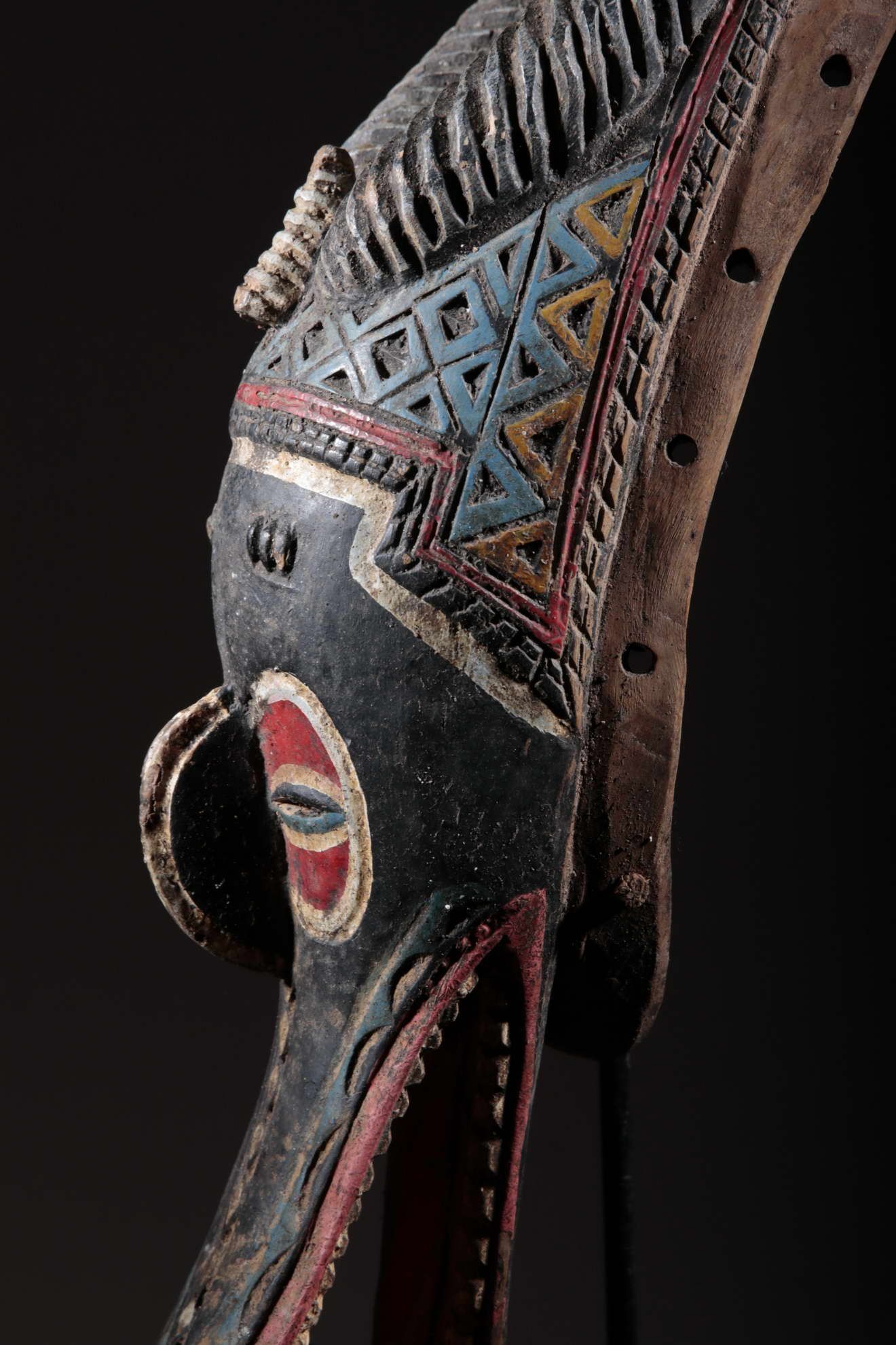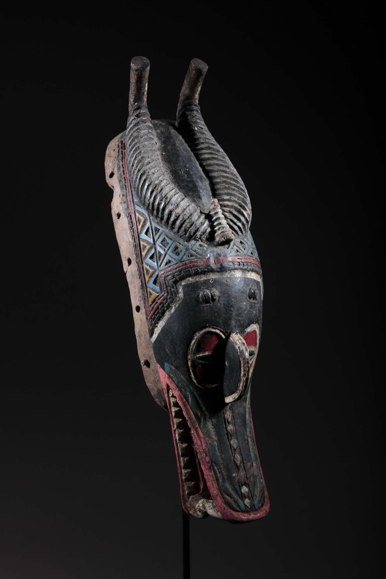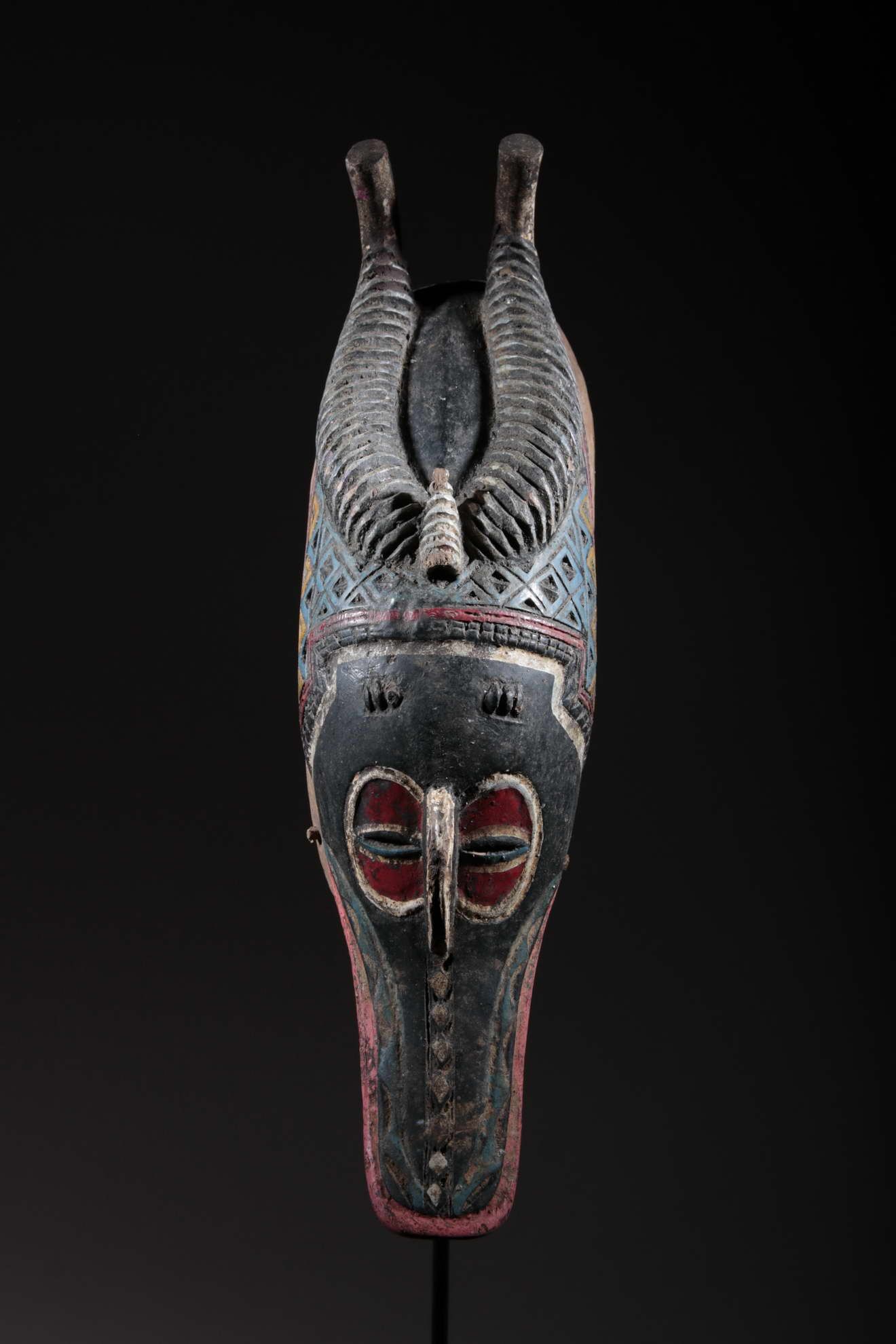 Le masque Zamble est très particulier à l'ethnie Guro. Mi-léopard, mi-antilope, il constitue le trait d'union entre les masques profanes et les masques sacrés.