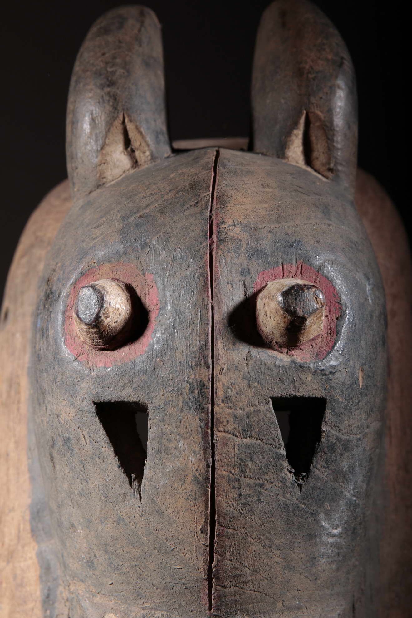 Le masque Zamble est très particulier à l'ethnie Guro. Mi-léopard, mi-antilope, il constitue le trait d'union entre les masques profanes et les masques sacrés.