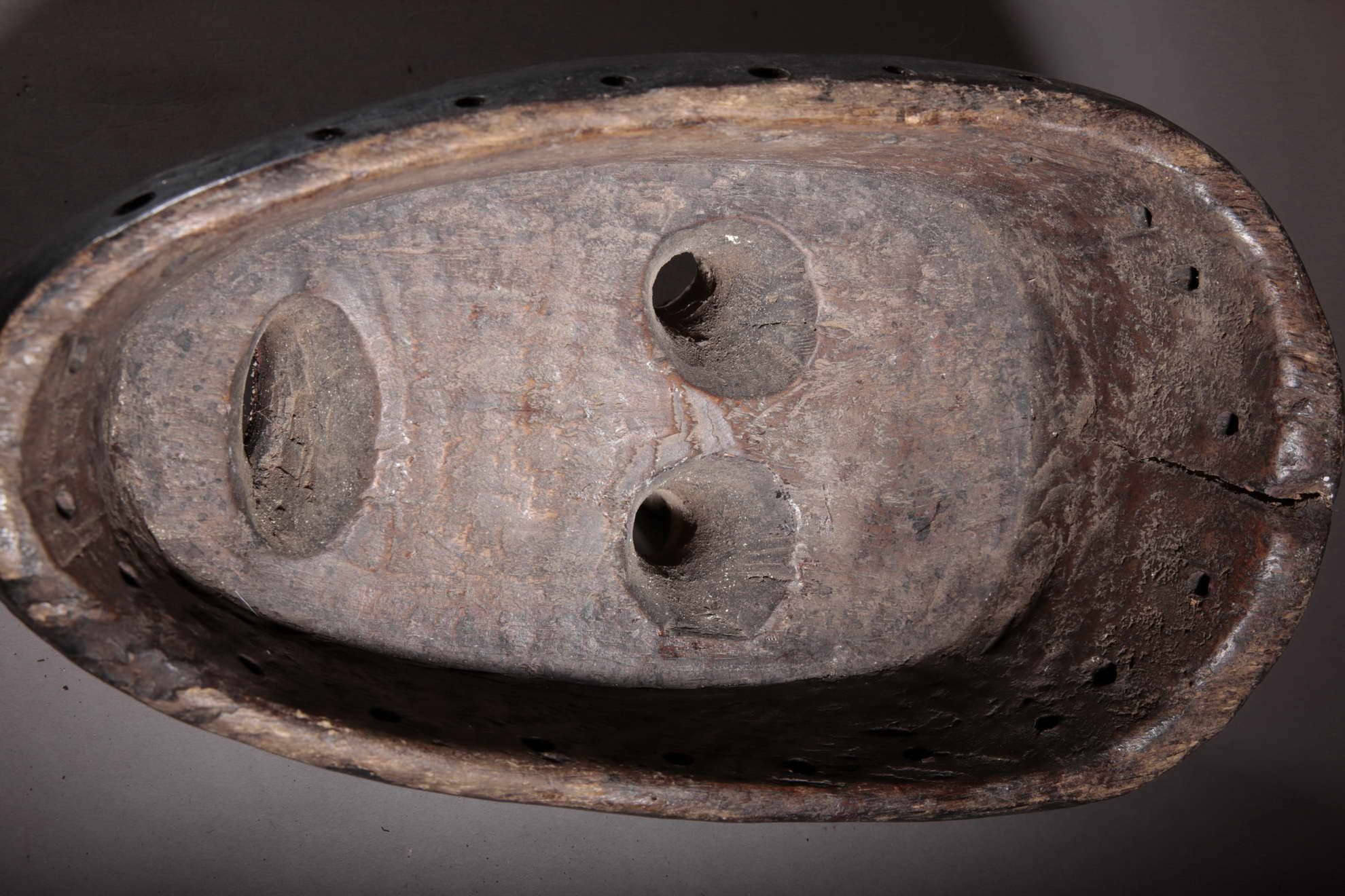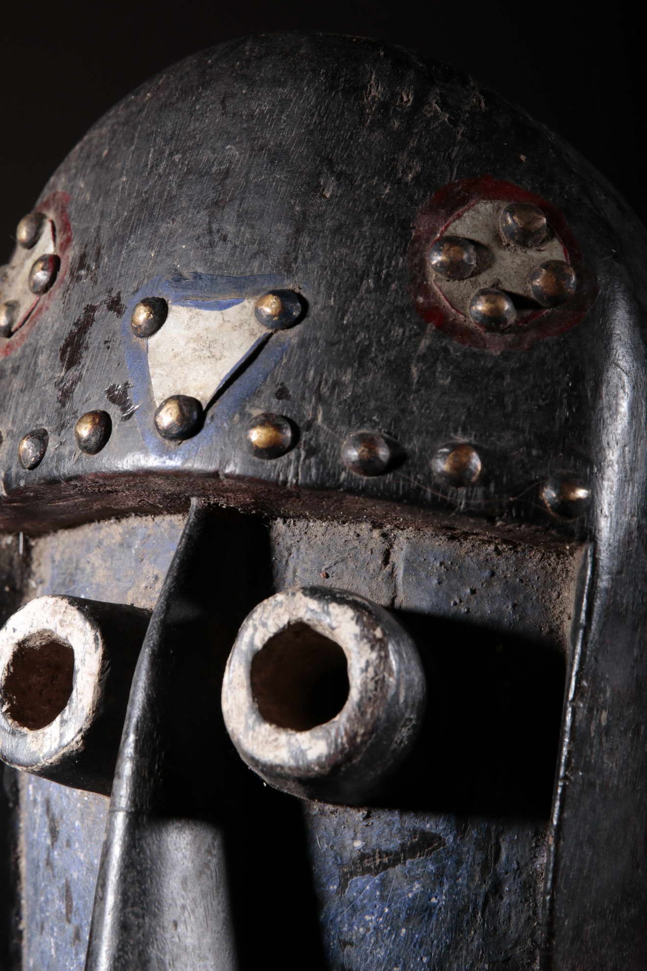 Les masques masculins aux formes géométriques sont souvent reconnaissables à leur long nez encadré par une, deux ou plusieurs paires d'yeux protubérants de forme tubulaire, d'allure parfois menaçante. Les traits des masques féminins sont plus doux, plus harmonieux et plus sereins.