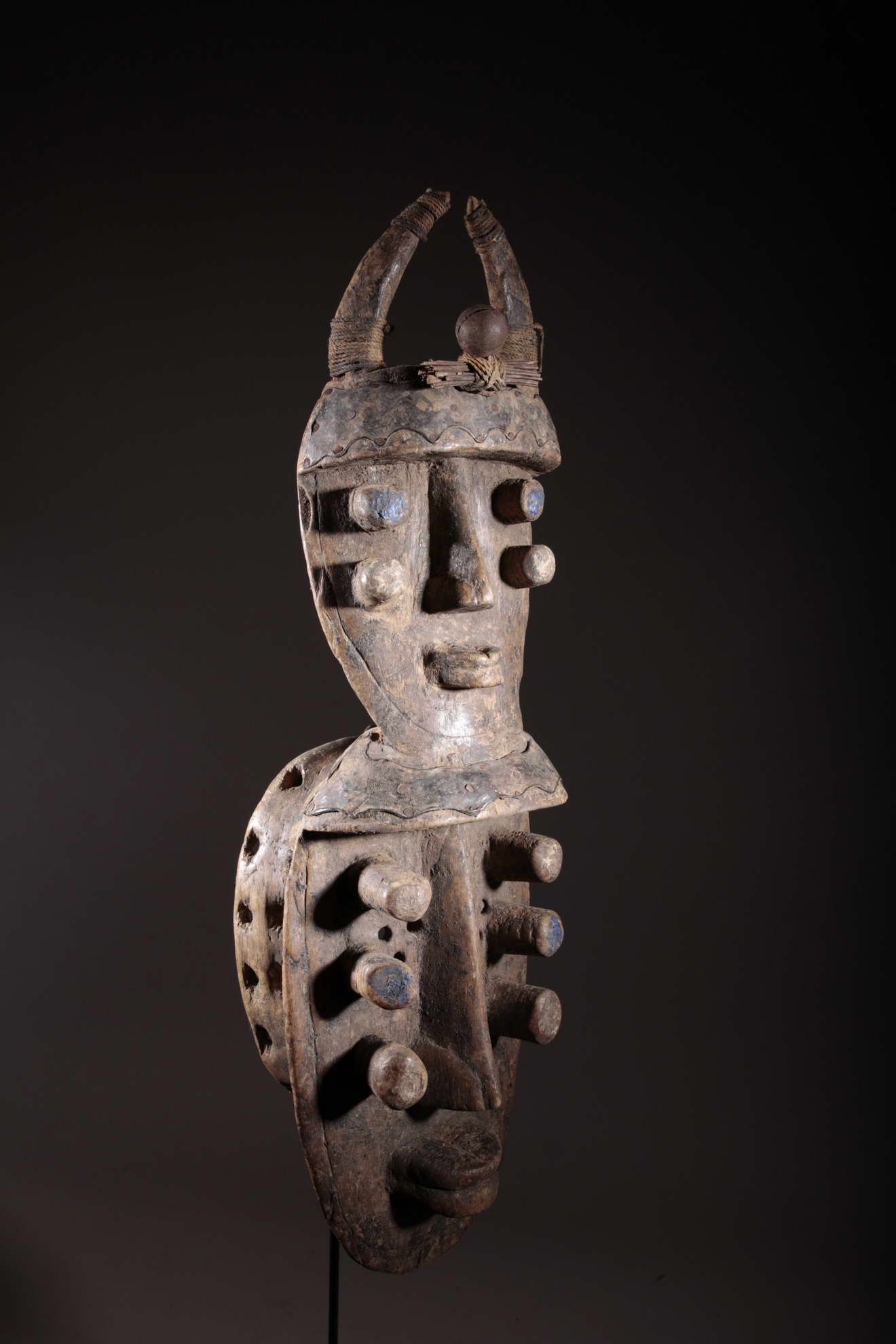Masque Grebo. Pièce ancienne de plus de 50 ans. Livré sur socle.