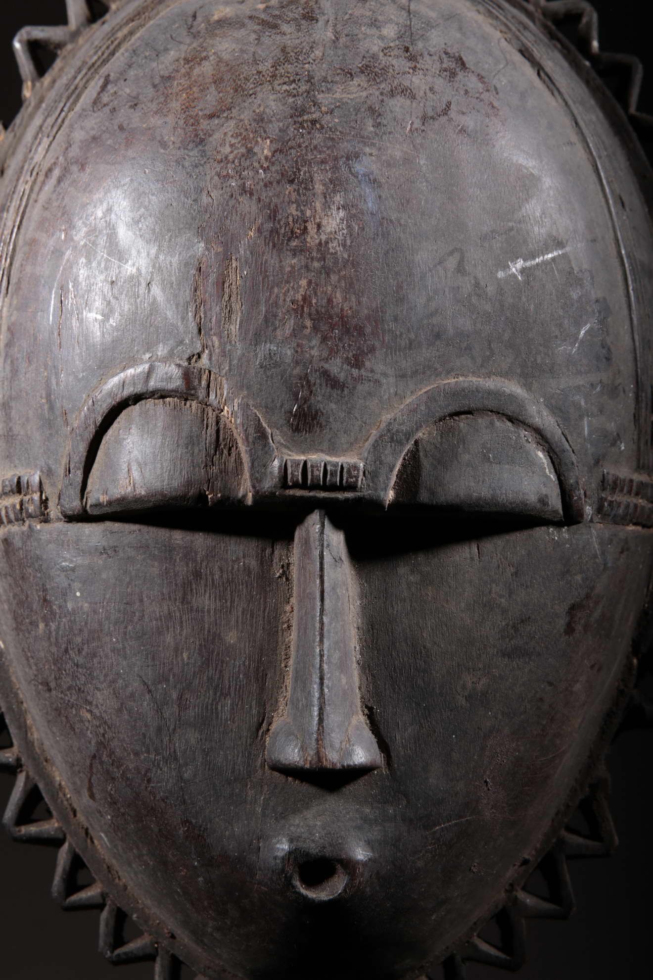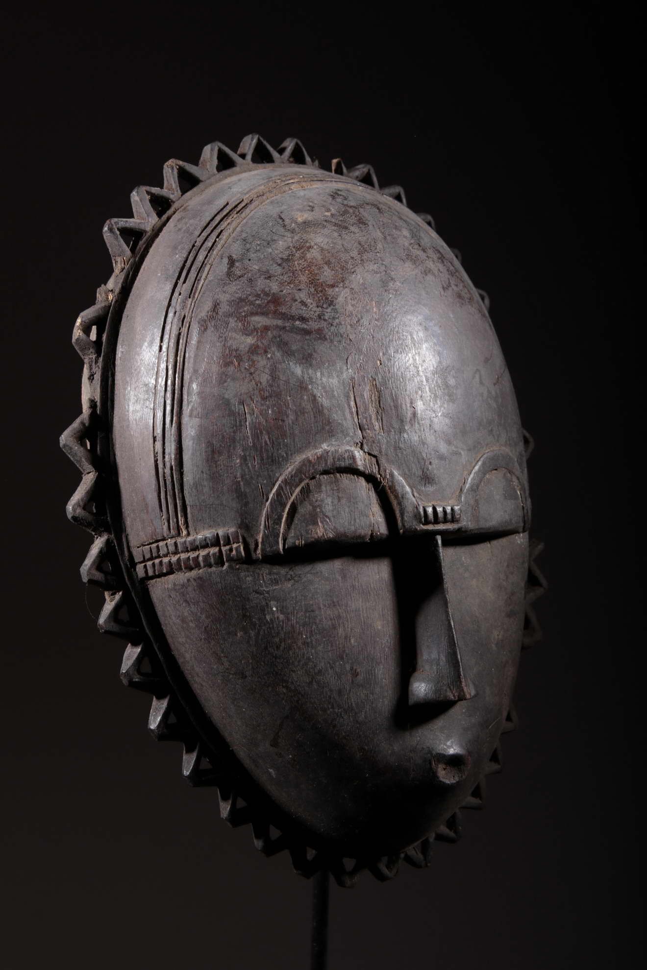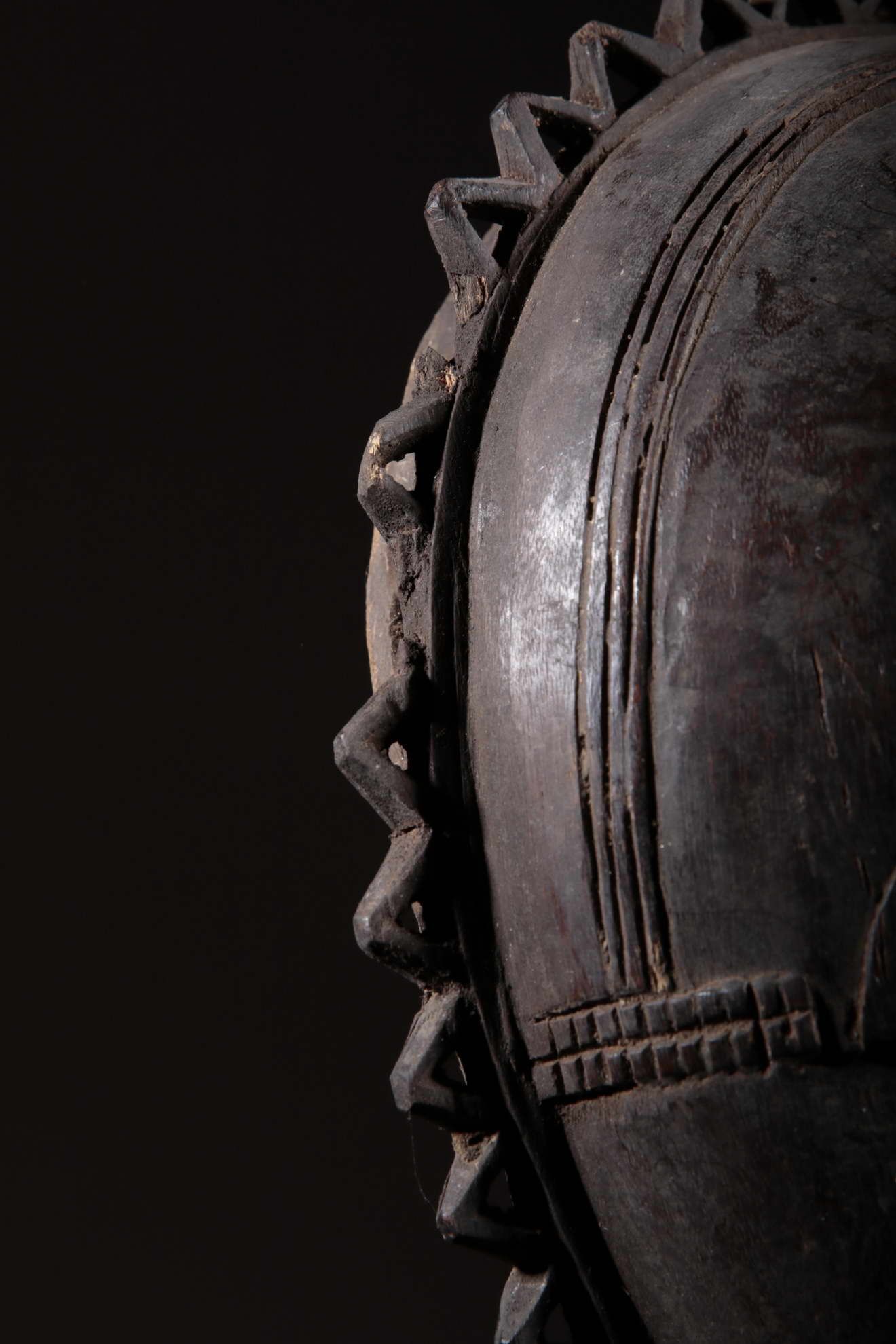 Les Yaouré sont divisés en trois groupes principaux rassemblant chacun une vingtaine de villages. Chaque village est dirigé par un chef, assisté par un conseil des anciens. La langue, la religion, la culture et l'art yaouré sont influencés par leurs puissants voisins les Baoulé et les Gouro. Cependant, ils possèdent un grand sens identitaire et ont créé un art caractéristique et rafiné.Chez les Yohouré ou Yaouré, les masques africains servent à influencer les forces surnaturelles 'YU' responsables des maux des hommes mais aussi de leur prospérité. Les masques dans cette ethnie sont interdits aux femmes, ils sont dansés le plus souvent pour rétablir le déséquilibre social et politique que peut entrainer le décès. Les Yohourés ont influencé les Baoulés en ce qui concerne l'esthétique des masques et ont été eux-mêmes influencés par le style Gouro. Sur ce masque le nez et la chevelure rappellent les masques Gu des Gouro. La chevelure est disposée en trois demi-cercles très travaillés : cela est le signe chez les Yohouré de pouvoir et de richesse*. Les masques de cette ethnie dégagent une sérénité, une douceur qui sont dûs à des conditions de vie relativement clémentes (climat et agriculture favorisés par la région lagunaire boisée qu'ils occupent). Les masques Yohouré sont souvent entourés d'une bordure dentelée caractéristique qui structure le masque et souligne l'harmonie générale des formes.