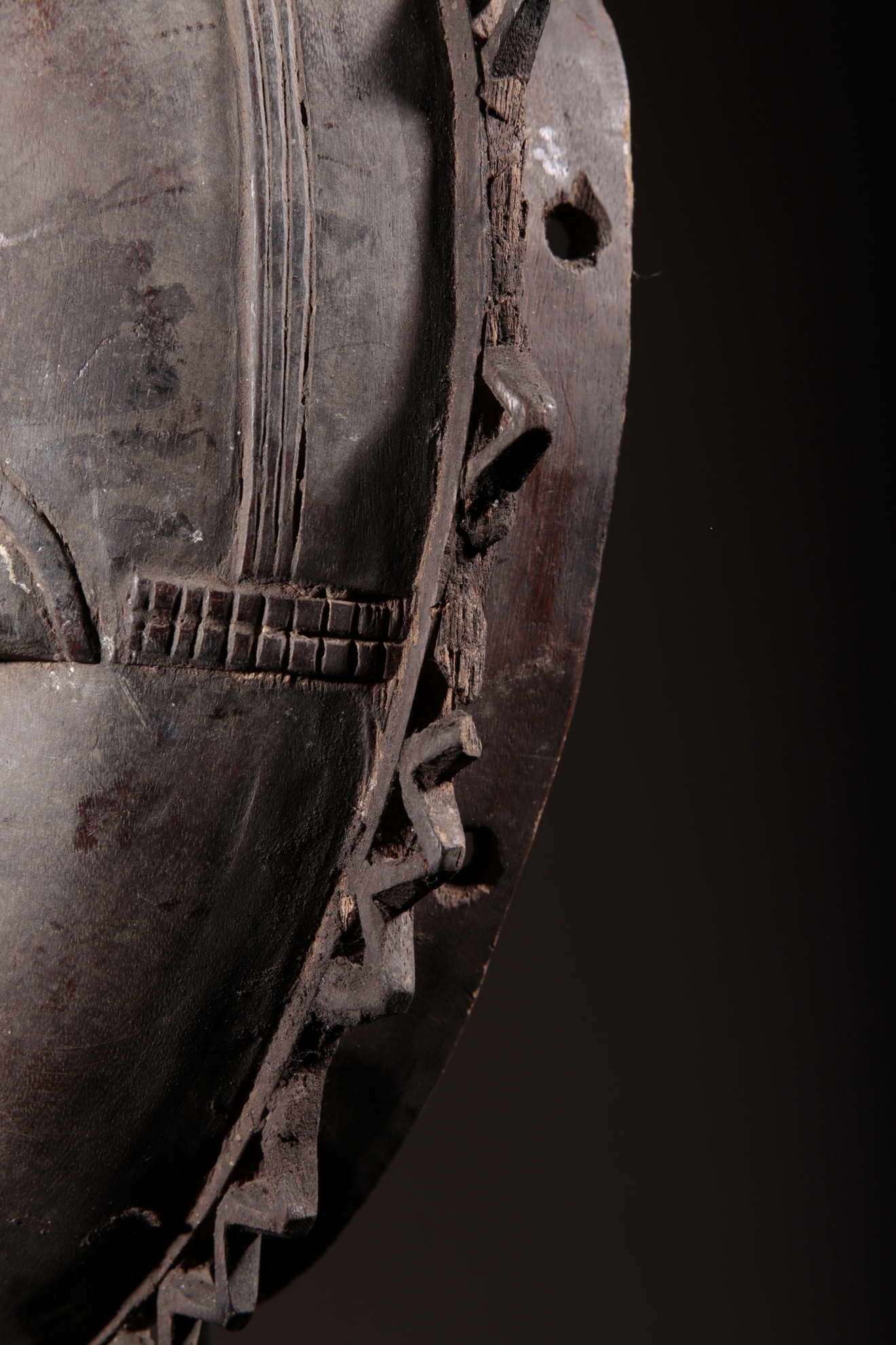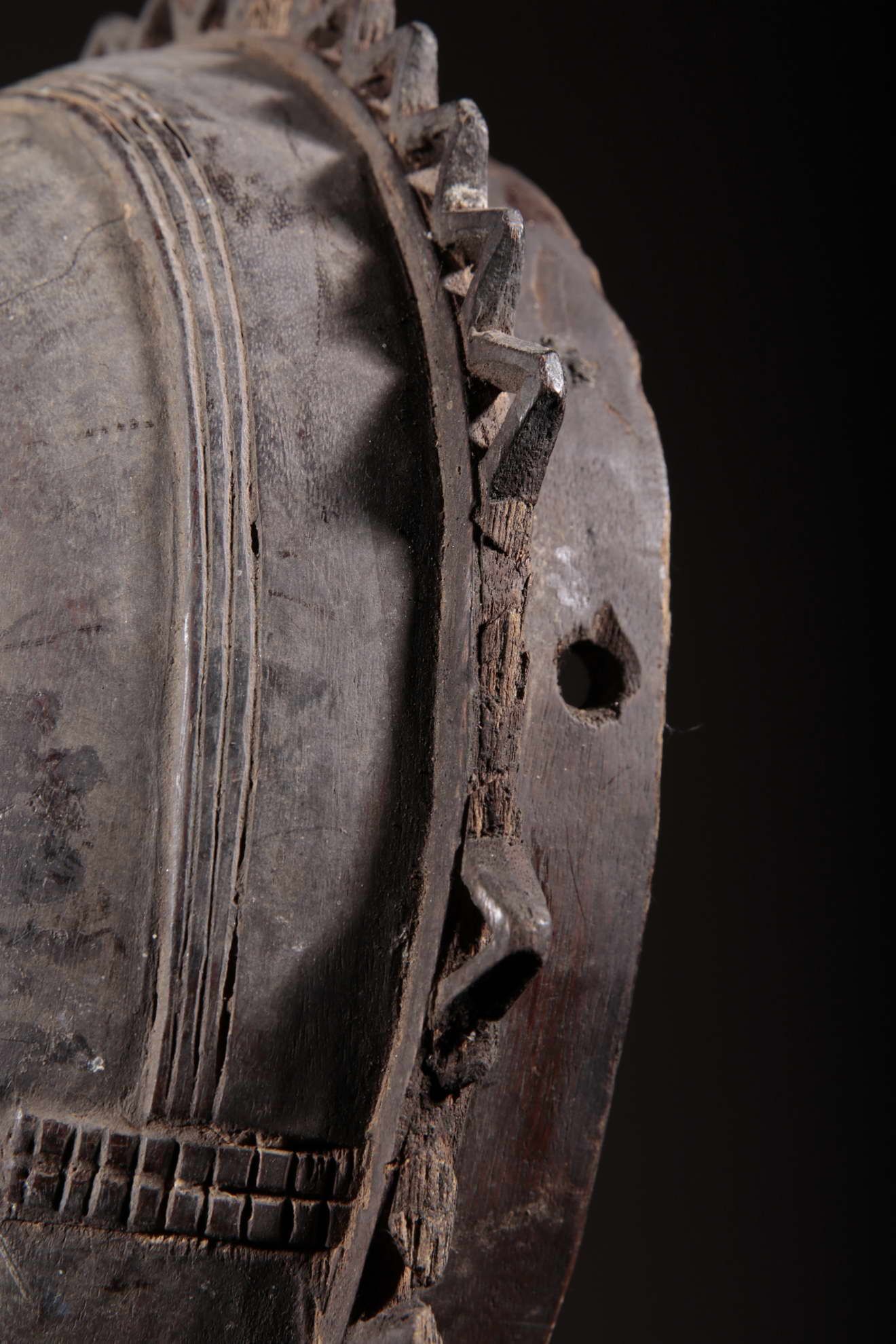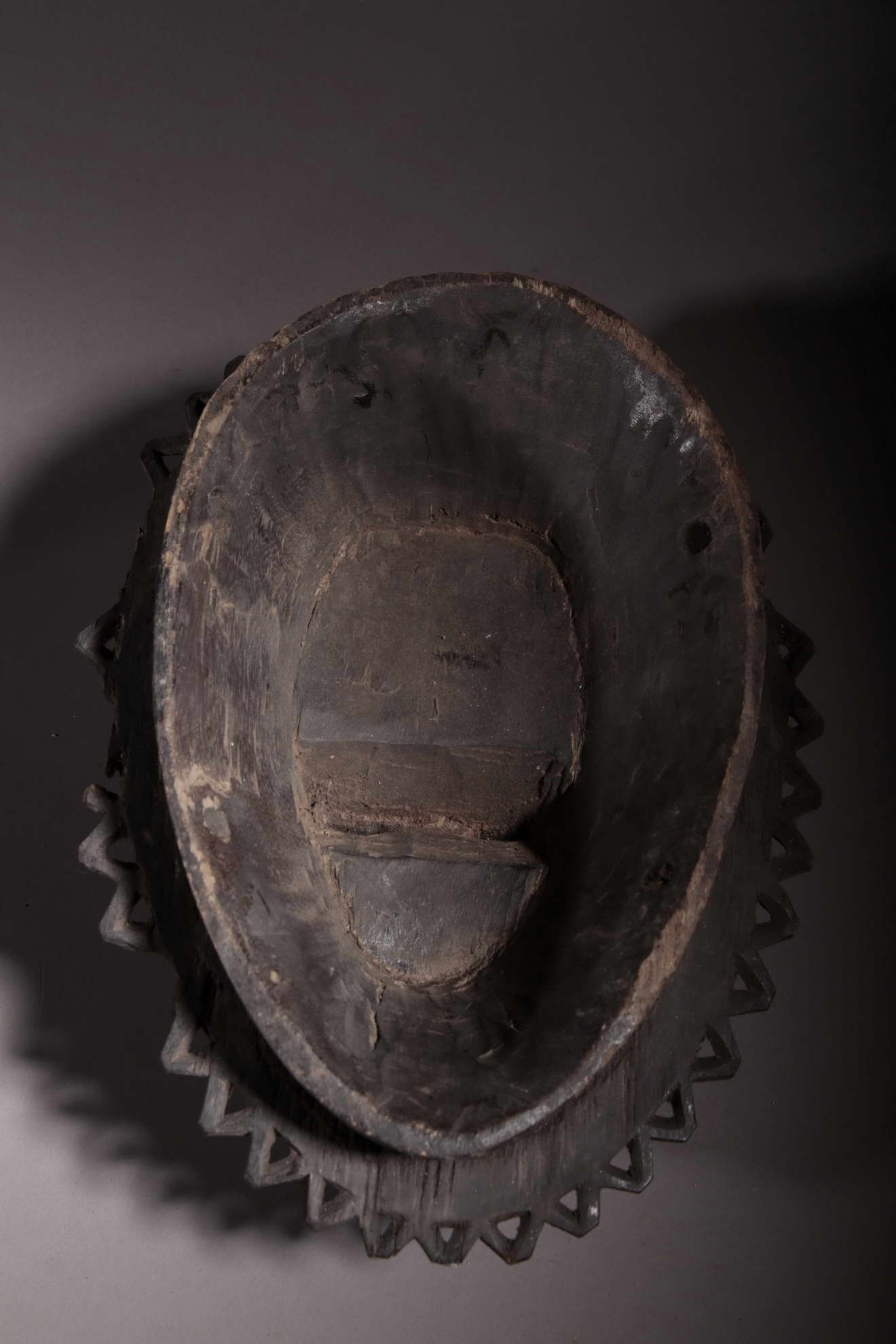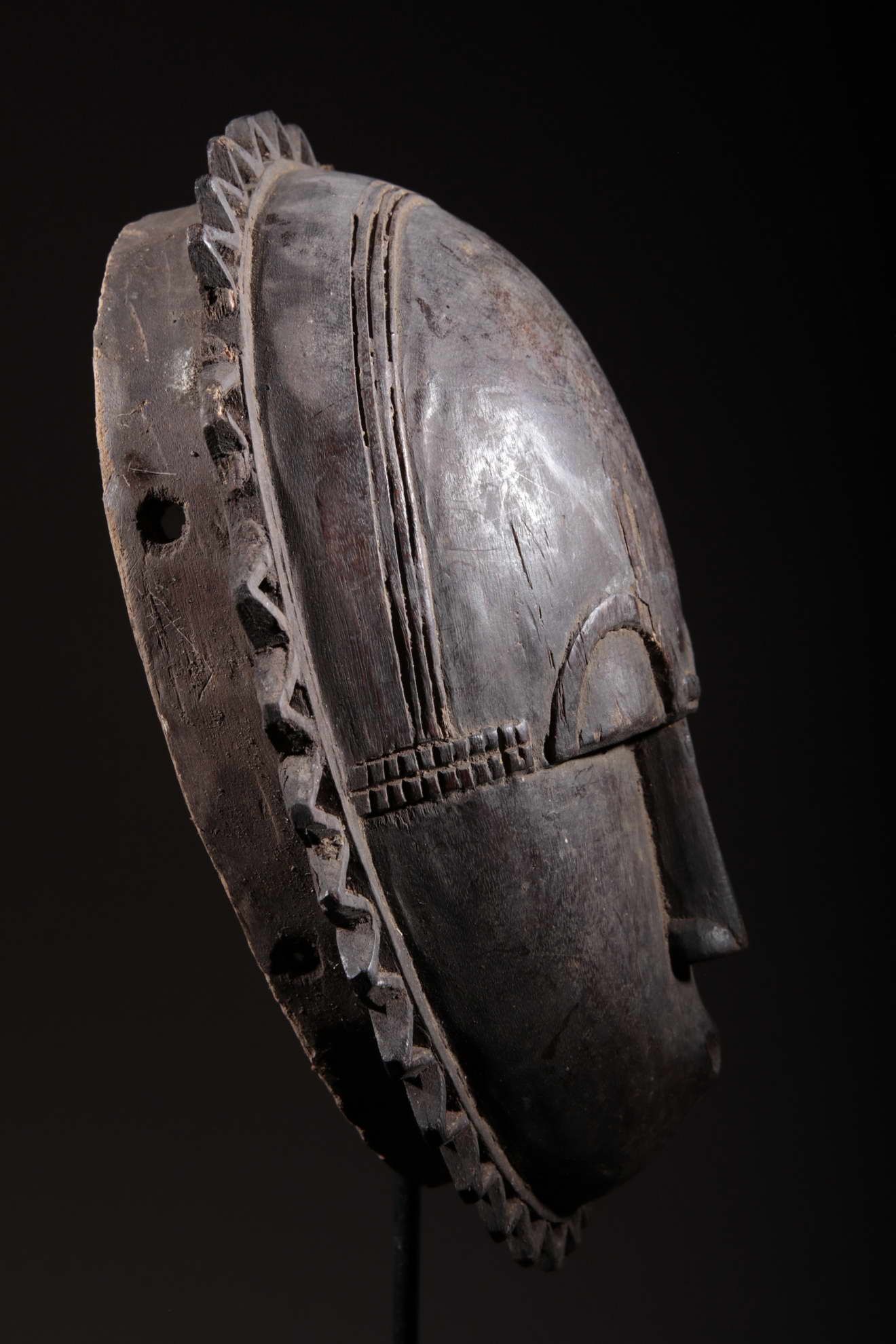 Les Yaouré sont divisés en trois groupes principaux rassemblant chacun une vingtaine de villages. Chaque village est dirigé par un chef, assisté par un conseil des anciens. La langue, la religion, la culture et l'art yaouré sont influencés par leurs puissants voisins les Baoulé et les Gouro. Cependant, ils possèdent un grand sens identitaire et ont créé un art caractéristique et rafiné.Chez les Yohouré ou Yaouré, les masques africains servent à influencer les forces surnaturelles 'YU' responsables des maux des hommes mais aussi de leur prospérité. Les masques dans cette ethnie sont interdits aux femmes, ils sont dansés le plus souvent pour rétablir le déséquilibre social et politique que peut entrainer le décès. Les Yohourés ont influencé les Baoulés en ce qui concerne l'esthétique des masques et ont été eux-mêmes influencés par le style Gouro. Sur ce masque le nez et la chevelure rappellent les masques Gu des Gouro. La chevelure est disposée en trois demi-cercles très travaillés : cela est le signe chez les Yohouré de pouvoir et de richesse*. Les masques de cette ethnie dégagent une sérénité, une douceur qui sont dûs à des conditions de vie relativement clémentes (climat et agriculture favorisés par la région lagunaire boisée qu'ils occupent). Les masques Yohouré sont souvent entourés d'une bordure dentelée caractéristique qui structure le masque et souligne l'harmonie générale des formes.