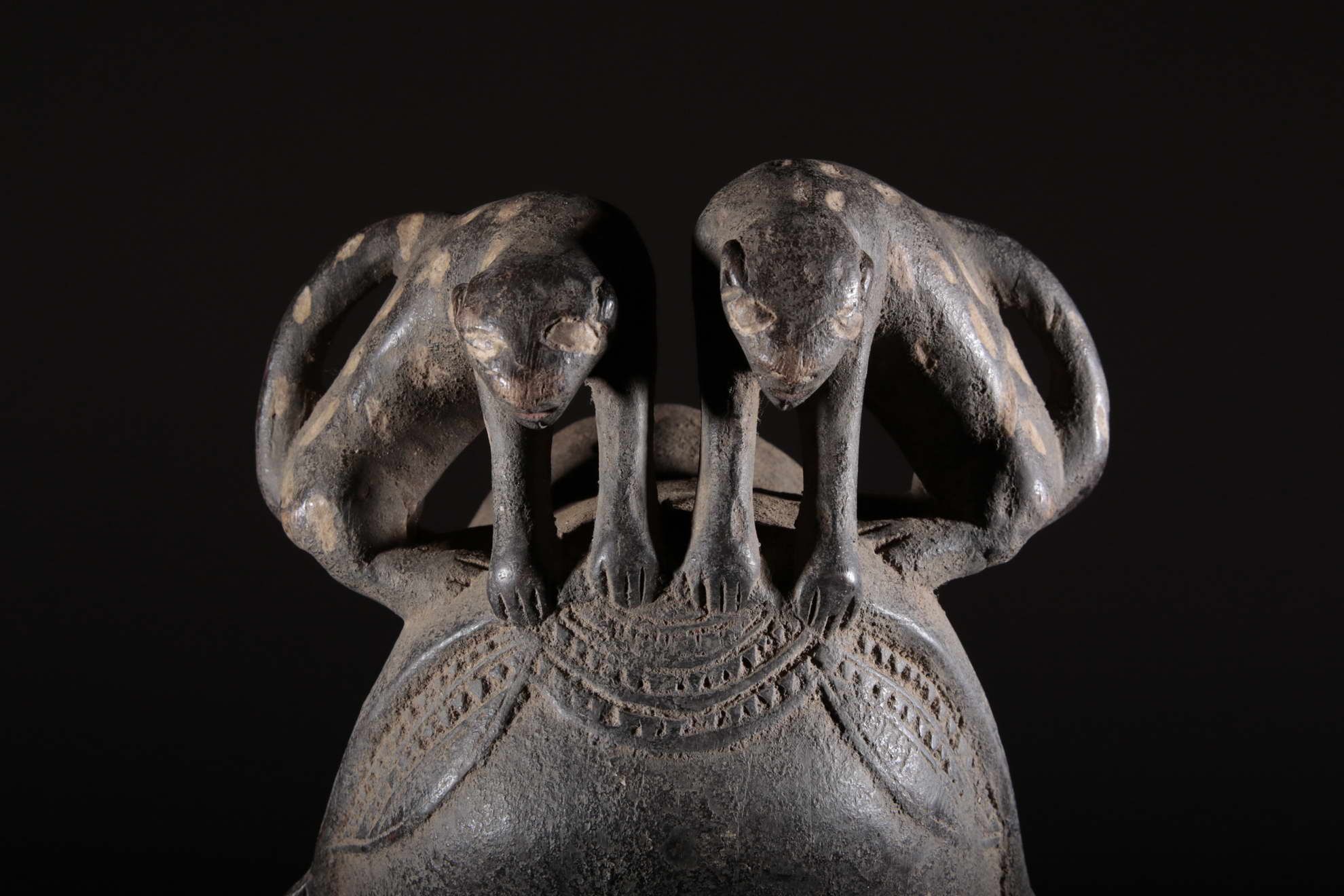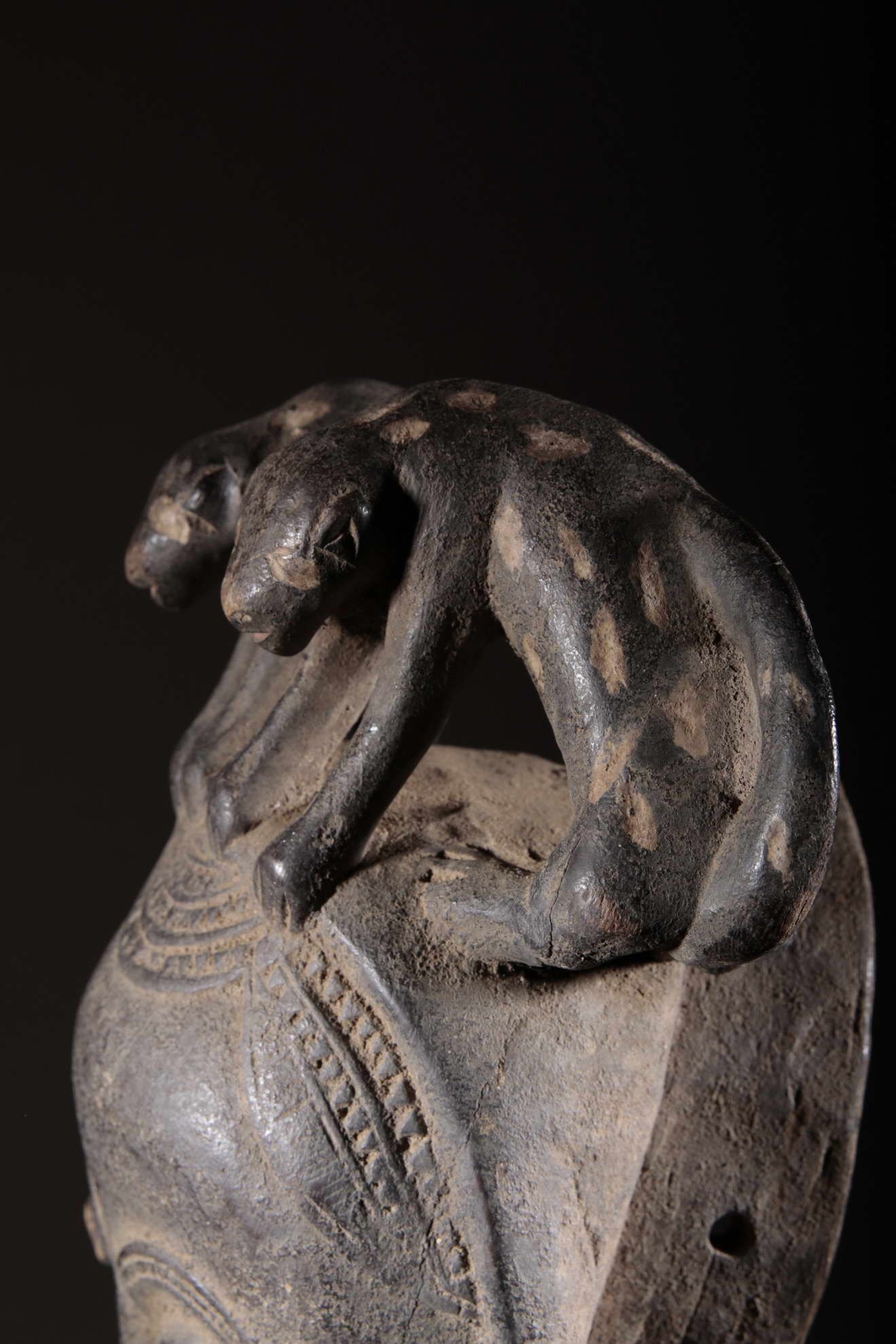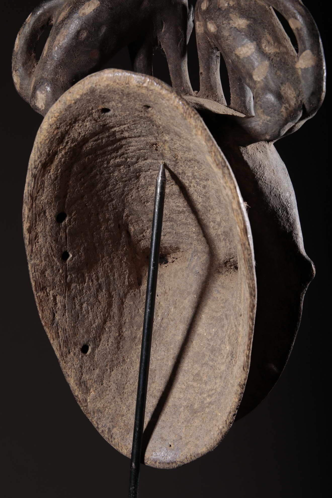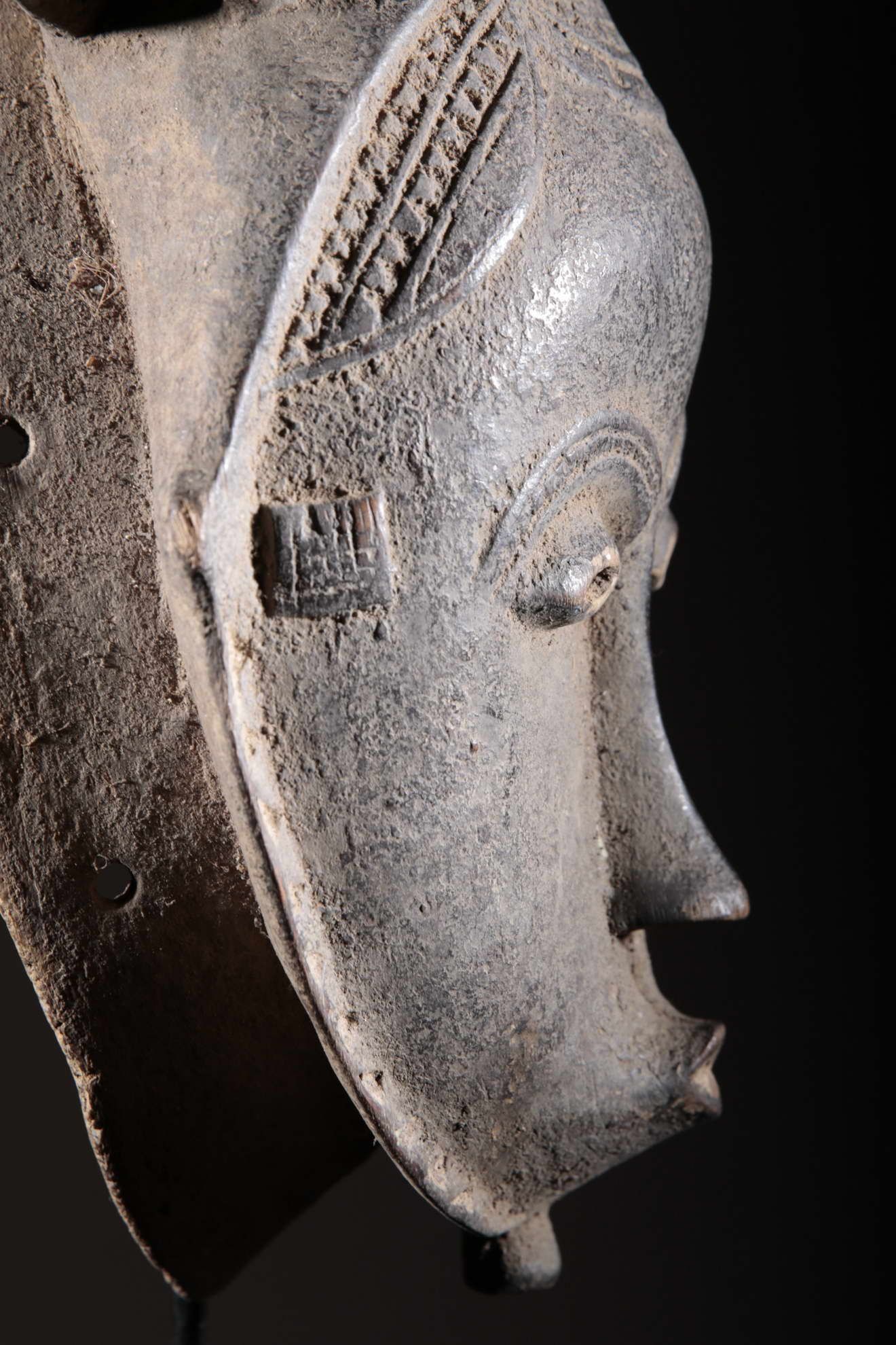 Les Yaouré sont divisés en trois groupes principaux rassemblant chacun une vingtaine de villages. Chaque village est dirigé par un chef, assisté par un conseil des anciens. La langue, la religion, la culture et l'art yaouré sont influencés par leurs puissants voisins les Baoulé et les Gouro. Cependant, ils possèdent un grand sens identitaire et ont créé un art caractéristique et rafiné.Chez les Yohouré ou Yaouré, les masques africains servent à influencer les forces surnaturelles 'YU' responsables des maux des hommes mais aussi de leur prospérité. Les masques dans cette ethnie sont interdits aux femmes, ils sont dansés le plus souvent pour rétablir le déséquilibre social et politique que peut entrainer le décès. Les Yohourés ont influencé les Baoulés en ce qui concerne l'esthétique des masques et ont été eux-mêmes influencés par le style Gouro. Sur ce masque le nez et la chevelure rappellent les masques Gu des Gouro. La chevelure est disposée en trois demi-cercles très travaillés : cela est le signe chez les Yohouré de pouvoir et de richesse*. Les masques de cette ethnie dégagent une sérénité, une douceur qui sont dûs à des conditions de vie relativement clémentes (climat et agriculture favorisés par la région lagunaire boisée qu'ils occupent). Les masques Yohouré sont souvent entourés d'une bordure dentelée caractéristique qui structure le masque et souligne l'harmonie générale des formes.