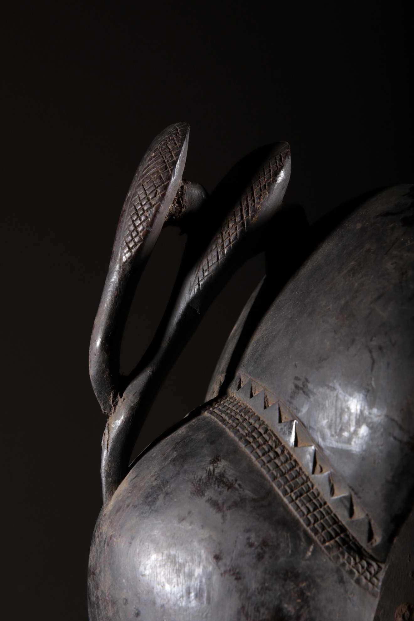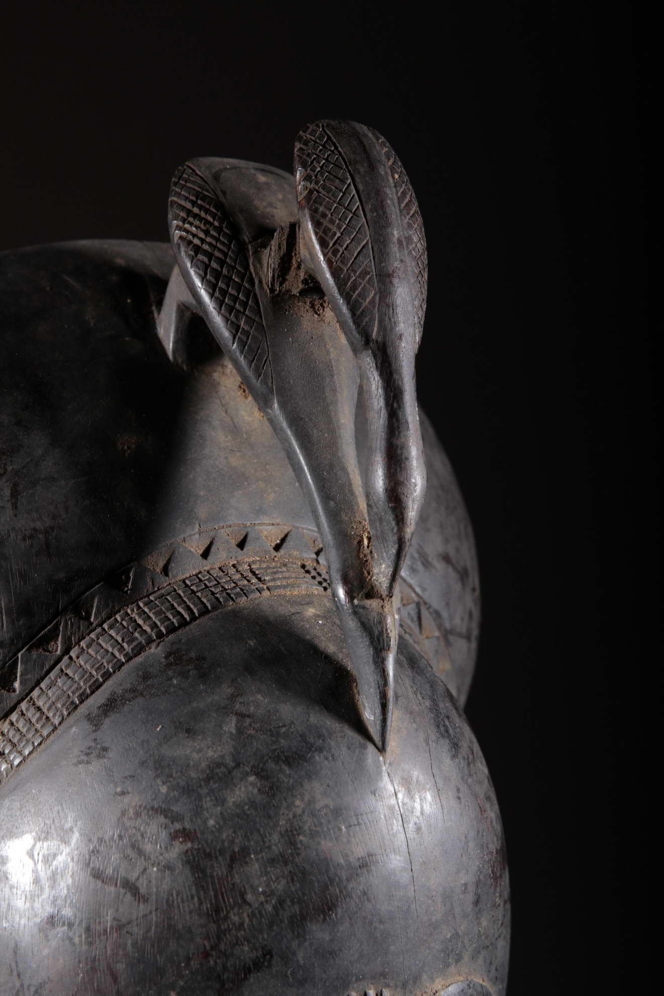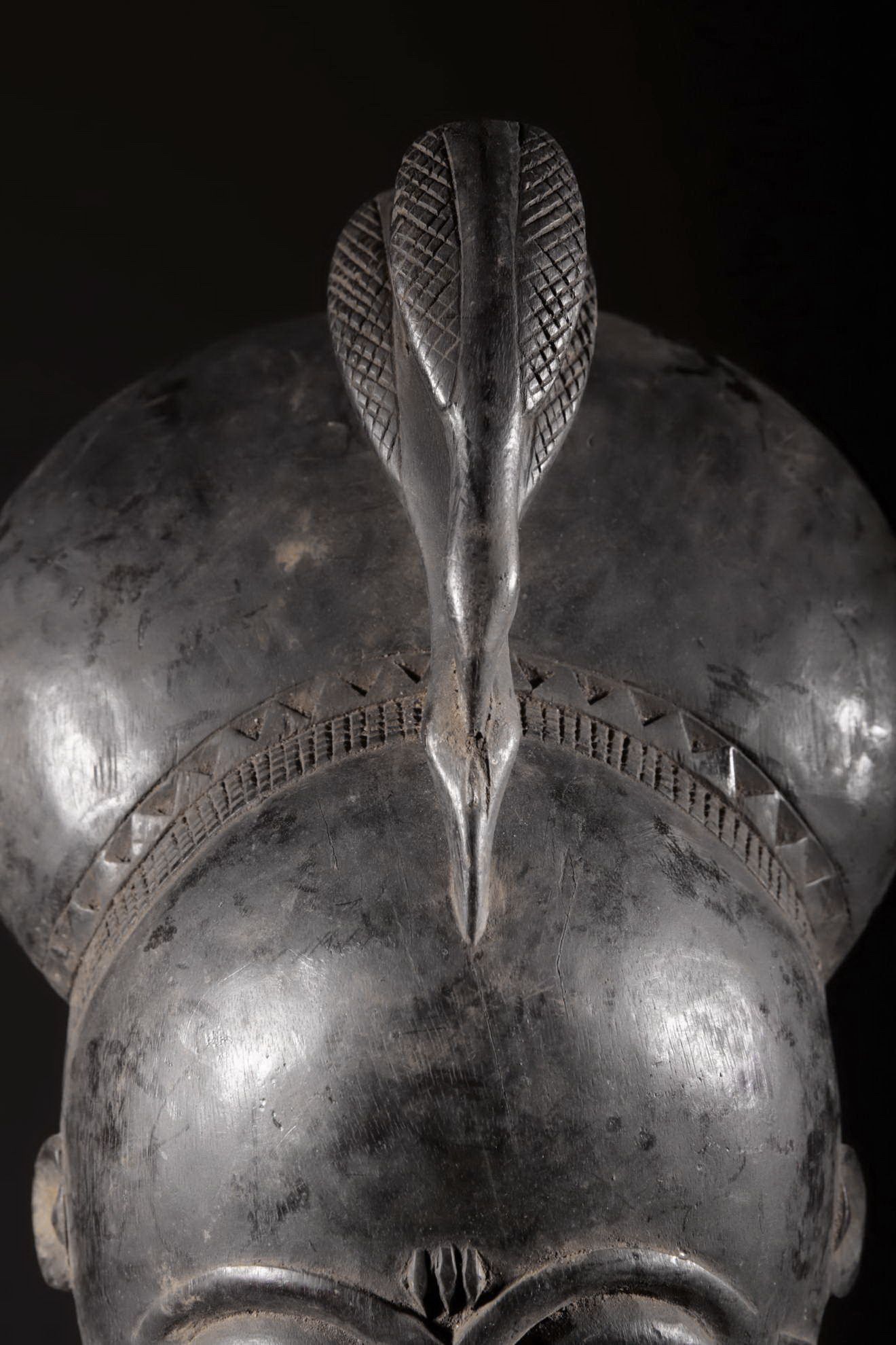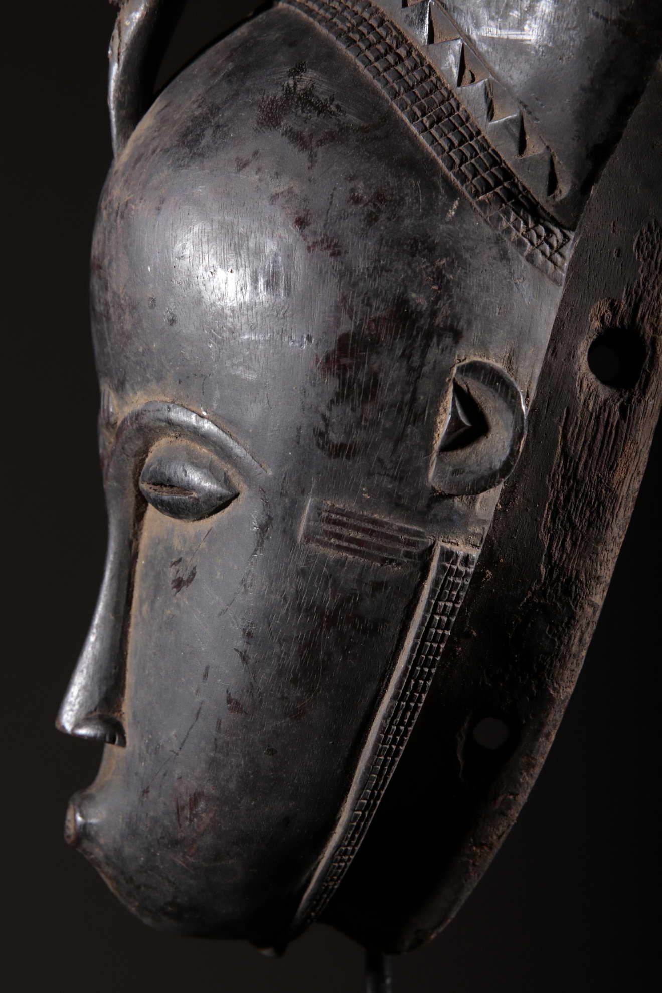 Les Yaouré sont divisés en trois groupes principaux rassemblant chacun une vingtaine de villages. Chaque village est dirigé par un chef, assisté par un conseil des anciens. La langue, la religion, la culture et l'art yaouré sont influencés par leurs puissants voisins les Baoulé et les Gouro. Cependant, ils possèdent un grand sens identitaire et ont créé un art caractéristique et rafiné.Chez les Yohouré ou Yaouré, les masques africains servent à influencer les forces surnaturelles 'YU' responsables des maux des hommes mais aussi de leur prospérité. Les masques dans cette ethnie sont interdits aux femmes, ils sont dansés le plus souvent pour rétablir le déséquilibre social et politique que peut entrainer le décès. Les Yohourés ont influencé les Baoulés en ce qui concerne l'esthétique des masques et ont été eux-mêmes influencés par le style Gouro. Sur ce masque le nez et la chevelure rappellent les masques Gu des Gouro. La chevelure est disposée en trois demi-cercles très travaillés : cela est le signe chez les Yohouré de pouvoir et de richesse*. Les masques de cette ethnie dégagent une sérénité, une douceur qui sont dûs à des conditions de vie relativement clémentes (climat et agriculture favorisés par la région lagunaire boisée qu'ils occupent). Les masques Yohouré sont souvent entourés d'une bordure dentelée caractéristique qui structure le masque et souligne l'harmonie générale des formes.