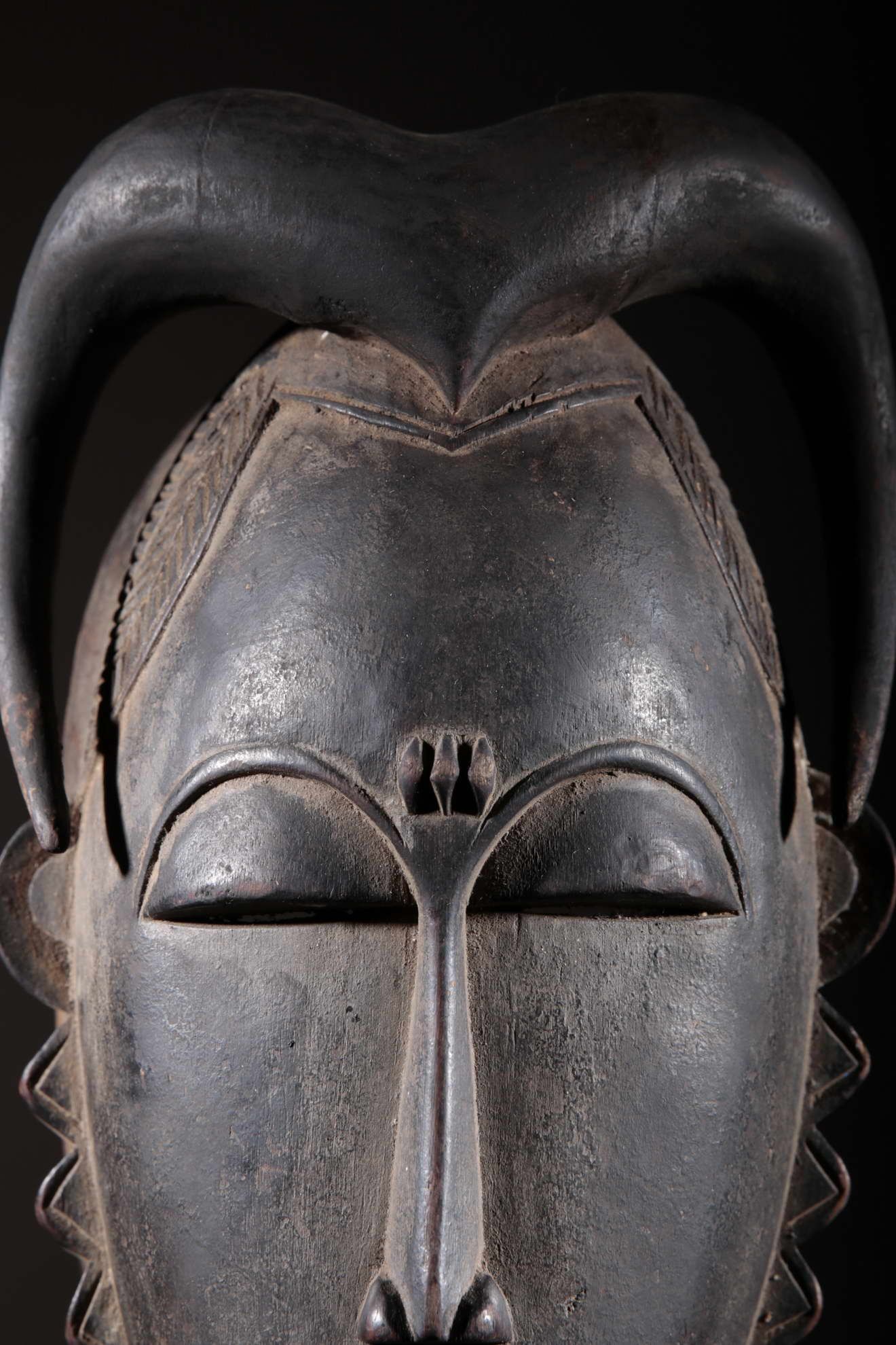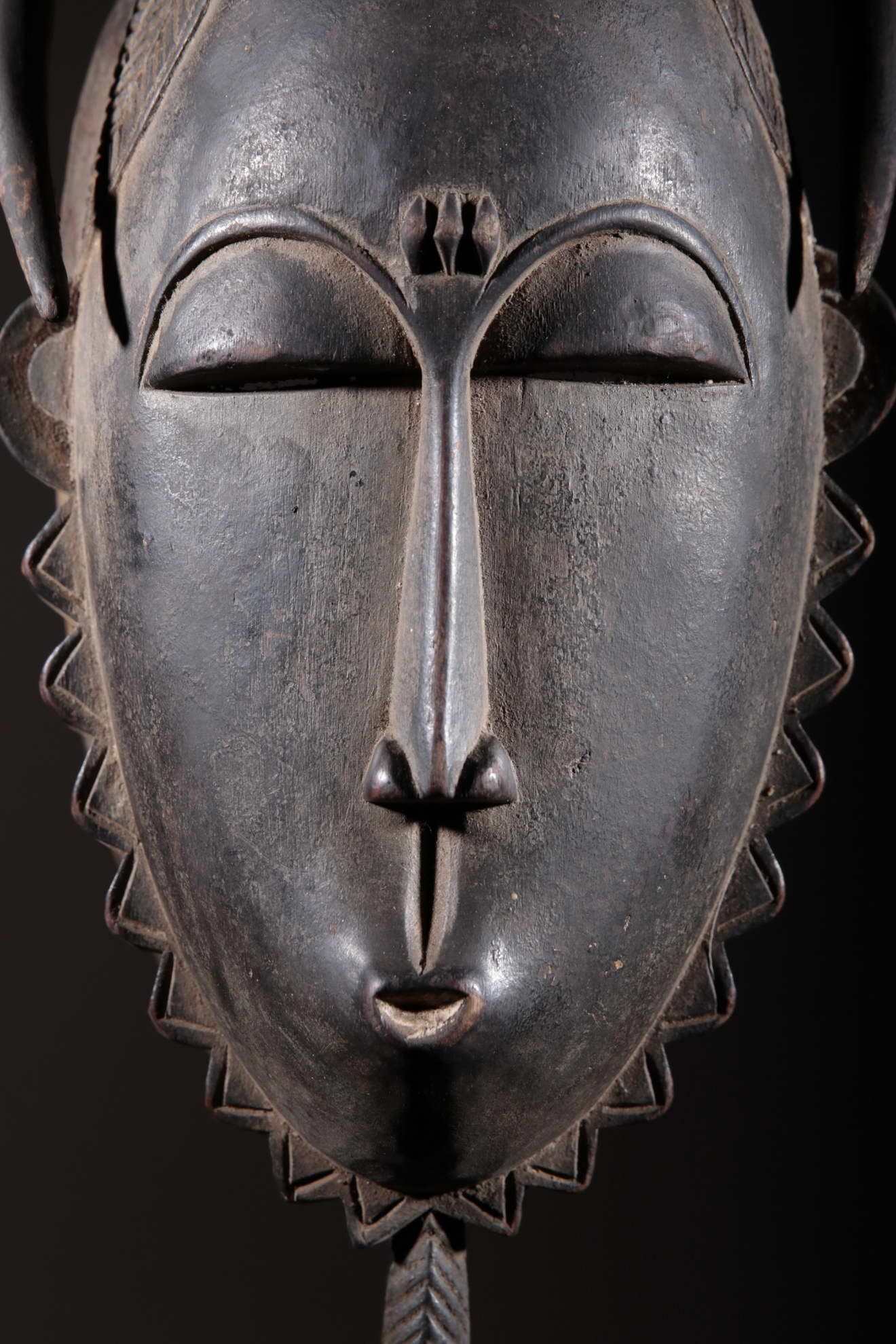 Les Yaouré sont divisés en trois groupes principaux rassemblant chacun une vingtaine de villages. Chaque village est dirigé par un chef, assisté par un conseil des anciens. La langue, la religion, la culture et l'art yaouré sont influencés par leurs puissants voisins les Baoulé et les Gouro. Cependant, ils possèdent un grand sens identitaire et ont créé un art caractéristique et rafiné.Chez les Yohouré ou Yaouré, les masques africains servent à influencer les forces surnaturelles 'YU' responsables des maux des hommes mais aussi de leur prospérité. Les masques dans cette ethnie sont interdits aux femmes, ils sont dansés le plus souvent pour rétablir le déséquilibre social et politique que peut entrainer le décès. Les Yohourés ont influencé les Baoulés en ce qui concerne l'esthétique des masques et ont été eux-mêmes influencés par le style Gouro. Sur ce masque le nez et la chevelure rappellent les masques Gu des Gouro. La chevelure est disposée en trois demi-cercles très travaillés : cela est le signe chez les Yohouré de pouvoir et de richesse*. Les masques de cette ethnie dégagent une sérénité, une douceur qui sont dûs à des conditions de vie relativement clémentes (climat et agriculture favorisés par la région lagunaire boisée qu'ils occupent). Les masques Yohouré sont souvent entourés d'une bordure dentelée caractéristique qui structure le masque et souligne l'harmonie générale des formes.