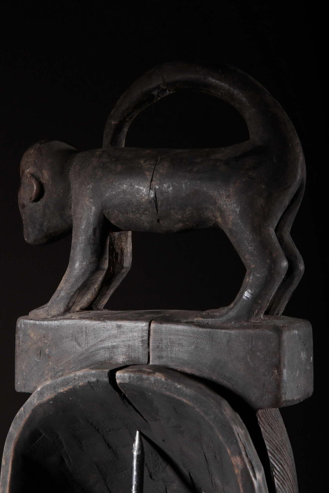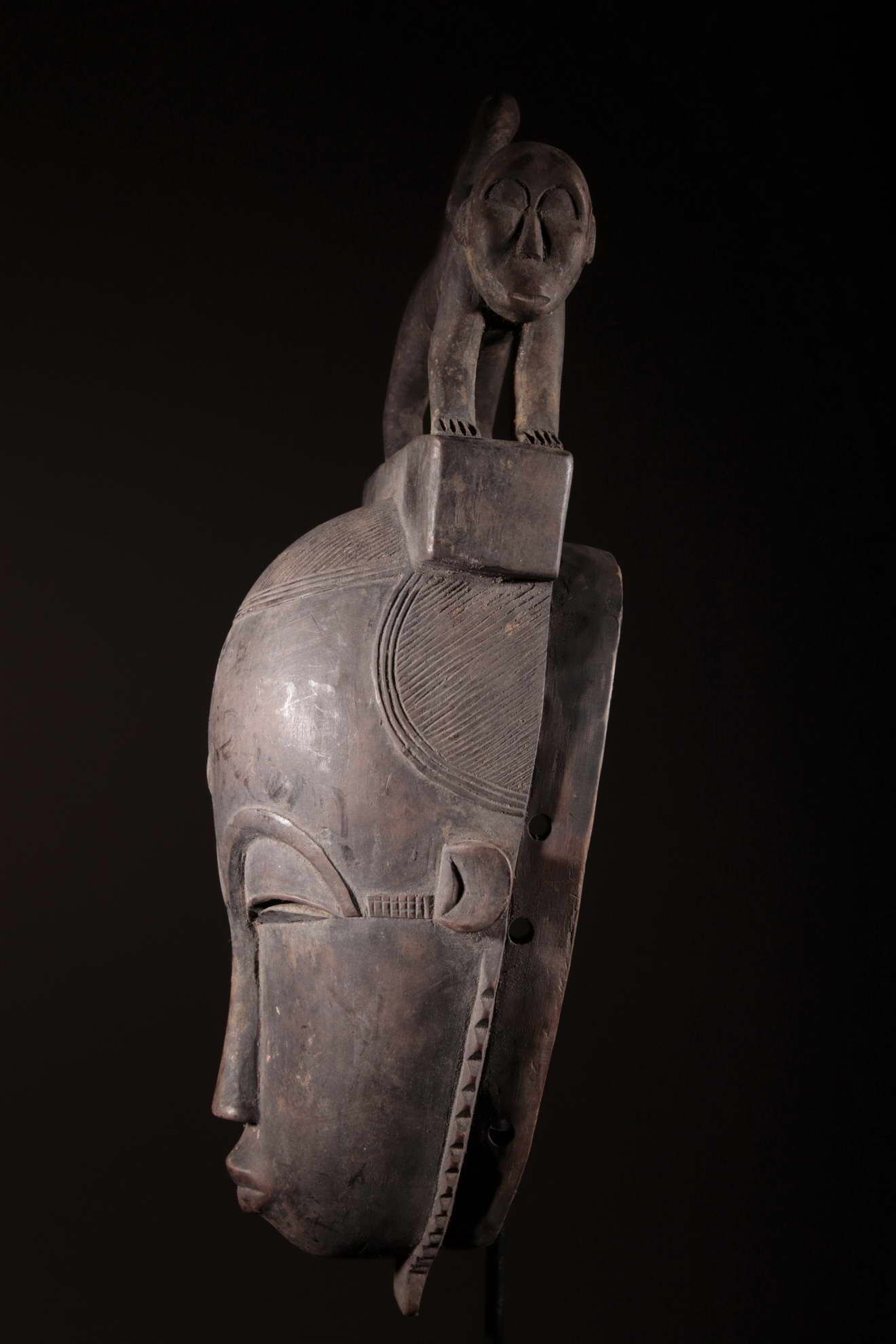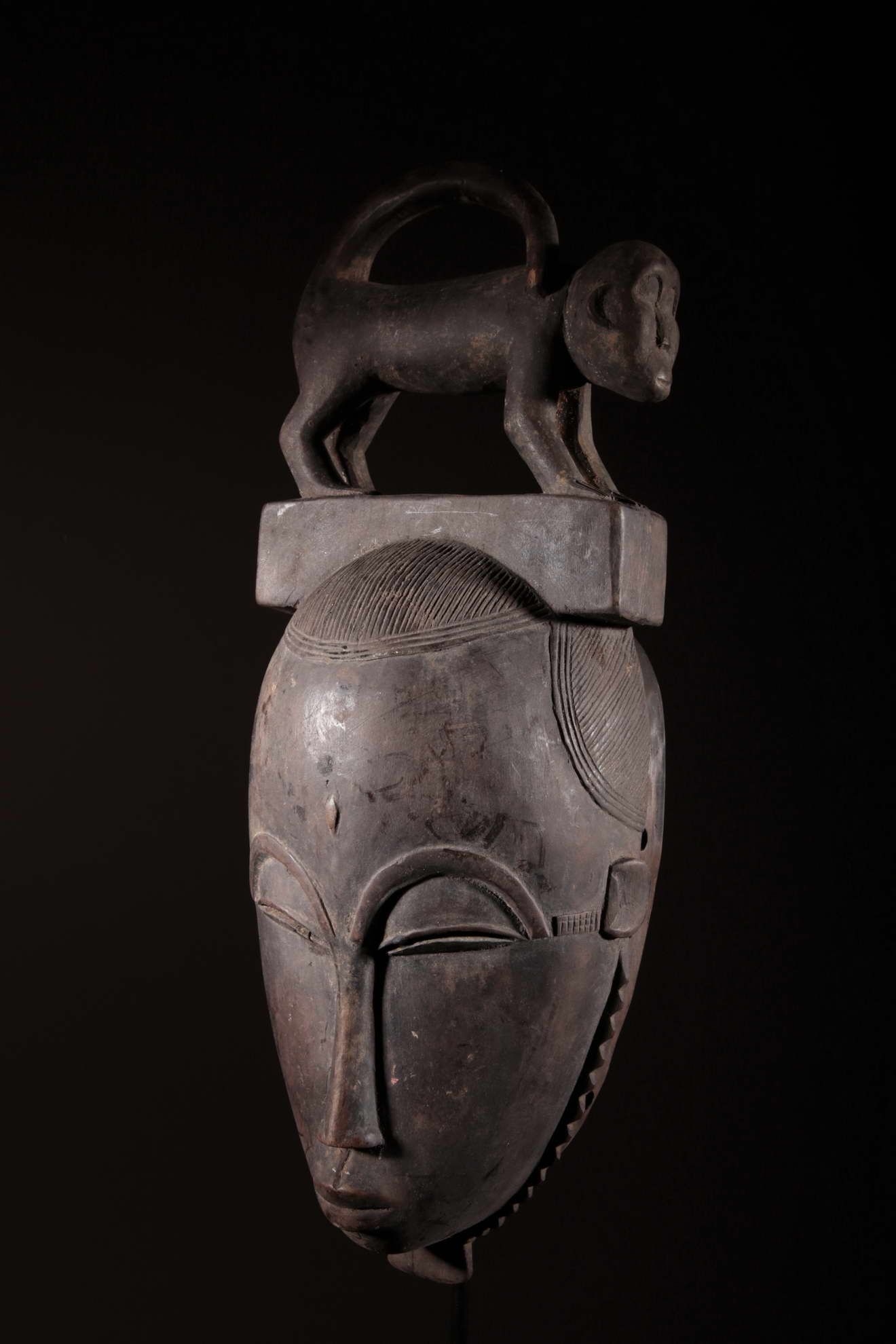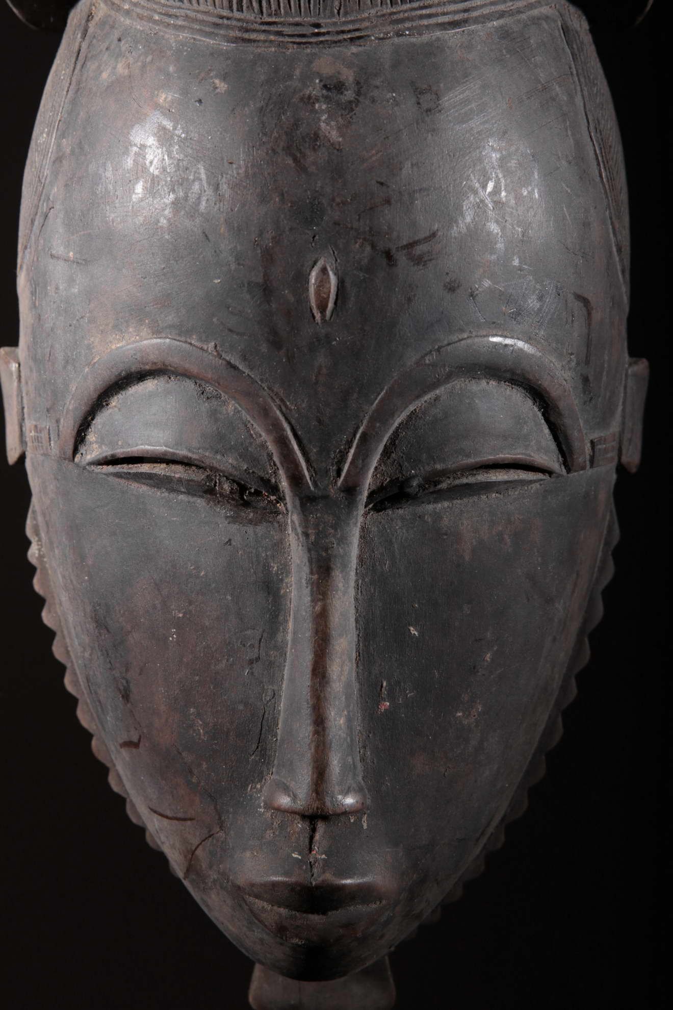 Les Yaouré sont divisés en trois groupes principaux rassemblant chacun une vingtaine de villages. Chaque village est dirigé par un chef, assisté par un conseil des anciens. La langue, la religion, la culture et l'art yaouré sont influencés par leurs puissants voisins les Baoulé et les Gouro. Cependant, ils possèdent un grand sens identitaire et ont créé un art caractéristique et rafiné.Chez les Yohouré ou Yaouré, les masques africains servent à influencer les forces surnaturelles 'YU' responsables des maux des hommes mais aussi de leur prospérité. Les masques dans cette ethnie sont interdits aux femmes, ils sont dansés le plus souvent pour rétablir le déséquilibre social et politique que peut entrainer le décès. Les Yohourés ont influencé les Baoulés en ce qui concerne l'esthétique des masques et ont été eux-mêmes influencés par le style Gouro. Sur ce masque le nez et la chevelure rappellent les masques Gu des Gouro. La chevelure est disposée en trois demi-cercles très travaillés : cela est le signe chez les Yohouré de pouvoir et de richesse*. Les masques de cette ethnie dégagent une sérénité, une douceur qui sont dûs à des conditions de vie relativement clémentes (climat et agriculture favorisés par la région lagunaire boisée qu'ils occupent). Les masques Yohouré sont souvent entourés d'une bordure dentelée caractéristique qui structure le masque et souligne l'harmonie générale des formes.