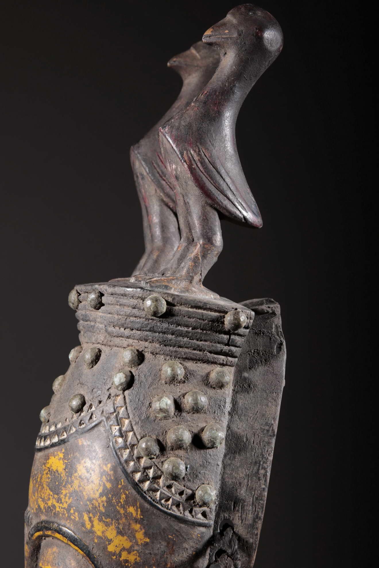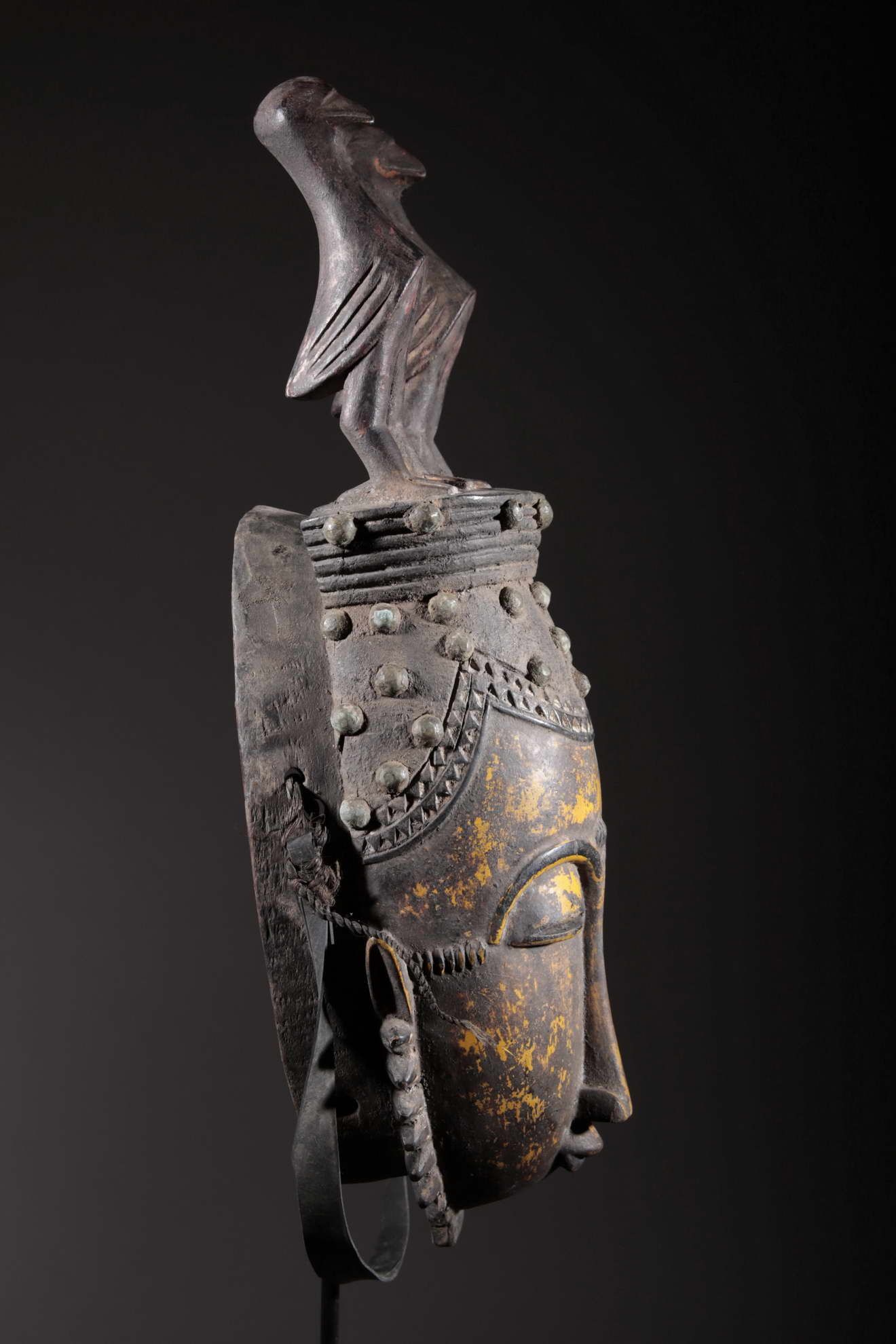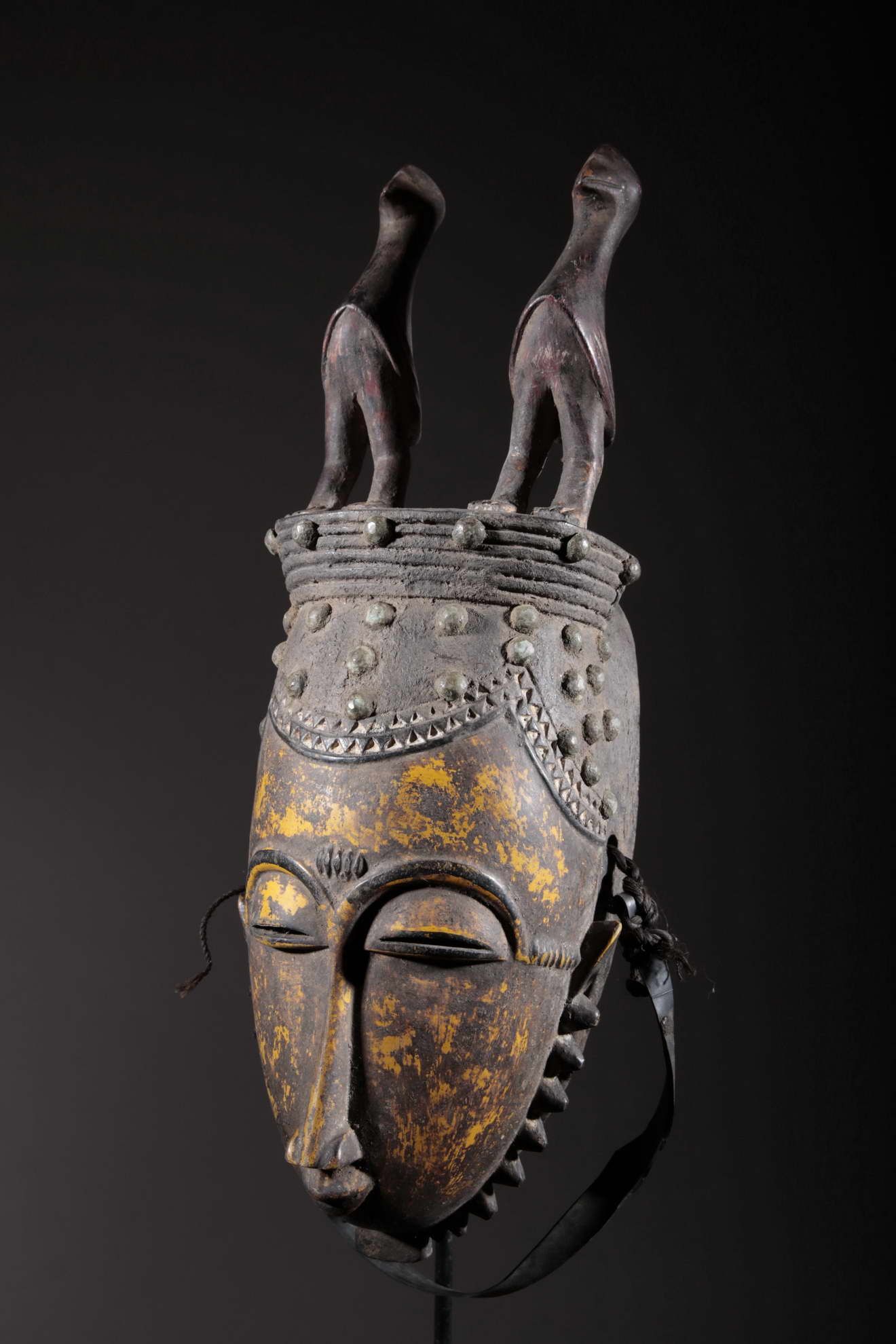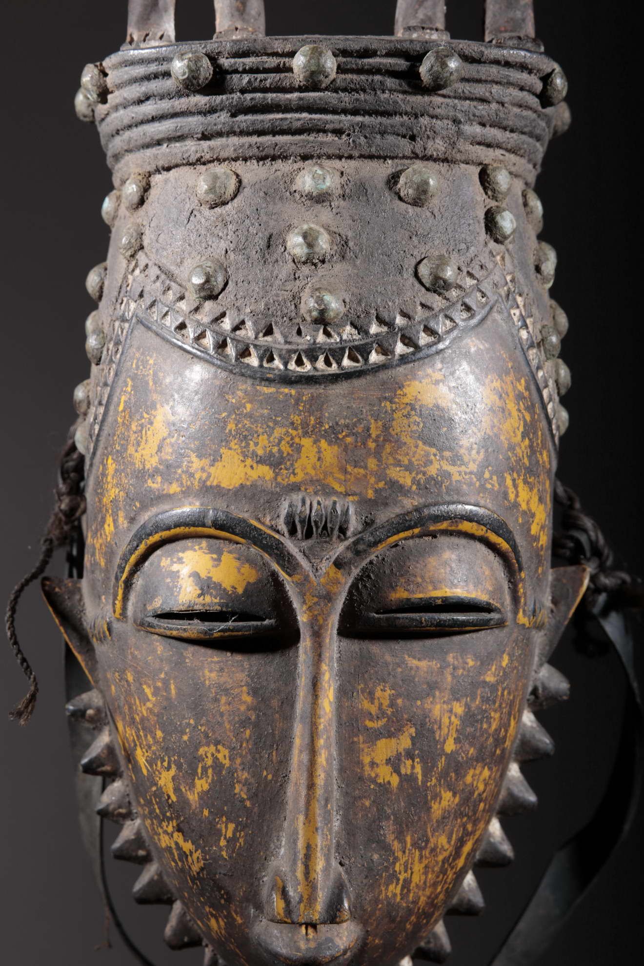 Les Yaouré sont divisés en trois groupes principaux rassemblant chacun une vingtaine de villages. Chaque village est dirigé par un chef, assisté par un conseil des anciens. La langue, la religion, la culture et l'art yaouré sont influencés par leurs puissants voisins les Baoulé et les Gouro. Cependant, ils possèdent un grand sens identitaire et ont créé un art caractéristique et rafiné.Chez les Yohouré ou Yaouré, les masques africains servent à influencer les forces surnaturelles 'YU' responsables des maux des hommes mais aussi de leur prospérité. Les masques dans cette ethnie sont interdits aux femmes, ils sont dansés le plus souvent pour rétablir le déséquilibre social et politique que peut entrainer le décès. Les Yohourés ont influencé les Baoulés en ce qui concerne l'esthétique des masques et ont été eux-mêmes influencés par le style Gouro. Sur ce masque le nez et la chevelure rappellent les masques Gu des Gouro. La chevelure est disposée en trois demi-cercles très travaillés : cela est le signe chez les Yohouré de pouvoir et de richesse*. Les masques de cette ethnie dégagent une sérénité, une douceur qui sont dûs à des conditions de vie relativement clémentes (climat et agriculture favorisés par la région lagunaire boisée qu'ils occupent). Les masques Yohouré sont souvent entourés d'une bordure dentelée caractéristique qui structure le masque et souligne l'harmonie générale des formes.