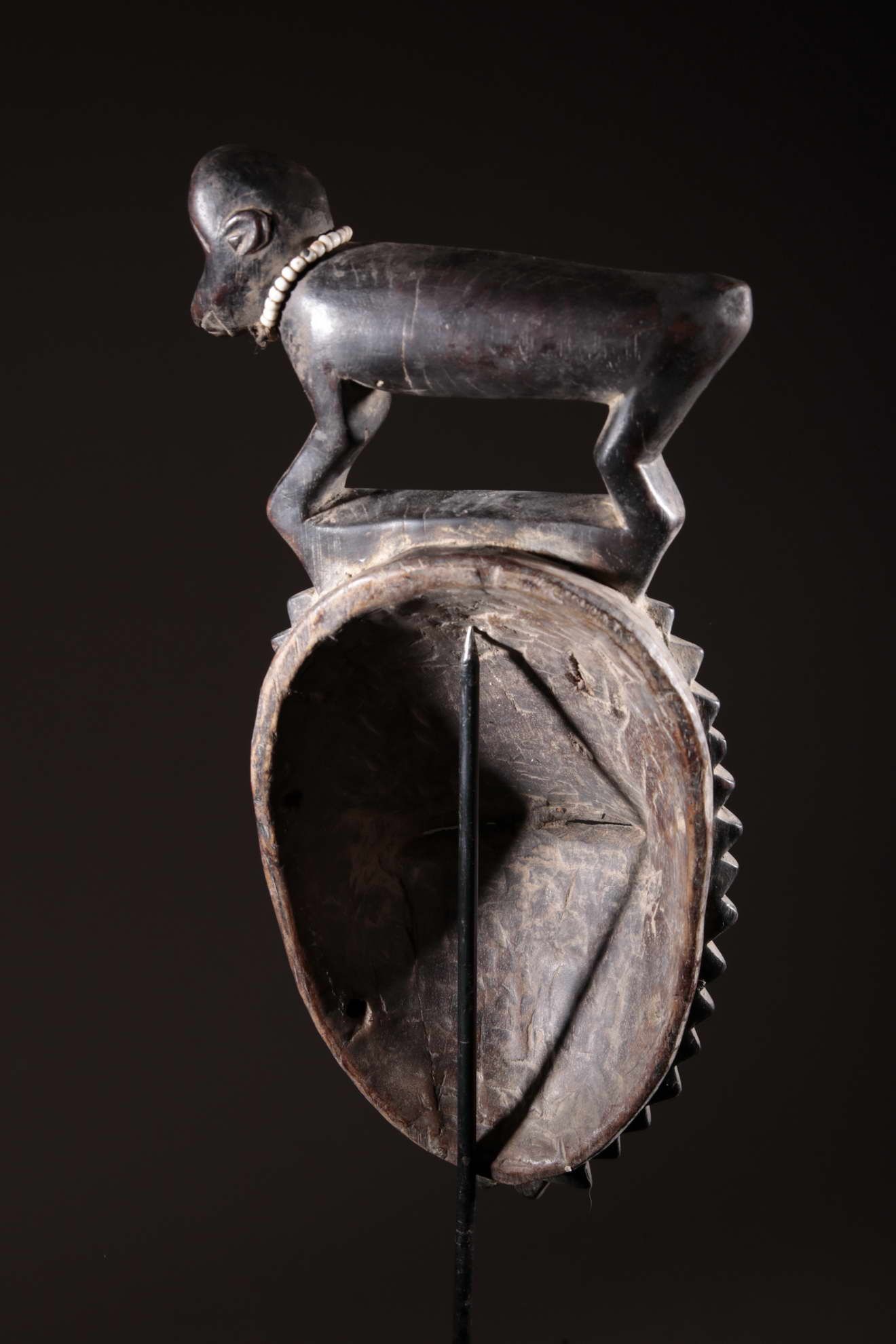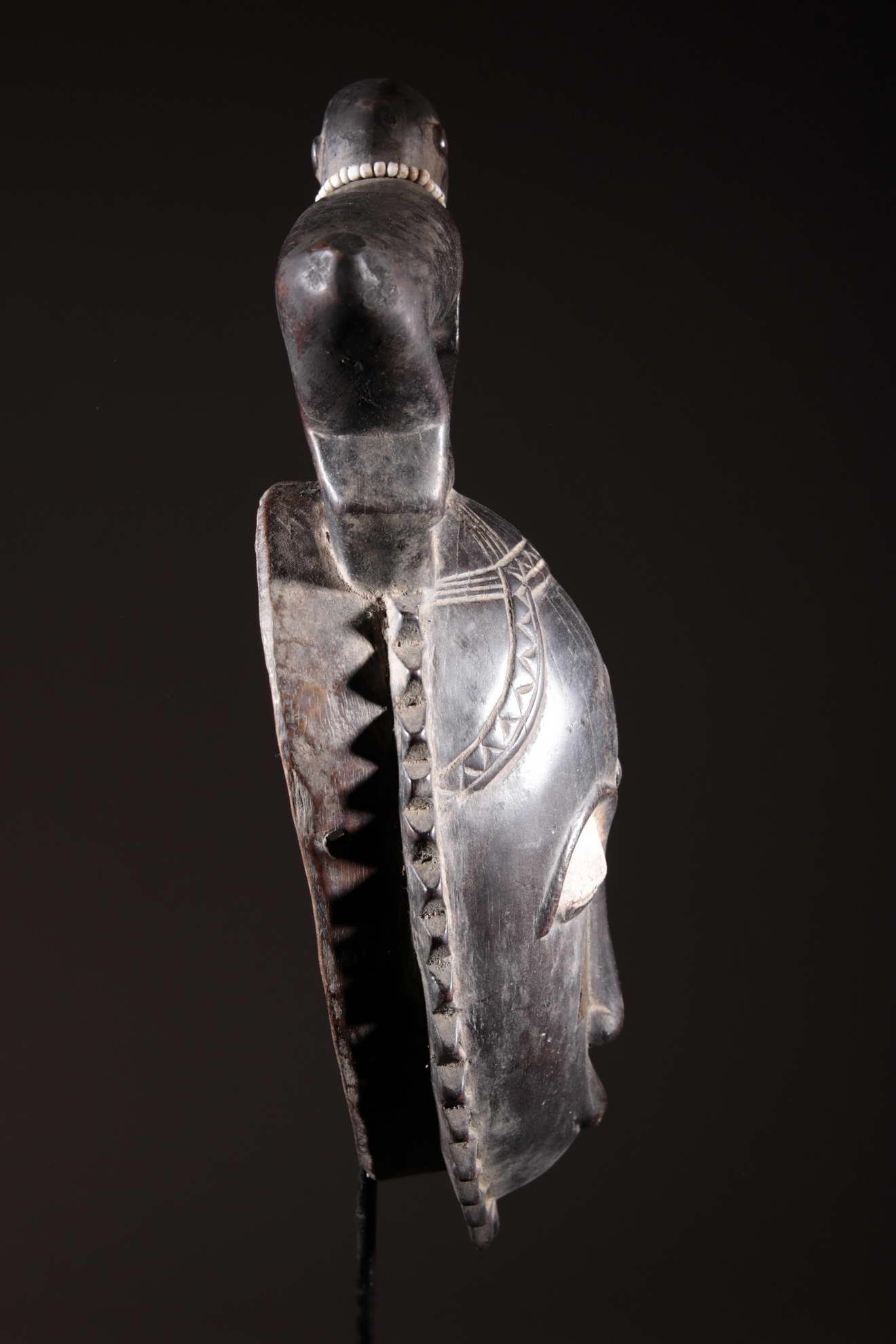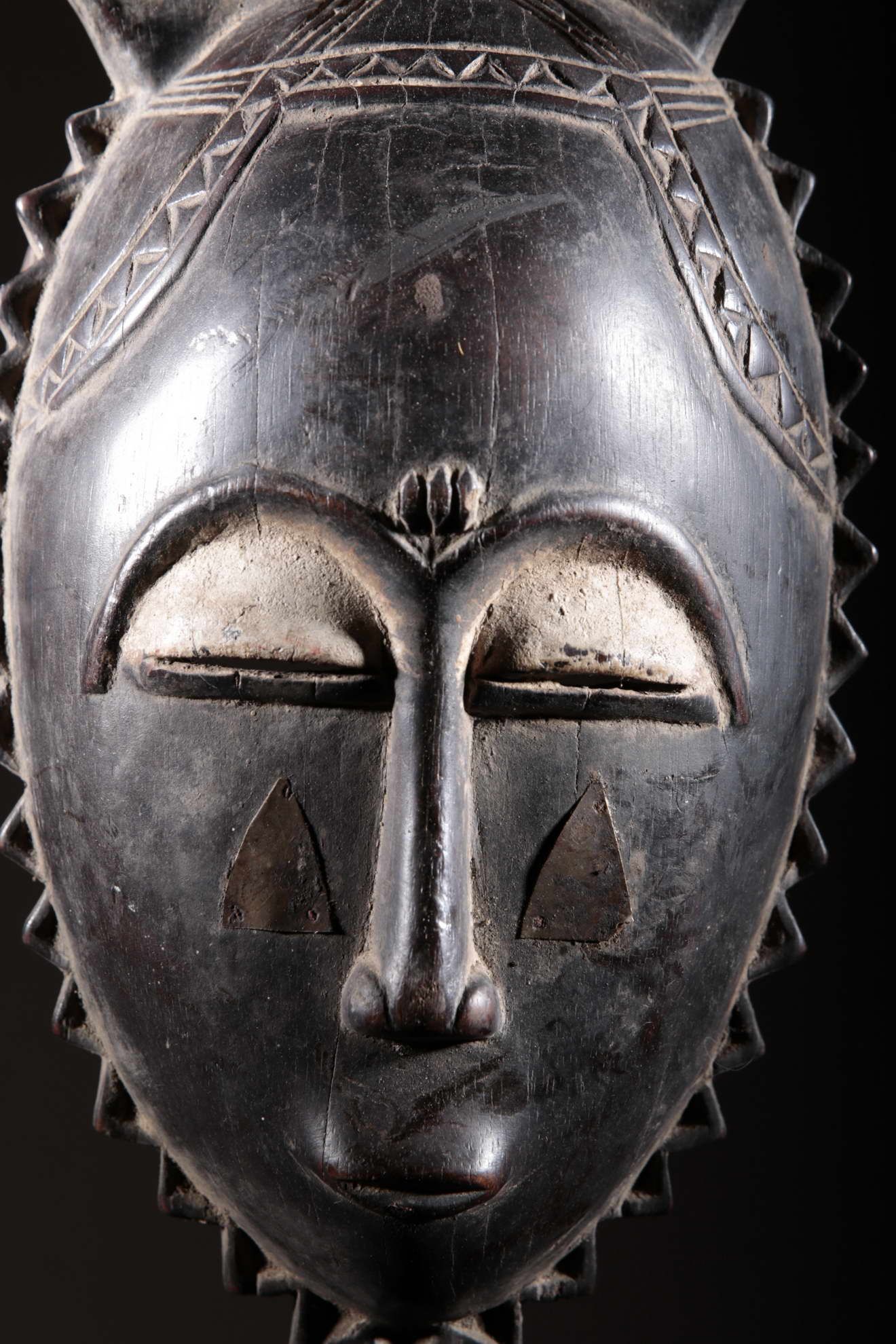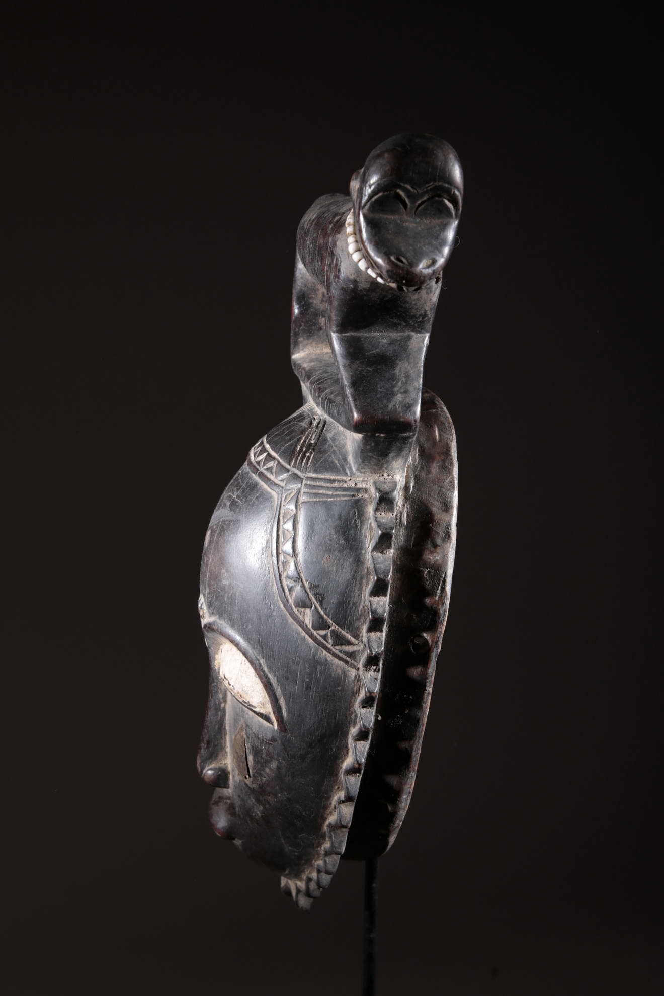 Les Yaouré sont divisés en trois groupes principaux rassemblant chacun une vingtaine de villages. Chaque village est dirigé par un chef, assisté par un conseil des anciens. La langue, la religion, la culture et l'art yaouré sont influencés par leurs puissants voisins les Baoulé et les Gouro. Cependant, ils possèdent un grand sens identitaire et ont créé un art caractéristique et rafiné.Chez les Yohouré ou Yaouré, les masques africains servent à influencer les forces surnaturelles 'YU' responsables des maux des hommes mais aussi de leur prospérité. Les masques dans cette ethnie sont interdits aux femmes, ils sont dansés le plus souvent pour rétablir le déséquilibre social et politique que peut entrainer le décès. Les Yohourés ont influencé les Baoulés en ce qui concerne l'esthétique des masques et ont été eux-mêmes influencés par le style Gouro. Sur ce masque le nez et la chevelure rappellent les masques Gu des Gouro. La chevelure est disposée en trois demi-cercles très travaillés : cela est le signe chez les Yohouré de pouvoir et de richesse*. Les masques de cette ethnie dégagent une sérénité, une douceur qui sont dûs à des conditions de vie relativement clémentes (climat et agriculture favorisés par la région lagunaire boisée qu'ils occupent). Les masques Yohouré sont souvent entourés d'une bordure dentelée caractéristique qui structure le masque et souligne l'harmonie générale des formes.