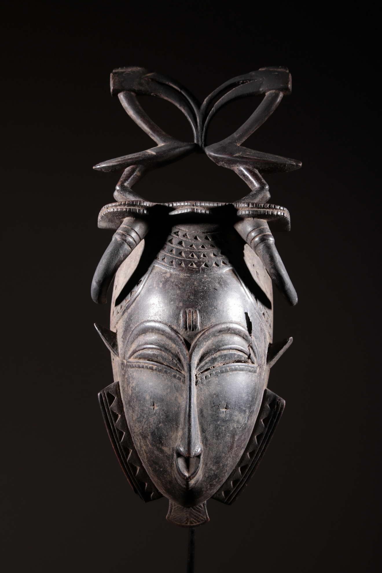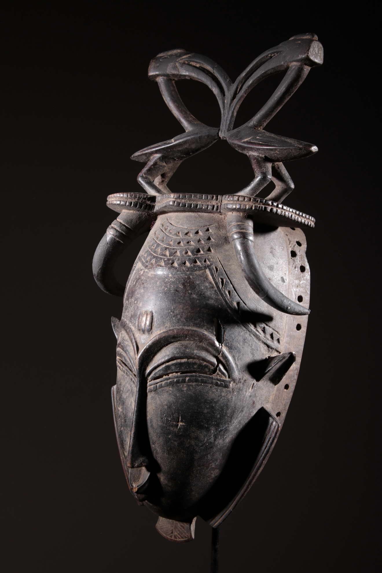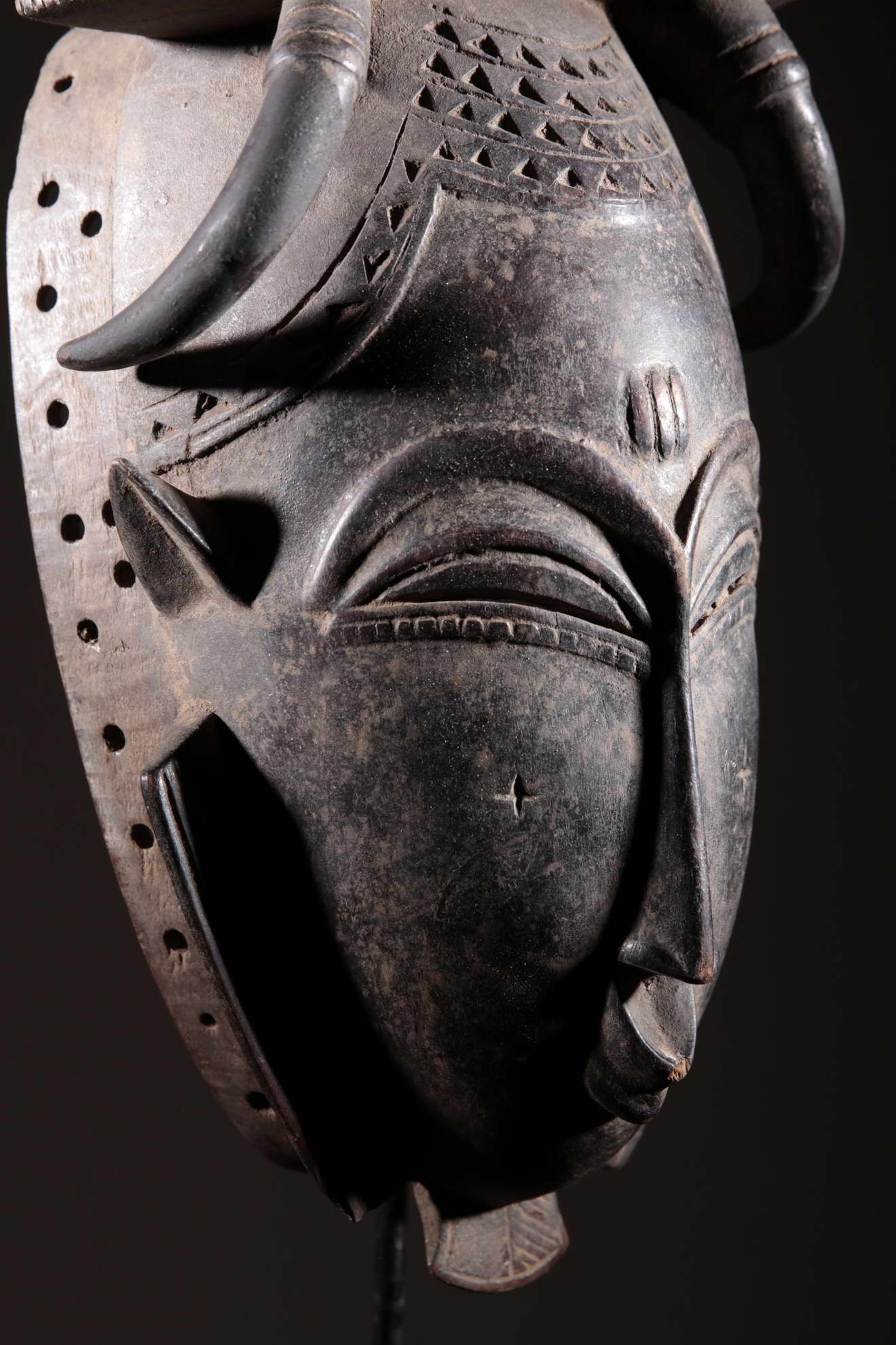 Les Yaouré sont divisés en trois groupes principaux rassemblant chacun une vingtaine de villages. Chaque village est dirigé par un chef, assisté par un conseil des anciens. La langue, la religion, la culture et l'art yaouré sont influencés par leurs puissants voisins les Baoulé et les Gouro. Cependant, ils possèdent un grand sens identitaire et ont créé un art caractéristique et rafiné.Chez les Yohouré ou Yaouré, les masques africains servent à influencer les forces surnaturelles 'YU' responsables des maux des hommes mais aussi de leur prospérité. Les masques dans cette ethnie sont interdits aux femmes, ils sont dansés le plus souvent pour rétablir le déséquilibre social et politique que peut entrainer le décès. Les Yohourés ont influencé les Baoulés en ce qui concerne l'esthétique des masques et ont été eux-mêmes influencés par le style Gouro. Sur ce masque le nez et la chevelure rappellent les masques Gu des Gouro. La chevelure est disposée en trois demi-cercles très travaillés : cela est le signe chez les Yohouré de pouvoir et de richesse*. Les masques de cette ethnie dégagent une sérénité, une douceur qui sont dûs à des conditions de vie relativement clémentes (climat et agriculture favorisés par la région lagunaire boisée qu'ils occupent). Les masques Yohouré sont souvent entourés d'une bordure dentelée caractéristique qui structure le masque et souligne l'harmonie générale des formes.