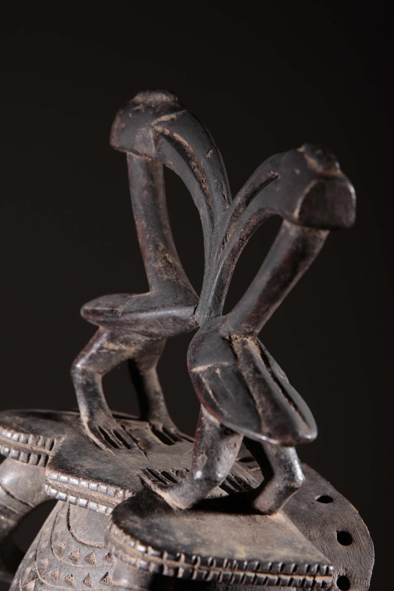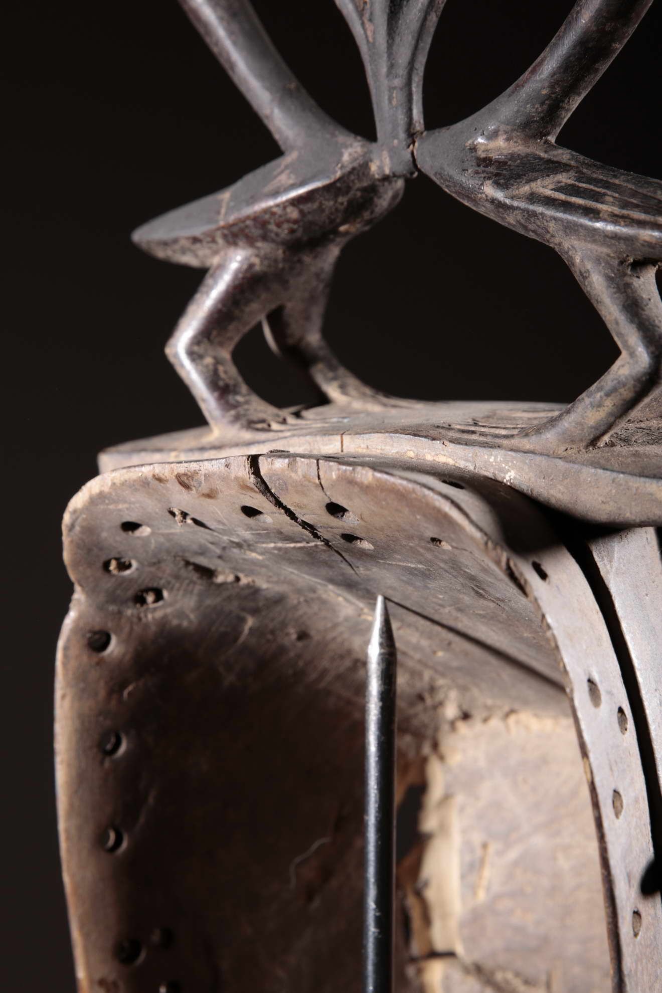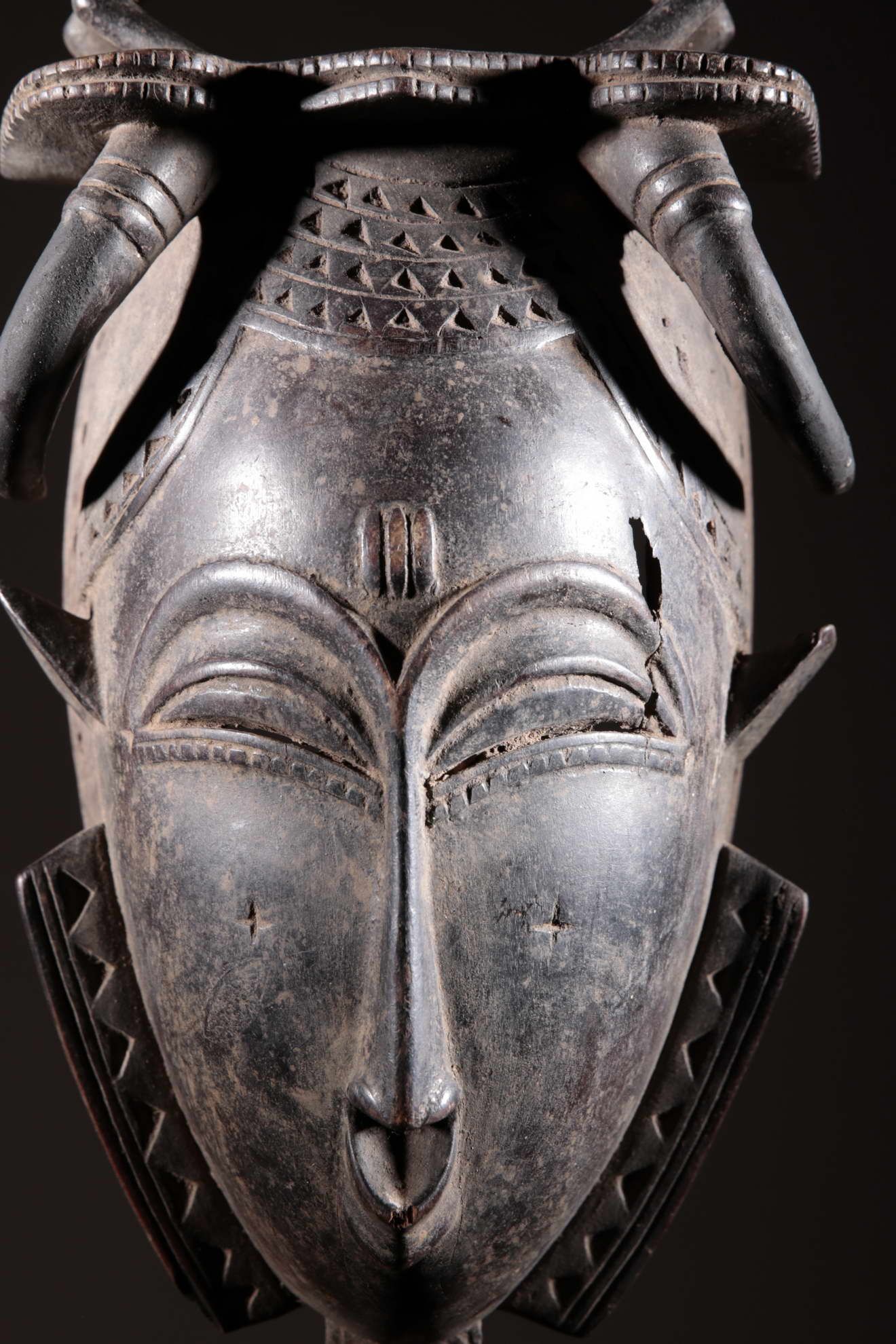 Les Yaouré sont divisés en trois groupes principaux rassemblant chacun une vingtaine de villages. Chaque village est dirigé par un chef, assisté par un conseil des anciens. La langue, la religion, la culture et l'art yaouré sont influencés par leurs puissants voisins les Baoulé et les Gouro. Cependant, ils possèdent un grand sens identitaire et ont créé un art caractéristique et rafiné.Chez les Yohouré ou Yaouré, les masques africains servent à influencer les forces surnaturelles 'YU' responsables des maux des hommes mais aussi de leur prospérité. Les masques dans cette ethnie sont interdits aux femmes, ils sont dansés le plus souvent pour rétablir le déséquilibre social et politique que peut entrainer le décès. Les Yohourés ont influencé les Baoulés en ce qui concerne l'esthétique des masques et ont été eux-mêmes influencés par le style Gouro. Sur ce masque le nez et la chevelure rappellent les masques Gu des Gouro. La chevelure est disposée en trois demi-cercles très travaillés : cela est le signe chez les Yohouré de pouvoir et de richesse*. Les masques de cette ethnie dégagent une sérénité, une douceur qui sont dûs à des conditions de vie relativement clémentes (climat et agriculture favorisés par la région lagunaire boisée qu'ils occupent). Les masques Yohouré sont souvent entourés d'une bordure dentelée caractéristique qui structure le masque et souligne l'harmonie générale des formes.