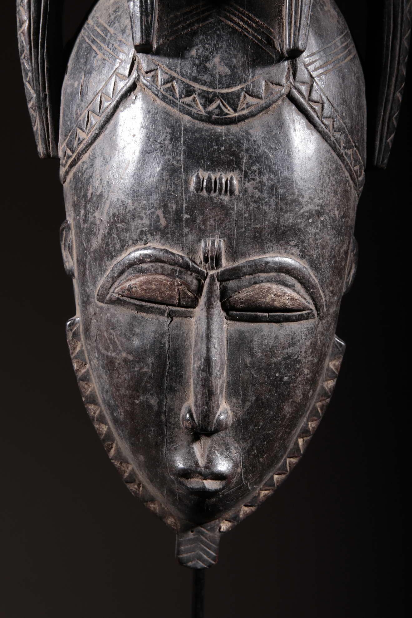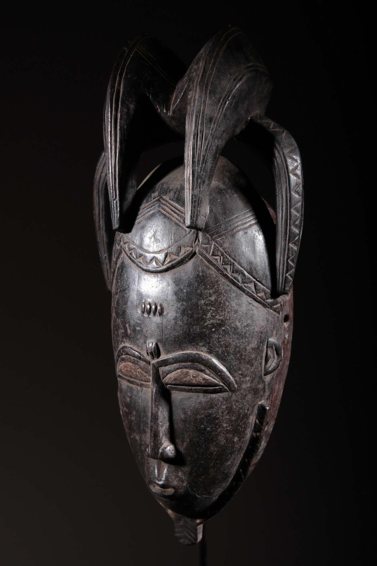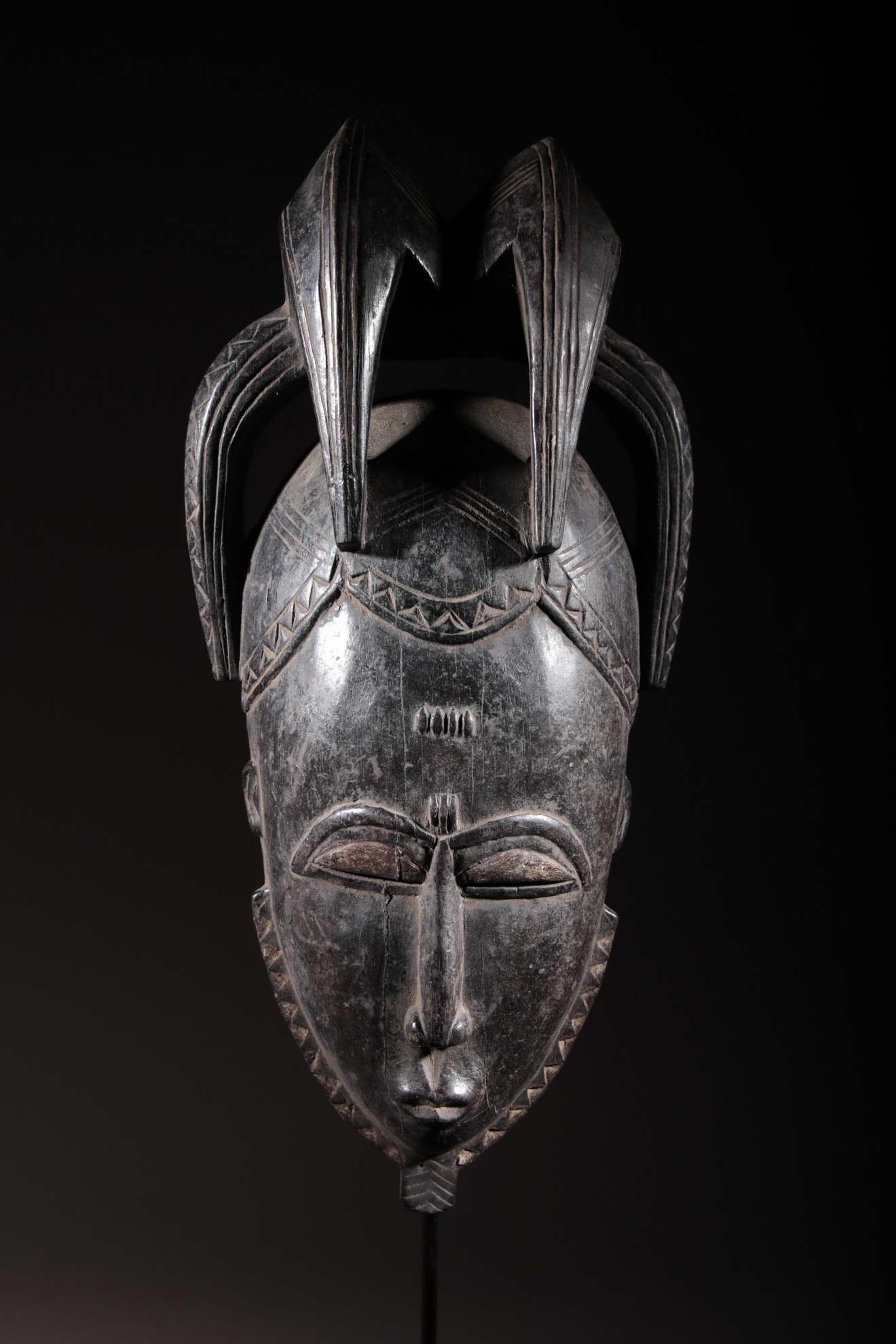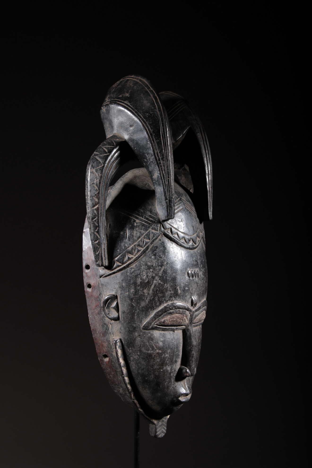 Les Yaouré sont divisés en trois groupes principaux rassemblant chacun une vingtaine de villages. Chaque village est dirigé par un chef, assisté par un conseil des anciens. La langue, la religion, la culture et l'art yaouré sont influencés par leurs puissants voisins les Baoulé et les Gouro. Cependant, ils possèdent un grand sens identitaire et ont créé un art caractéristique et rafiné.Chez les Yohouré ou Yaouré, les masques africains servent à influencer les forces surnaturelles 'YU' responsables des maux des hommes mais aussi de leur prospérité. Les masques dans cette ethnie sont interdits aux femmes, ils sont dansés le plus souvent pour rétablir le déséquilibre social et politique que peut entrainer le décès. Les Yohourés ont influencé les Baoulés en ce qui concerne l'esthétique des masques et ont été eux-mêmes influencés par le style Gouro. Sur ce masque le nez et la chevelure rappellent les masques Gu des Gouro. La chevelure est disposée en trois demi-cercles très travaillés : cela est le signe chez les Yohouré de pouvoir et de richesse*. Les masques de cette ethnie dégagent une sérénité, une douceur qui sont dûs à des conditions de vie relativement clémentes (climat et agriculture favorisés par la région lagunaire boisée qu'ils occupent). Les masques Yohouré sont souvent entourés d'une bordure dentelée caractéristique qui structure le masque et souligne l'harmonie générale des formes.