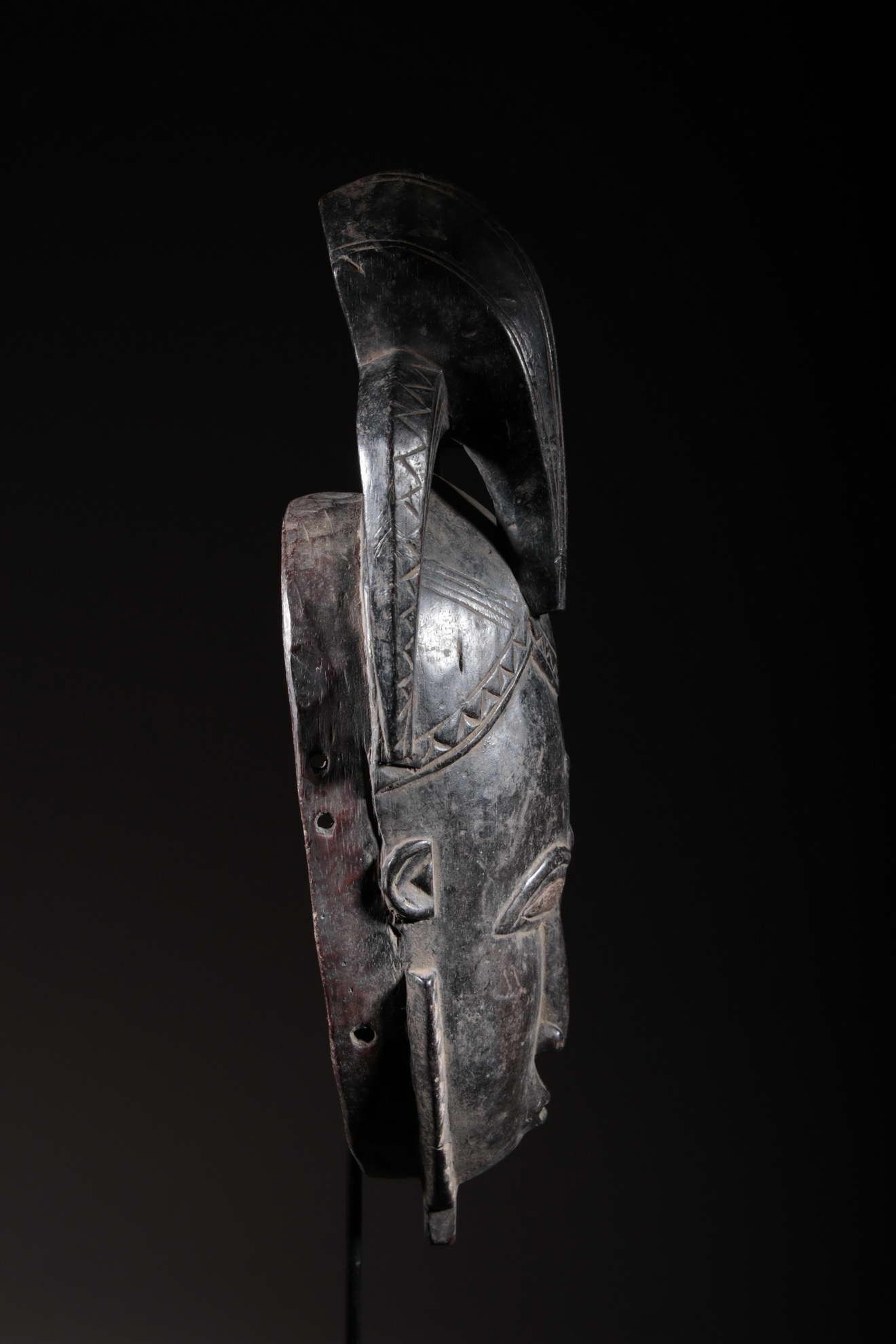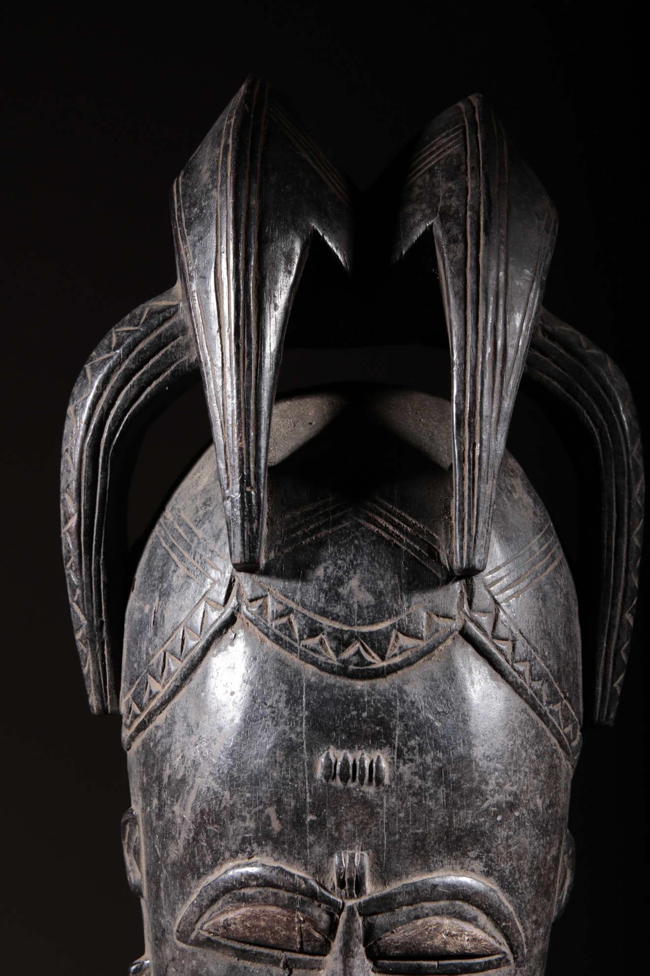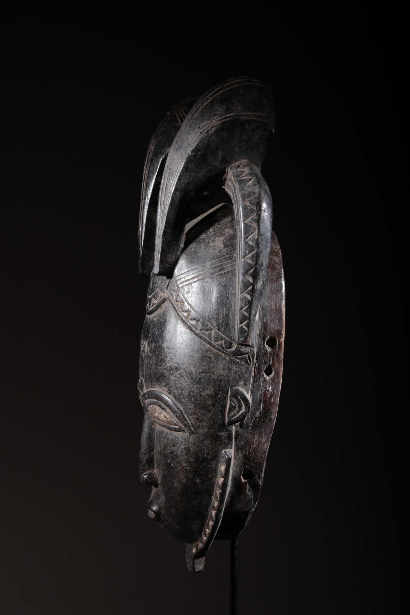 Les Yaouré sont divisés en trois groupes principaux rassemblant chacun une vingtaine de villages. Chaque village est dirigé par un chef, assisté par un conseil des anciens. La langue, la religion, la culture et l'art yaouré sont influencés par leurs puissants voisins les Baoulé et les Gouro. Cependant, ils possèdent un grand sens identitaire et ont créé un art caractéristique et rafiné.Chez les Yohouré ou Yaouré, les masques africains servent à influencer les forces surnaturelles 'YU' responsables des maux des hommes mais aussi de leur prospérité. Les masques dans cette ethnie sont interdits aux femmes, ils sont dansés le plus souvent pour rétablir le déséquilibre social et politique que peut entrainer le décès. Les Yohourés ont influencé les Baoulés en ce qui concerne l'esthétique des masques et ont été eux-mêmes influencés par le style Gouro. Sur ce masque le nez et la chevelure rappellent les masques Gu des Gouro. La chevelure est disposée en trois demi-cercles très travaillés : cela est le signe chez les Yohouré de pouvoir et de richesse*. Les masques de cette ethnie dégagent une sérénité, une douceur qui sont dûs à des conditions de vie relativement clémentes (climat et agriculture favorisés par la région lagunaire boisée qu'ils occupent). Les masques Yohouré sont souvent entourés d'une bordure dentelée caractéristique qui structure le masque et souligne l'harmonie générale des formes.