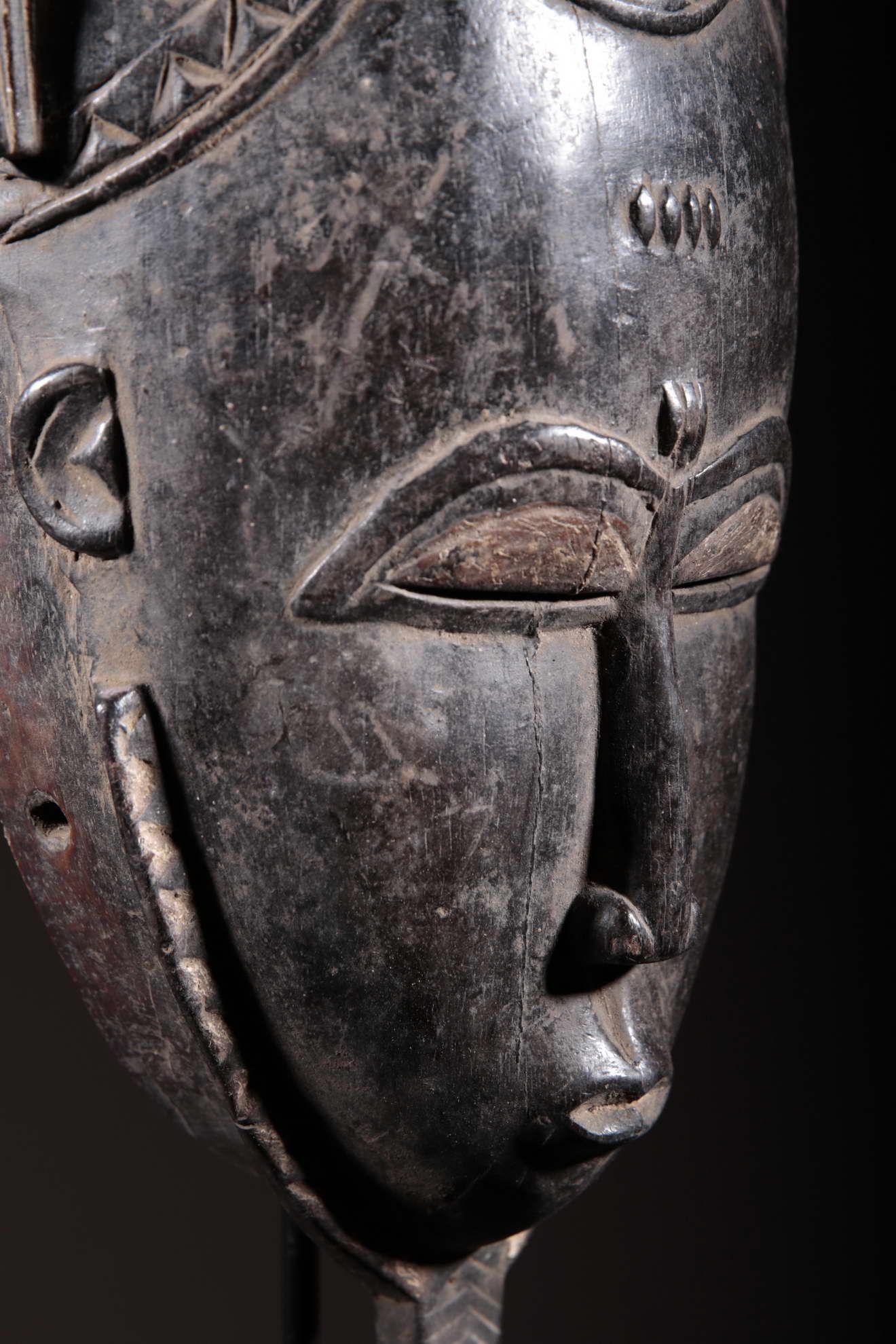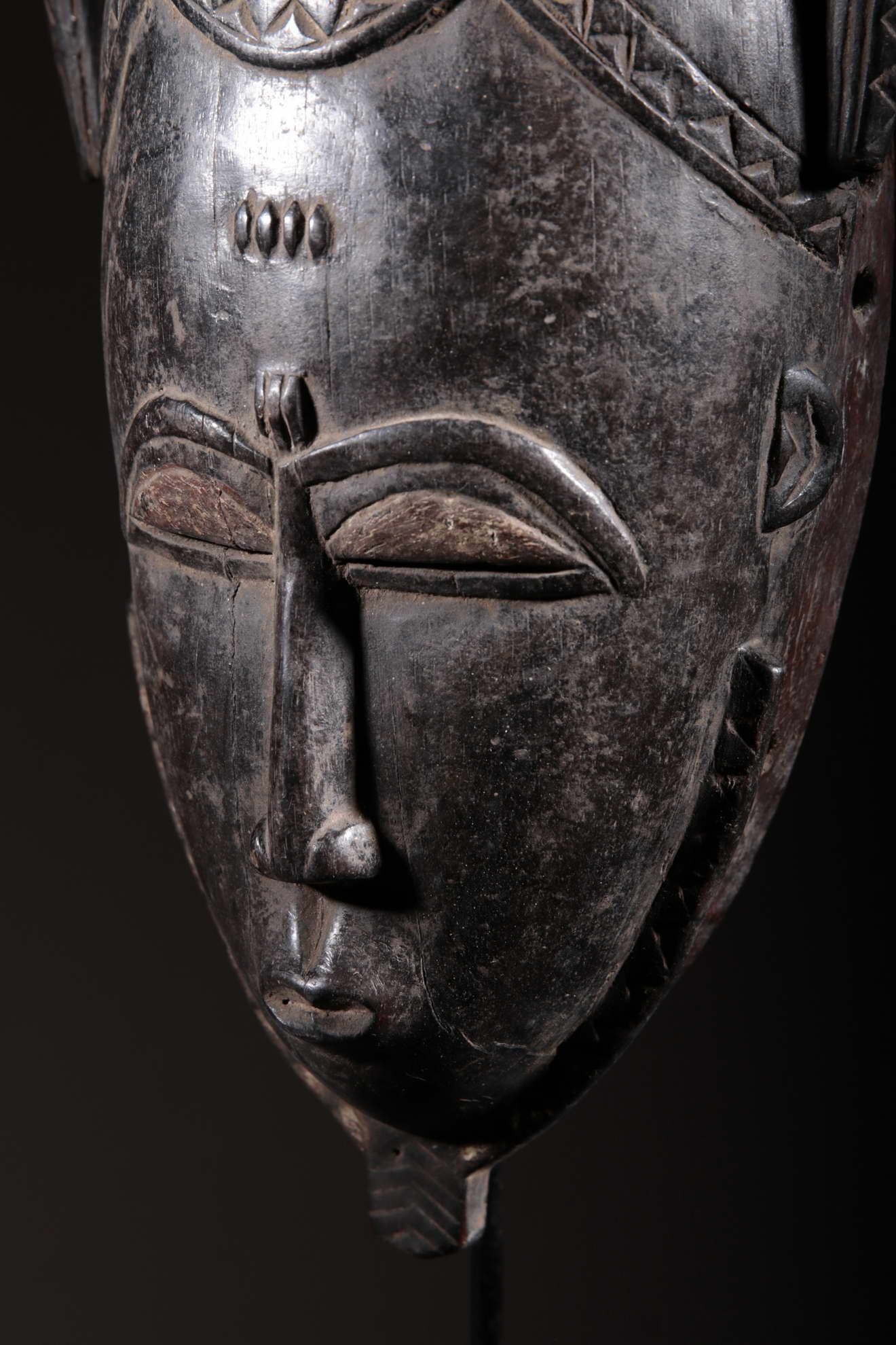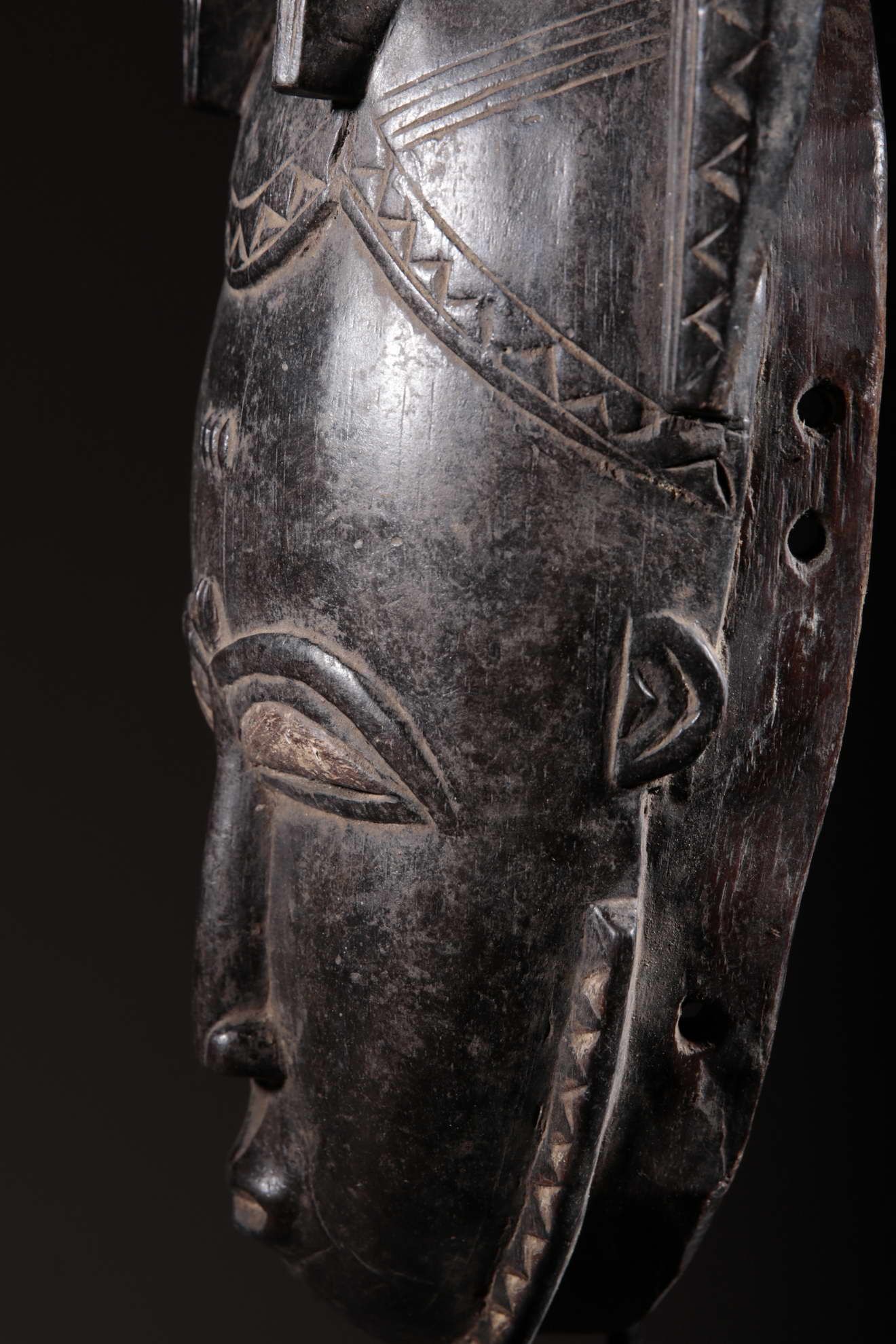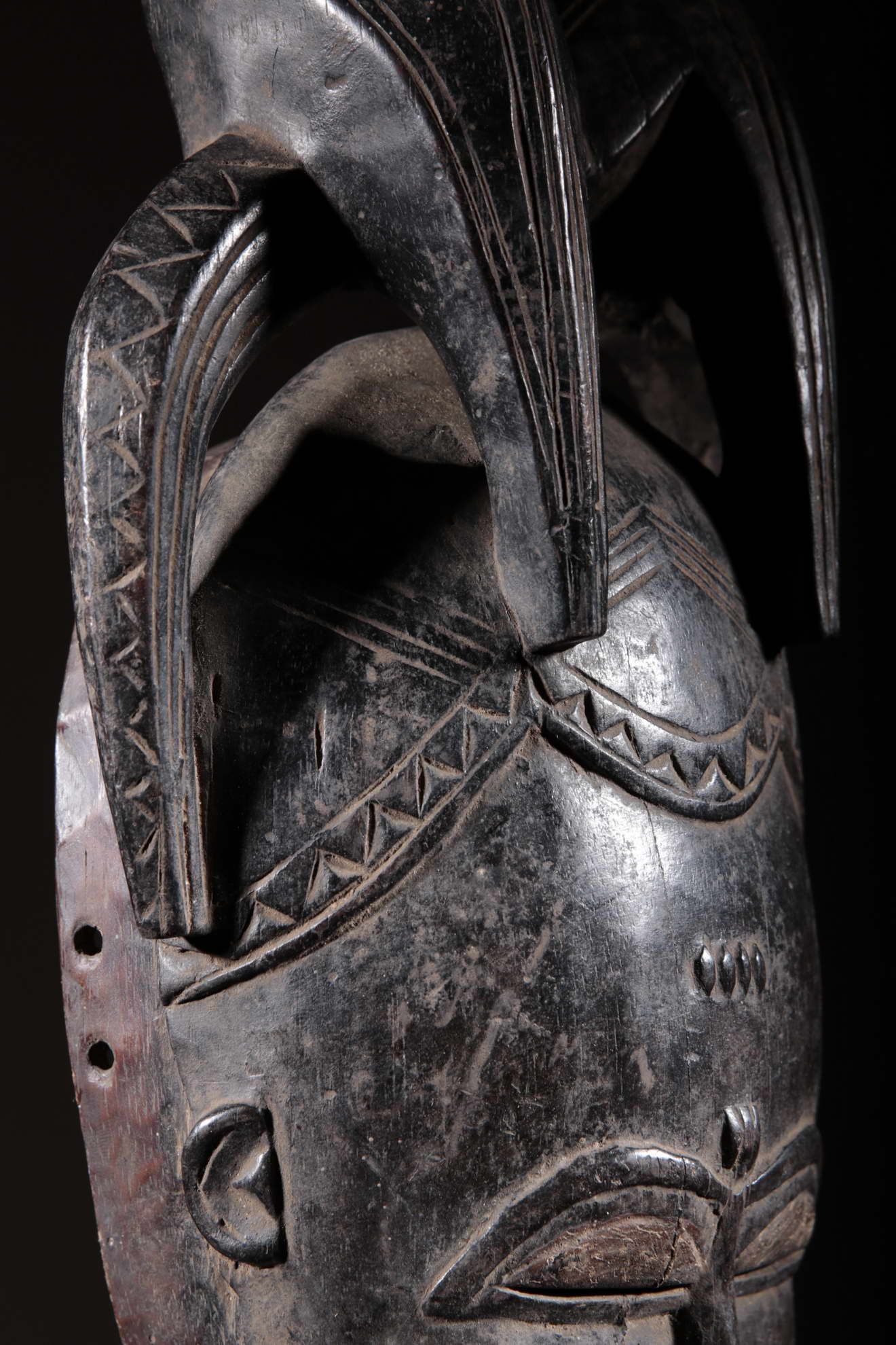 Les Yaouré sont divisés en trois groupes principaux rassemblant chacun une vingtaine de villages. Chaque village est dirigé par un chef, assisté par un conseil des anciens. La langue, la religion, la culture et l'art yaouré sont influencés par leurs puissants voisins les Baoulé et les Gouro. Cependant, ils possèdent un grand sens identitaire et ont créé un art caractéristique et rafiné.Chez les Yohouré ou Yaouré, les masques africains servent à influencer les forces surnaturelles 'YU' responsables des maux des hommes mais aussi de leur prospérité. Les masques dans cette ethnie sont interdits aux femmes, ils sont dansés le plus souvent pour rétablir le déséquilibre social et politique que peut entrainer le décès. Les Yohourés ont influencé les Baoulés en ce qui concerne l'esthétique des masques et ont été eux-mêmes influencés par le style Gouro. Sur ce masque le nez et la chevelure rappellent les masques Gu des Gouro. La chevelure est disposée en trois demi-cercles très travaillés : cela est le signe chez les Yohouré de pouvoir et de richesse*. Les masques de cette ethnie dégagent une sérénité, une douceur qui sont dûs à des conditions de vie relativement clémentes (climat et agriculture favorisés par la région lagunaire boisée qu'ils occupent). Les masques Yohouré sont souvent entourés d'une bordure dentelée caractéristique qui structure le masque et souligne l'harmonie générale des formes.