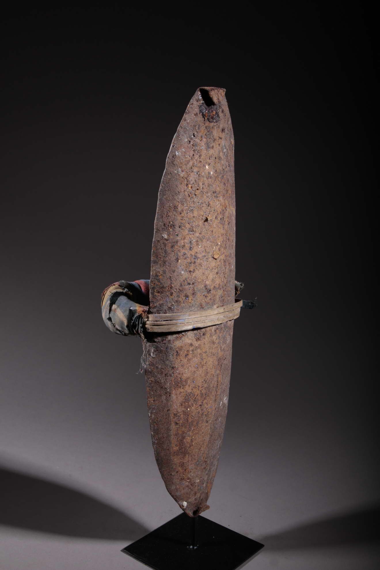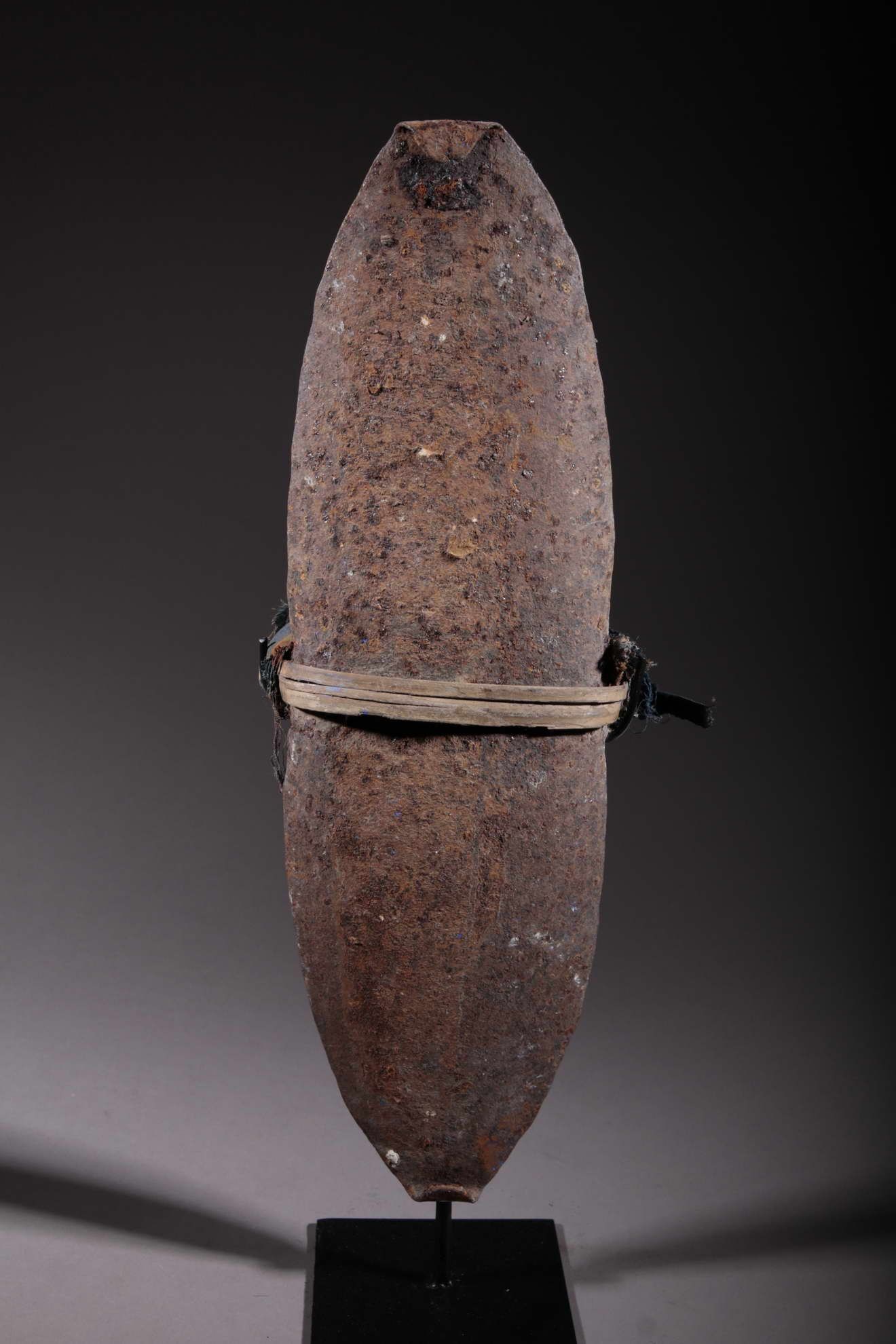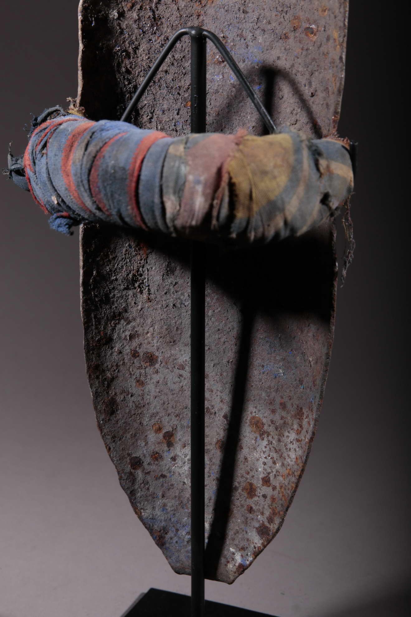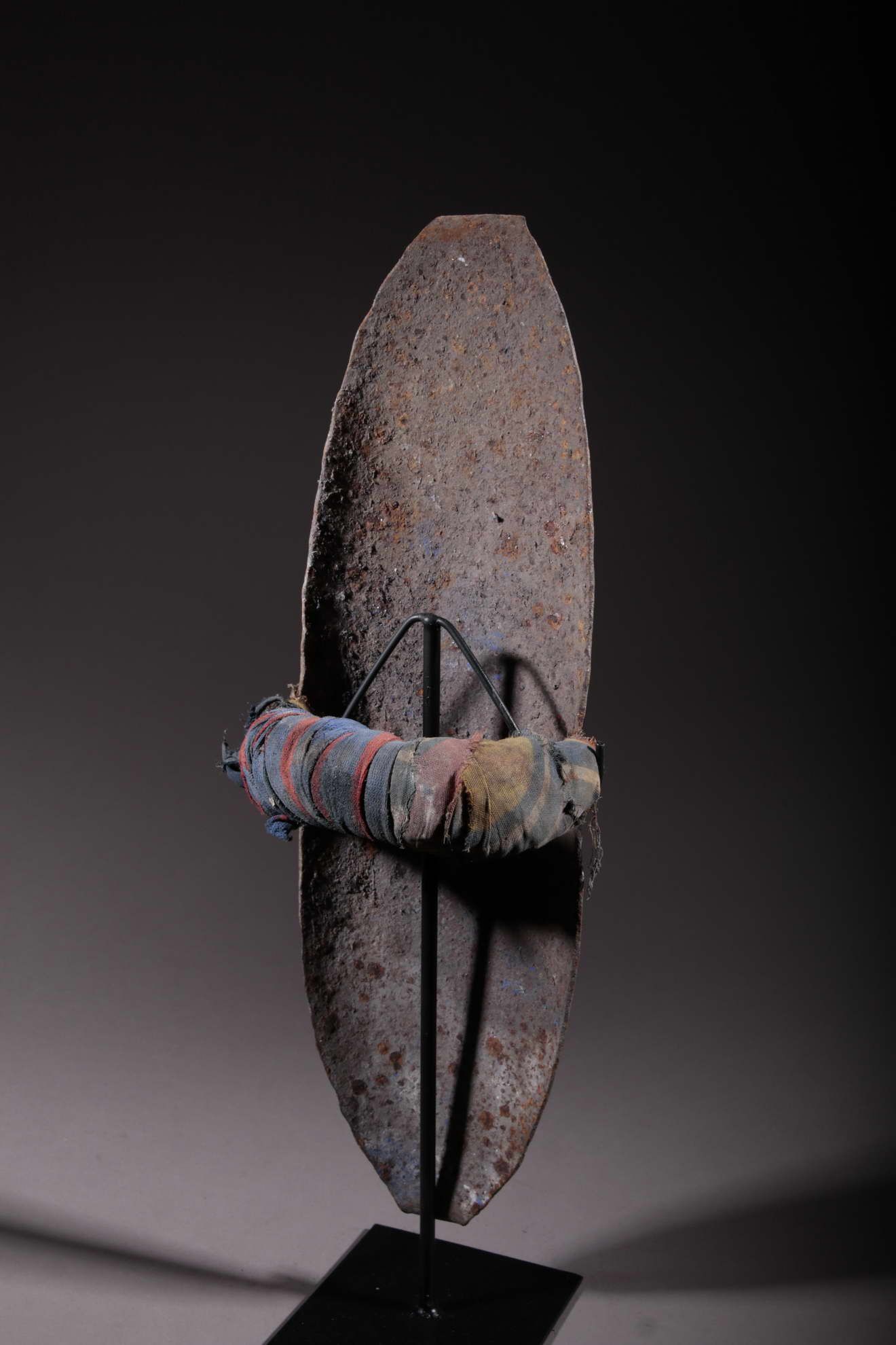 Ce type d'objet présent au Nord Togo est considéré comme un objet de prestige utilisé lors de danses que comme un bouclier de bras.