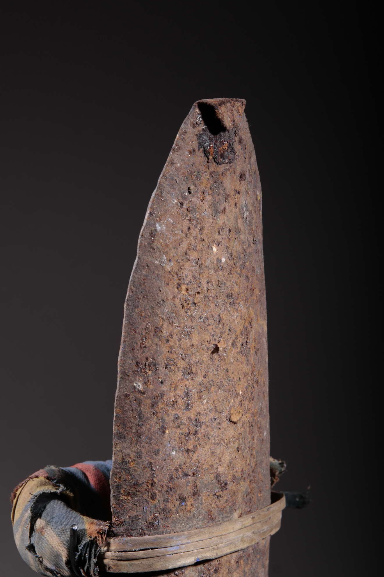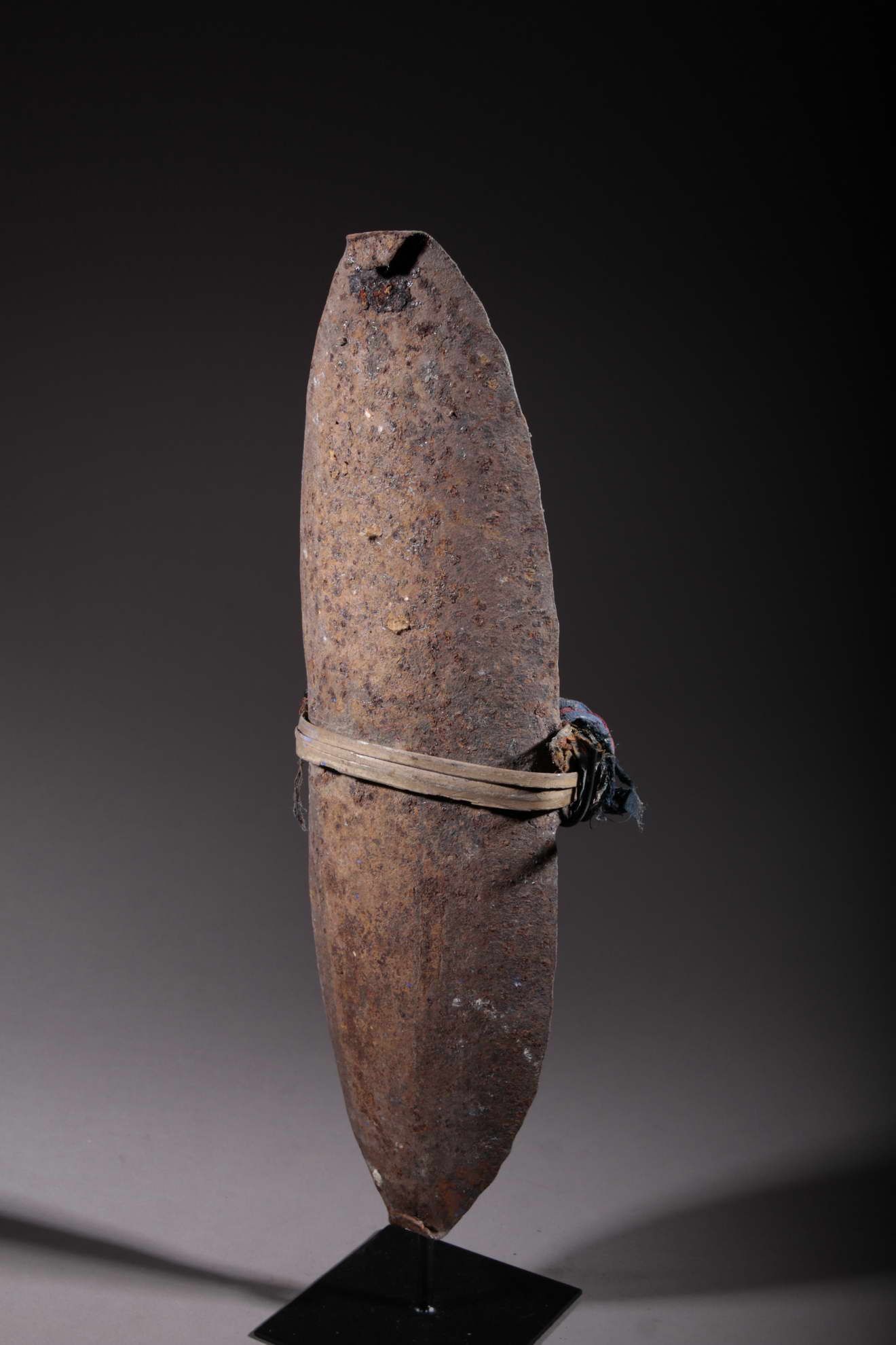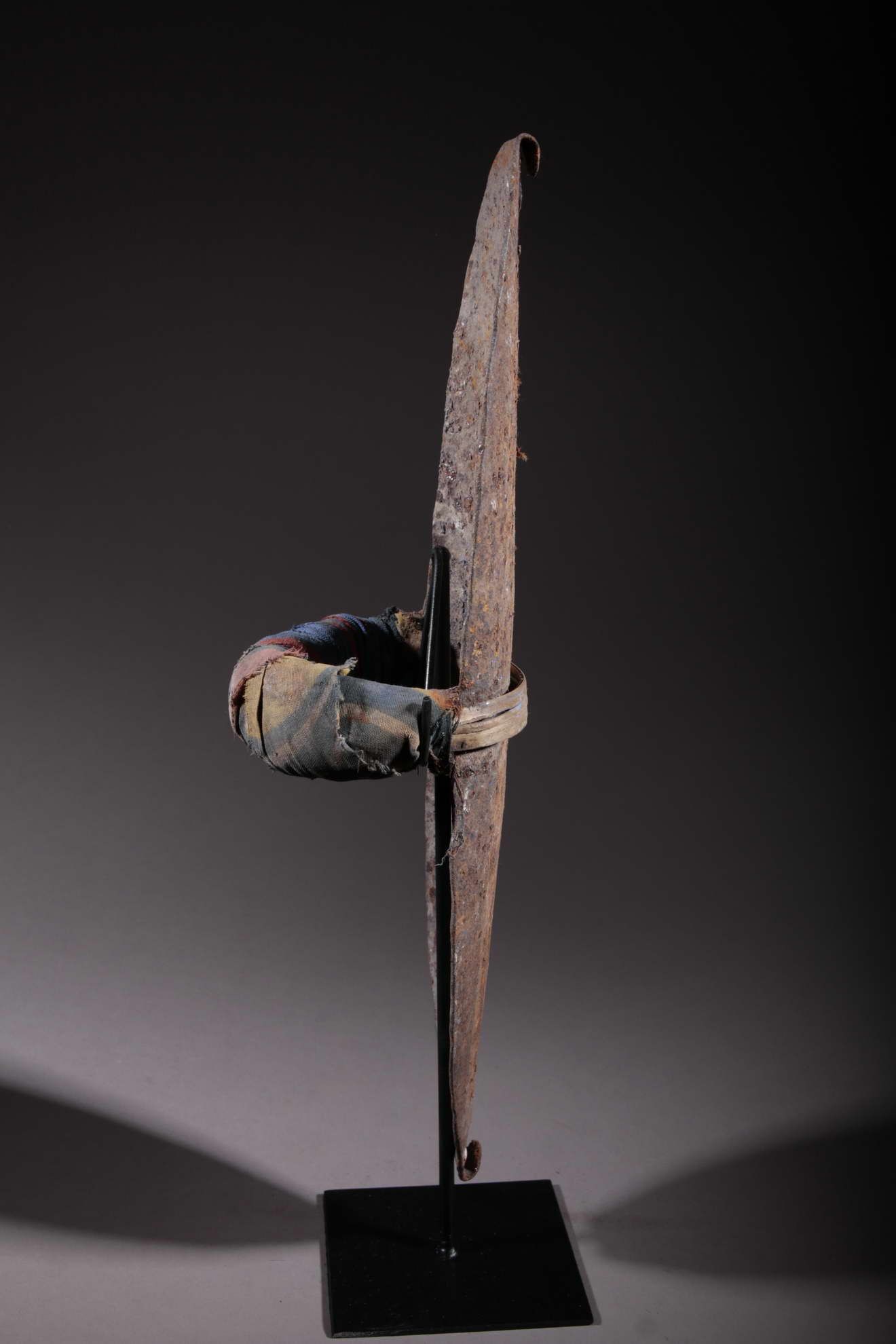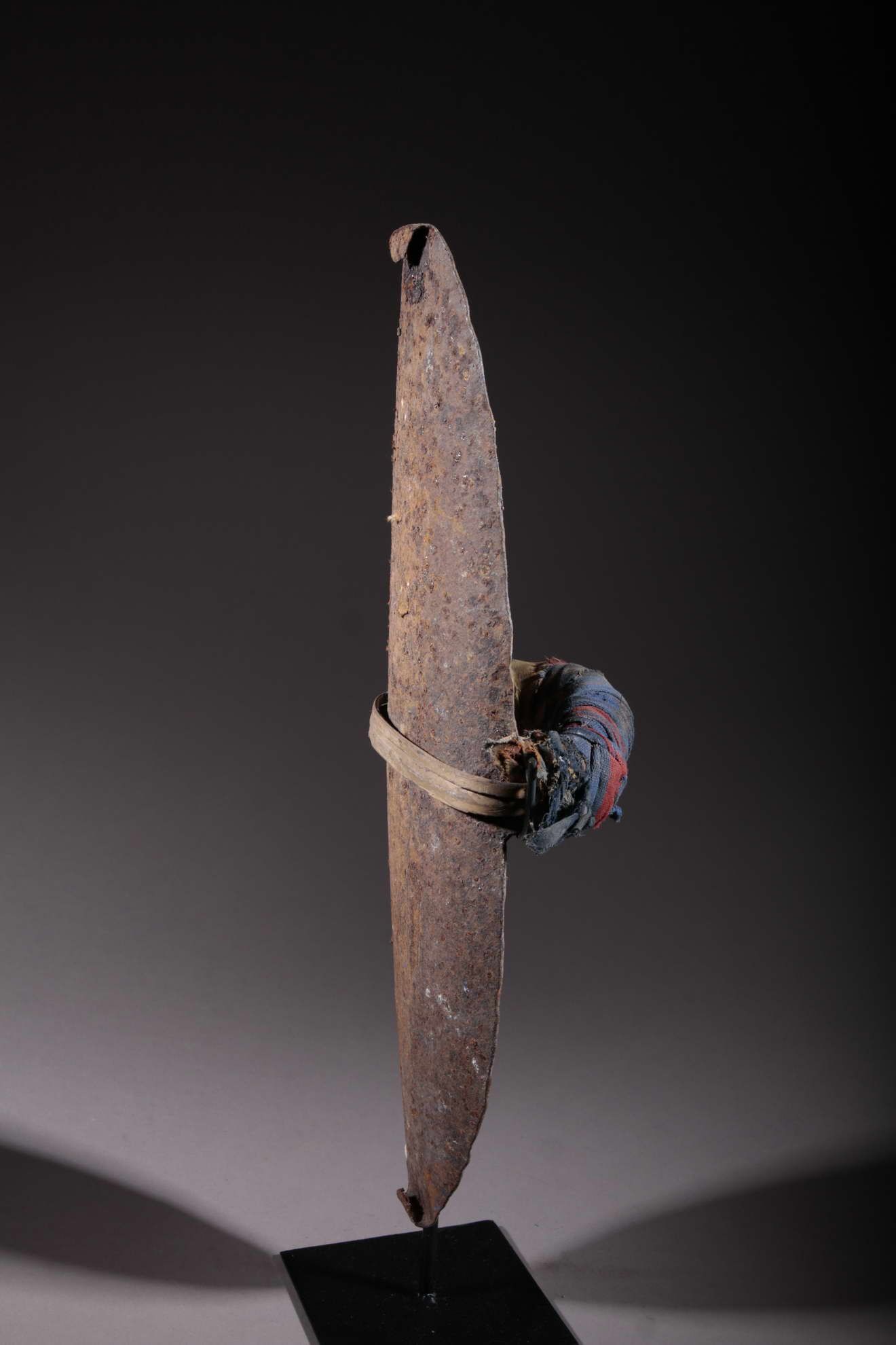 Ce type d'objet présent au Nord Togo est considéré comme un objet de prestige utilisé lors de danses que comme un bouclier de bras.