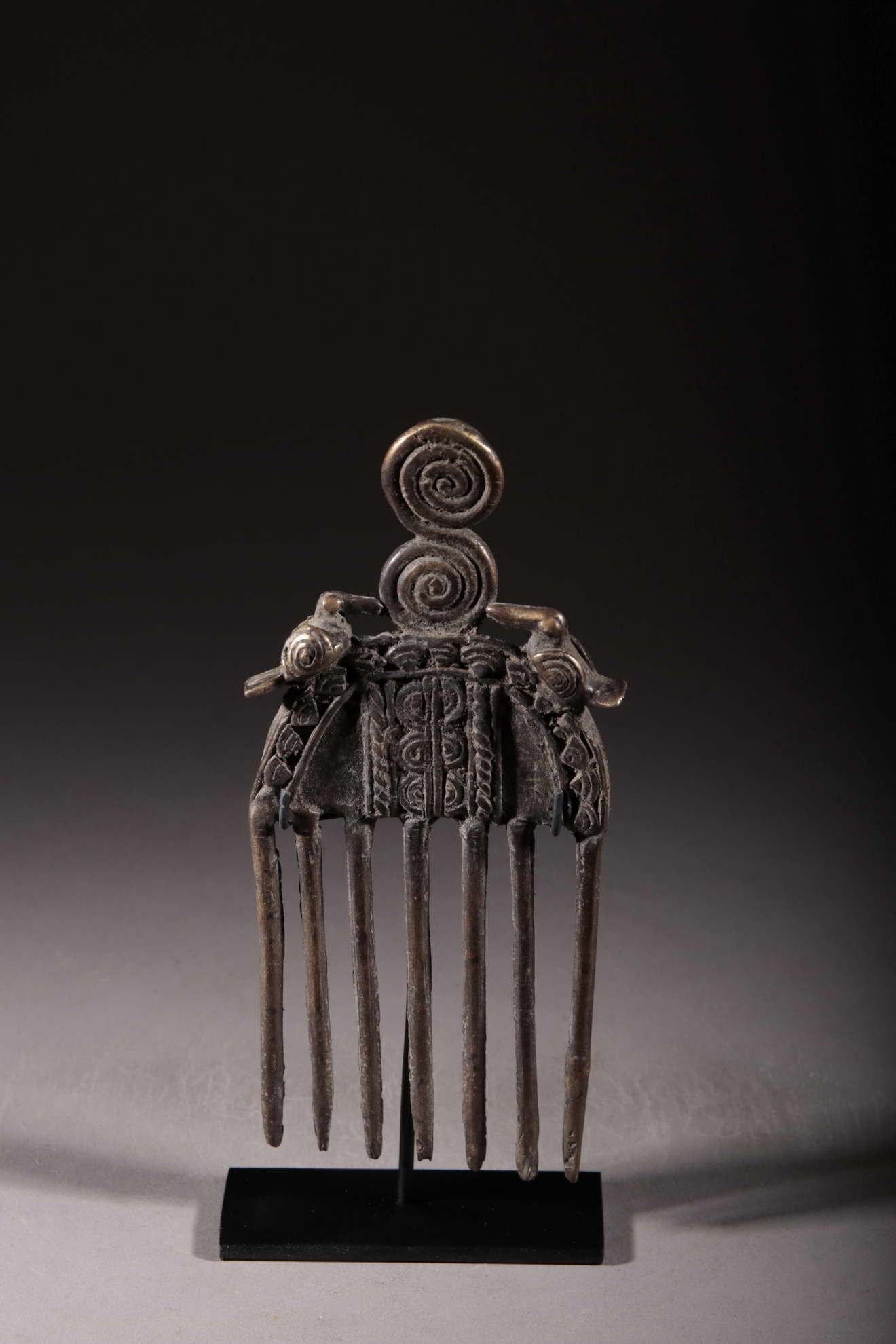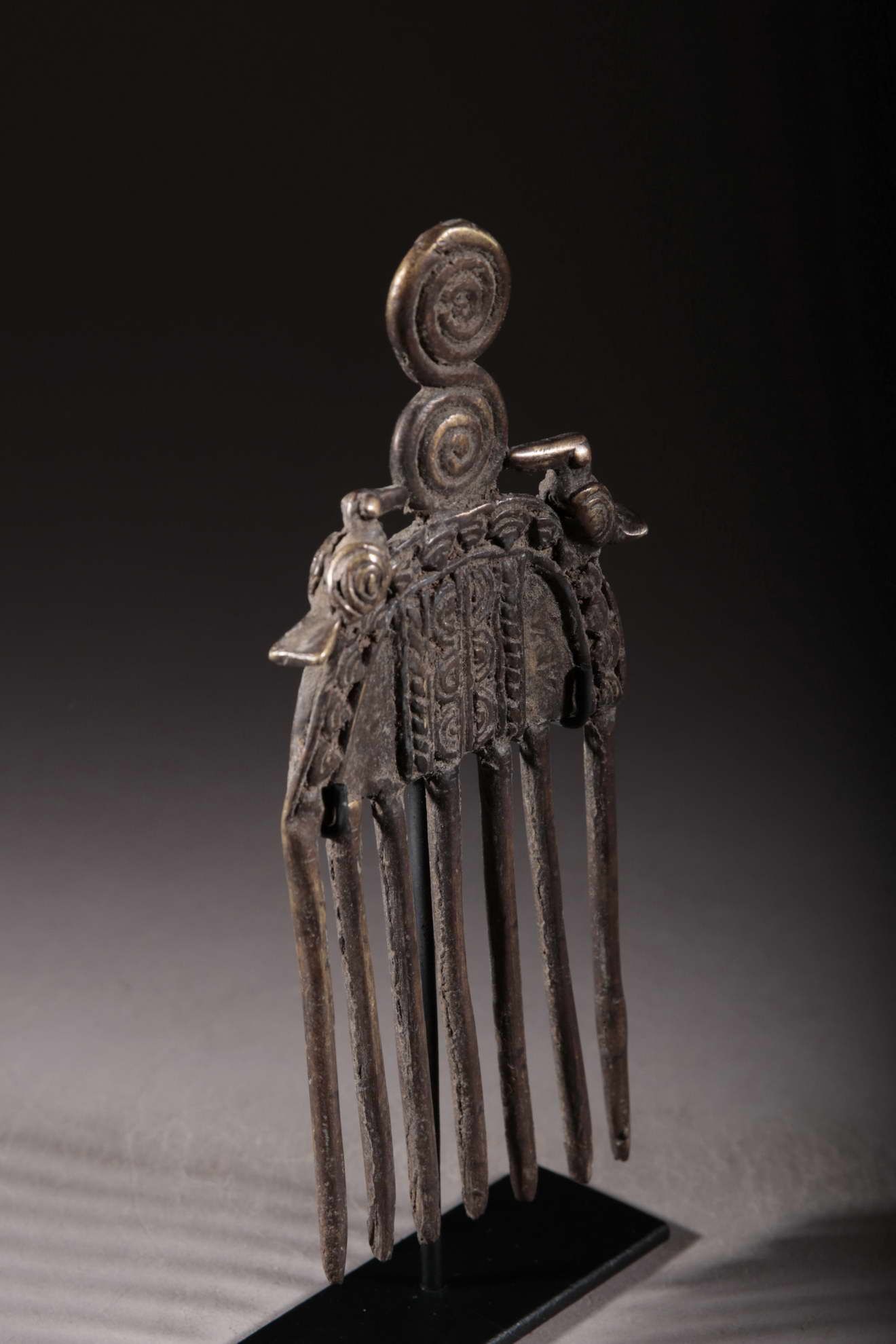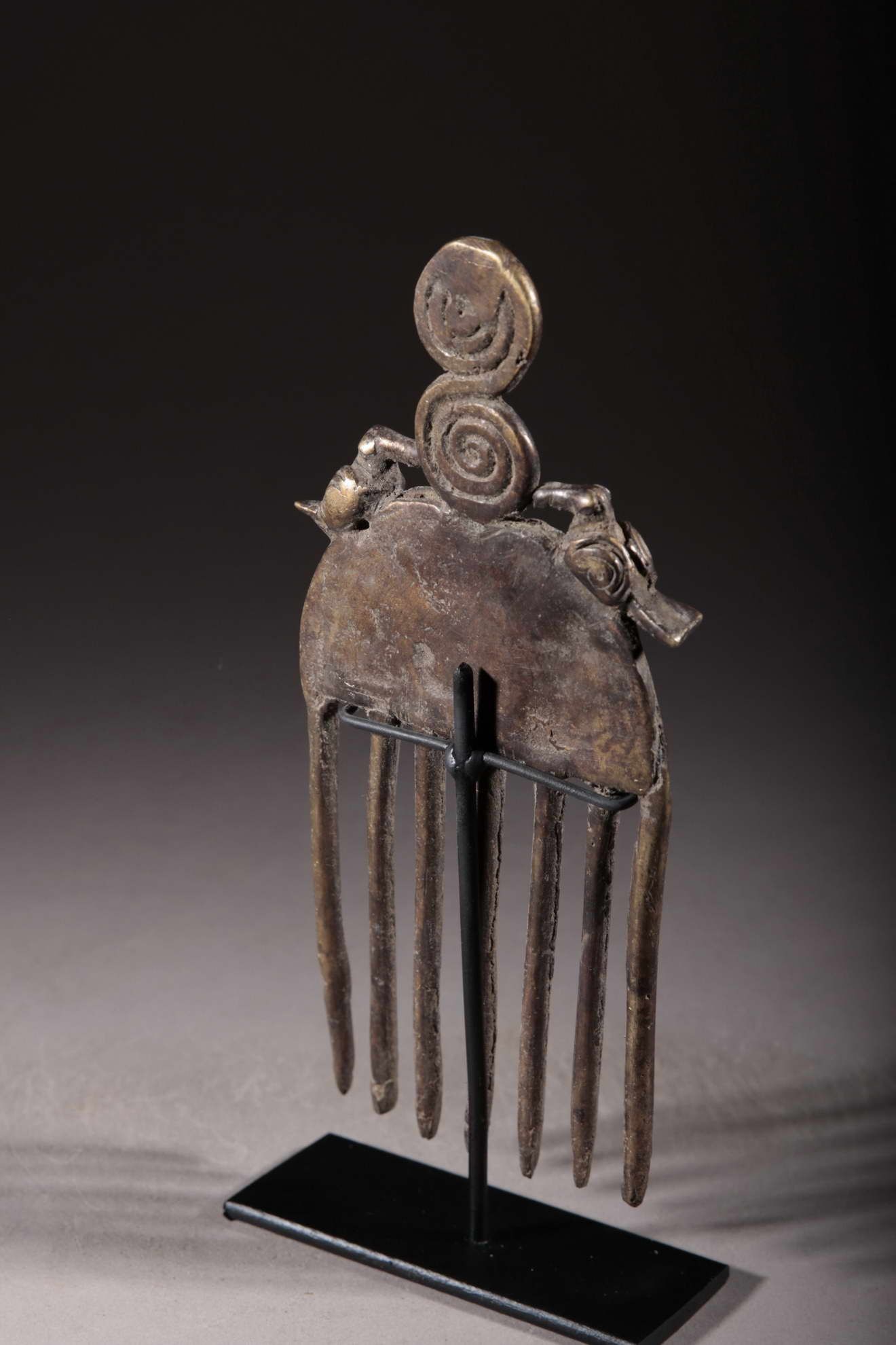 Peigne traditionnel Baoulé de Côte d'Ivoire en bronze.