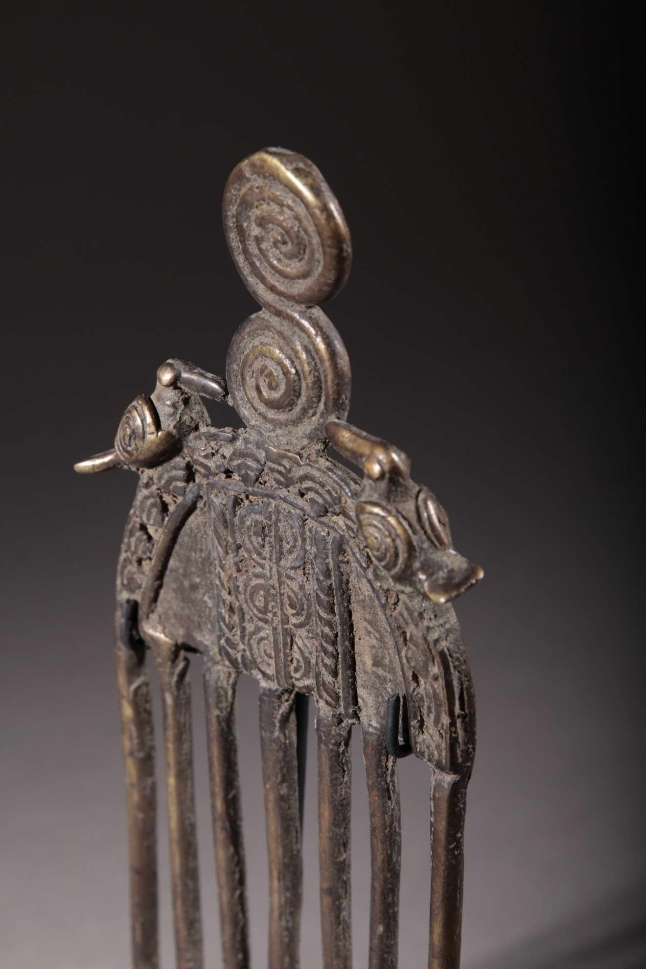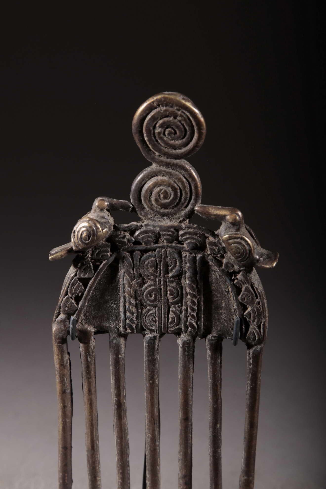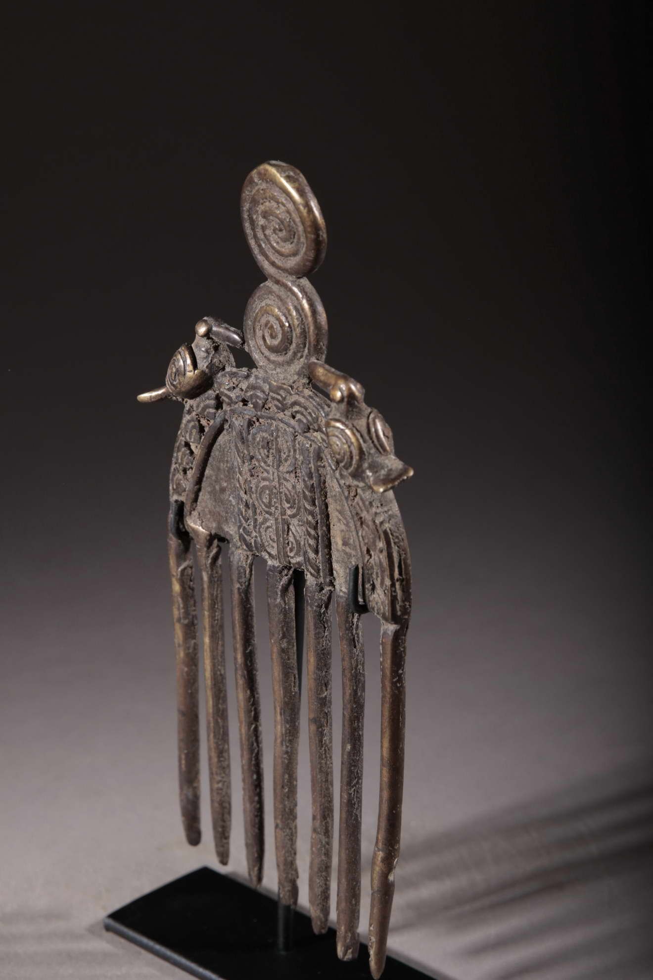 Peigne traditionnel Baoulé de Côte d'Ivoire en bronze.