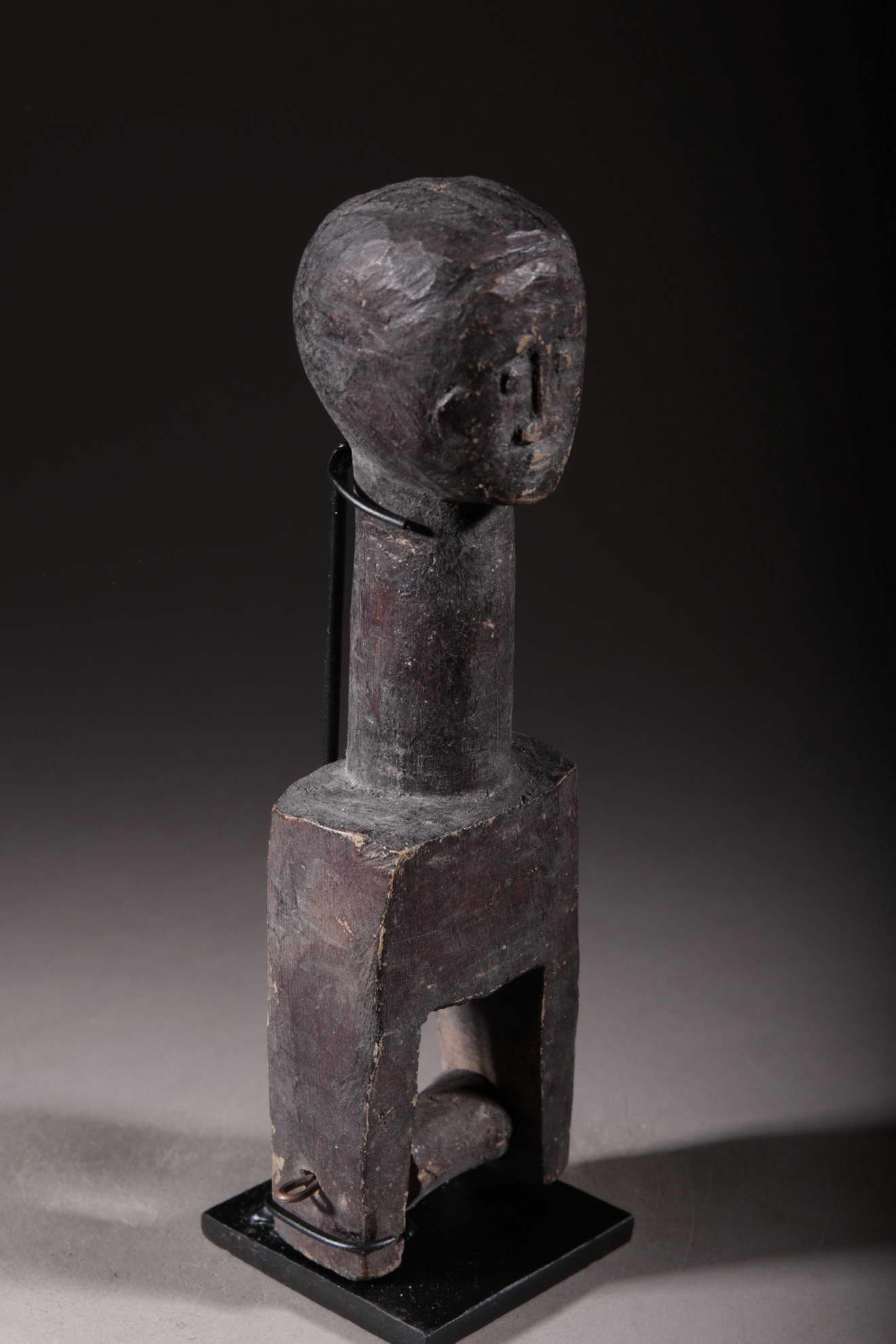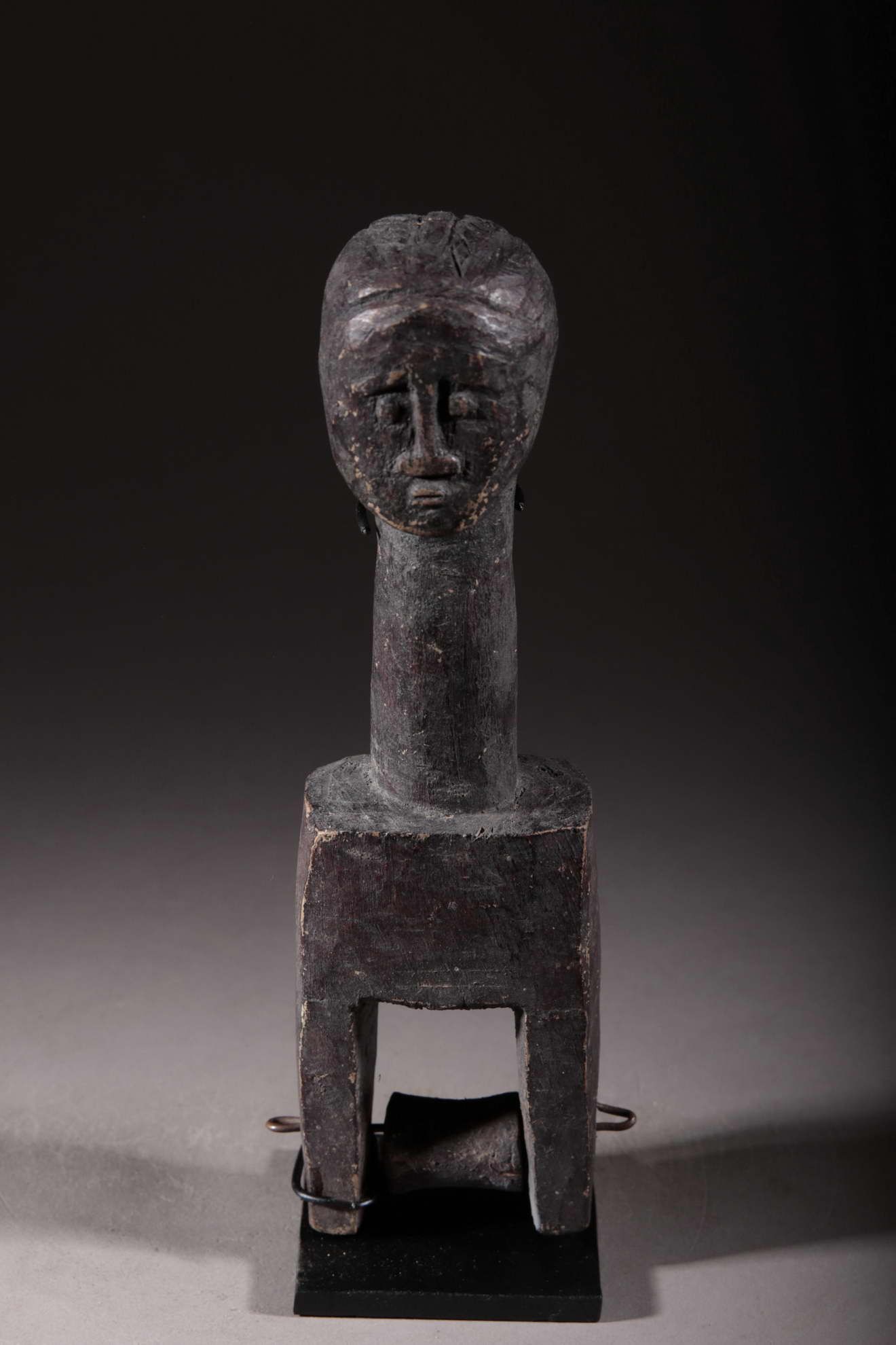Poulie de métier à tisser Baoulé de Côte d'Ivoire. Pièce de plus de 50 ans. Pièce sur socle.