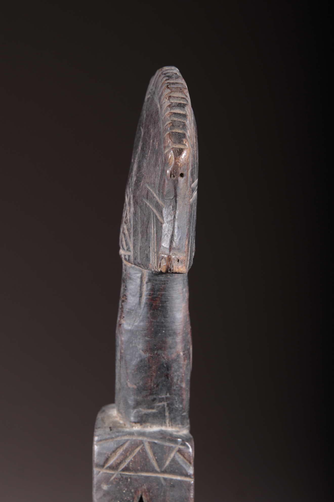 Le terme « biiga » signifie en mooré, la langue des Mossi, « enfant » dans le sens d’un « individu n’ayant pas atteint la maturité physiologique » ou de « descendant ». Bien qu’appelées « enfant » (biiga) et traitées comme tel par les petites filles, ces figurines reproduisent visuellement à petite échelle une femme : une jeune fille par la chevelure et les scarifications abdominales, mais aussi une épouse par la déformation des seins, plus précisément une mère. Ces figures sont donc autant une représentation de l’enfant que l’image de la femme à venir ou même sa future progéniture. Bien que les biiga figurent des femmes, les enfants leur donnent un prénom de garçon ou de fille, les habillent, les lavent, les nourrissent, les portent sur le dos, les font sauter sur leurs jambes allongées…comme un véritable bébé. Parfois offert par l’un des parents, la biiga, alors conservée précieusement, est emportée par la jeune mariée chez son époux car considérée comme un stimulant à la grossesse. Si la grossesse n’arrive pas, l’épouse stérile va en acquérir une autre comme support des forces fécondantes. Selon Suzanne Lallemand, la biiga –en tant que double protecteur du bébé- reçoit les premiers soins : une fois le cordon ombilical coupé, la toilette du nouveau-né passe après celle de l’enfant de bois, ainsi que le massage au beurre de karité. La figurine est ensuite couchée près de la maman avant qu’on y place son nourrisson. Quant à la première goutte de lait maternel, elle est réservée à la statuette avant que l’enfant ne tête sa mère. Plus tard la statuette sera portée une dernière fois dans le dos.