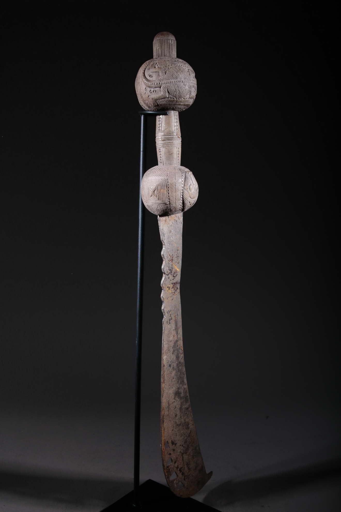 Sabre de cérémonie Baoulé. Pièce ancienne de plus de 50 ans. Pièce sur socle.