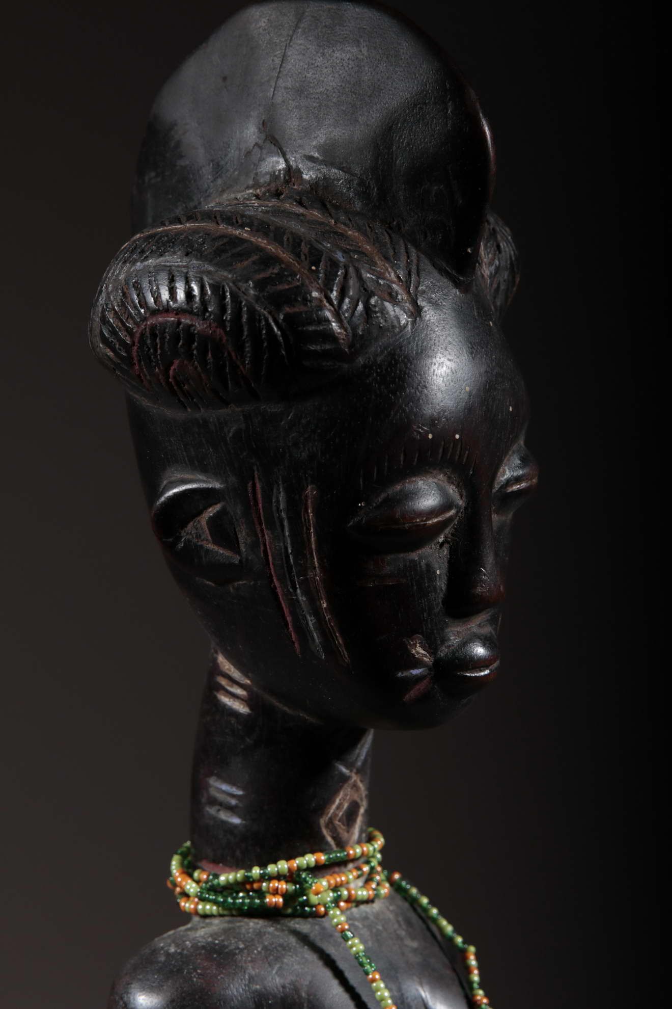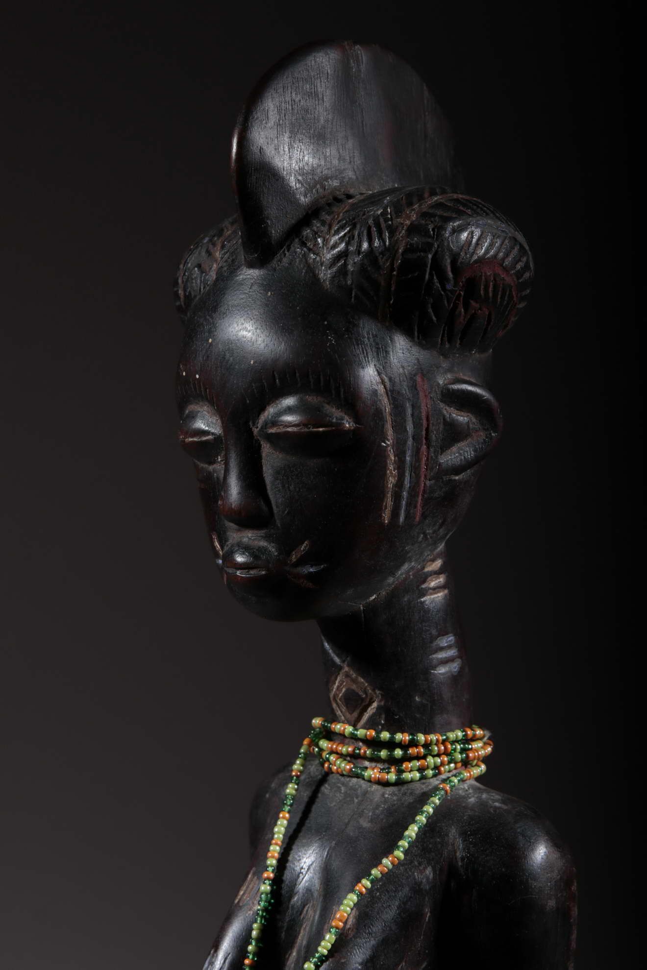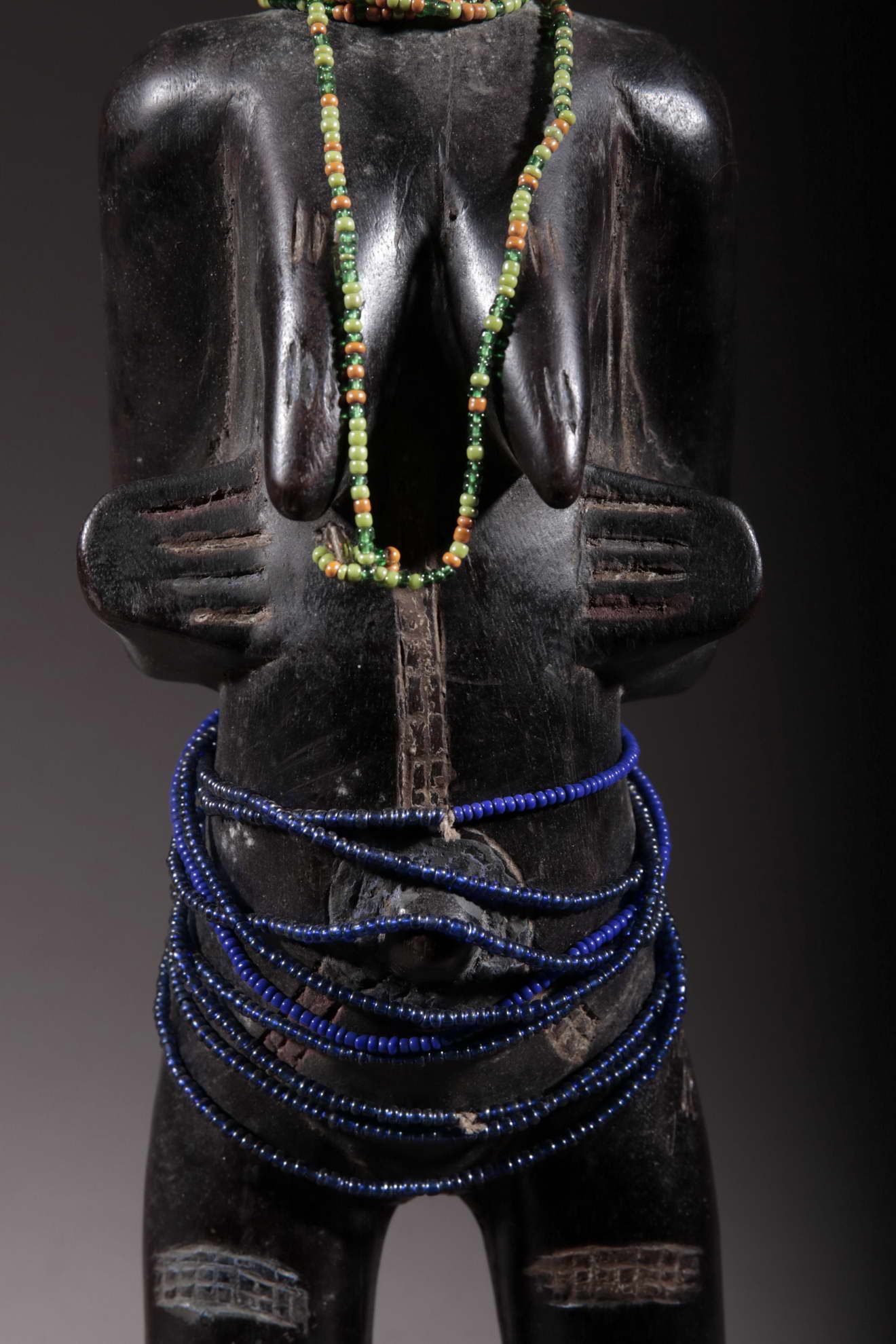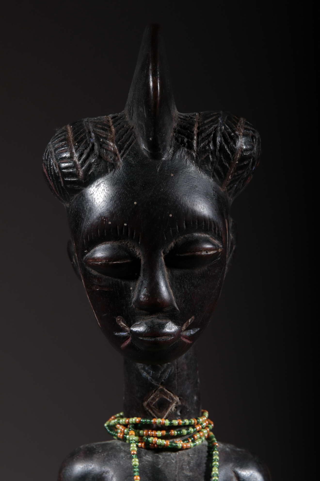 - les proportions du corps sont proches de celles des ancêtres Baoulé (jambes courtes, bras le long du corps, proportions de la tête importantes par rapport au reste du corps, importance du nombril)