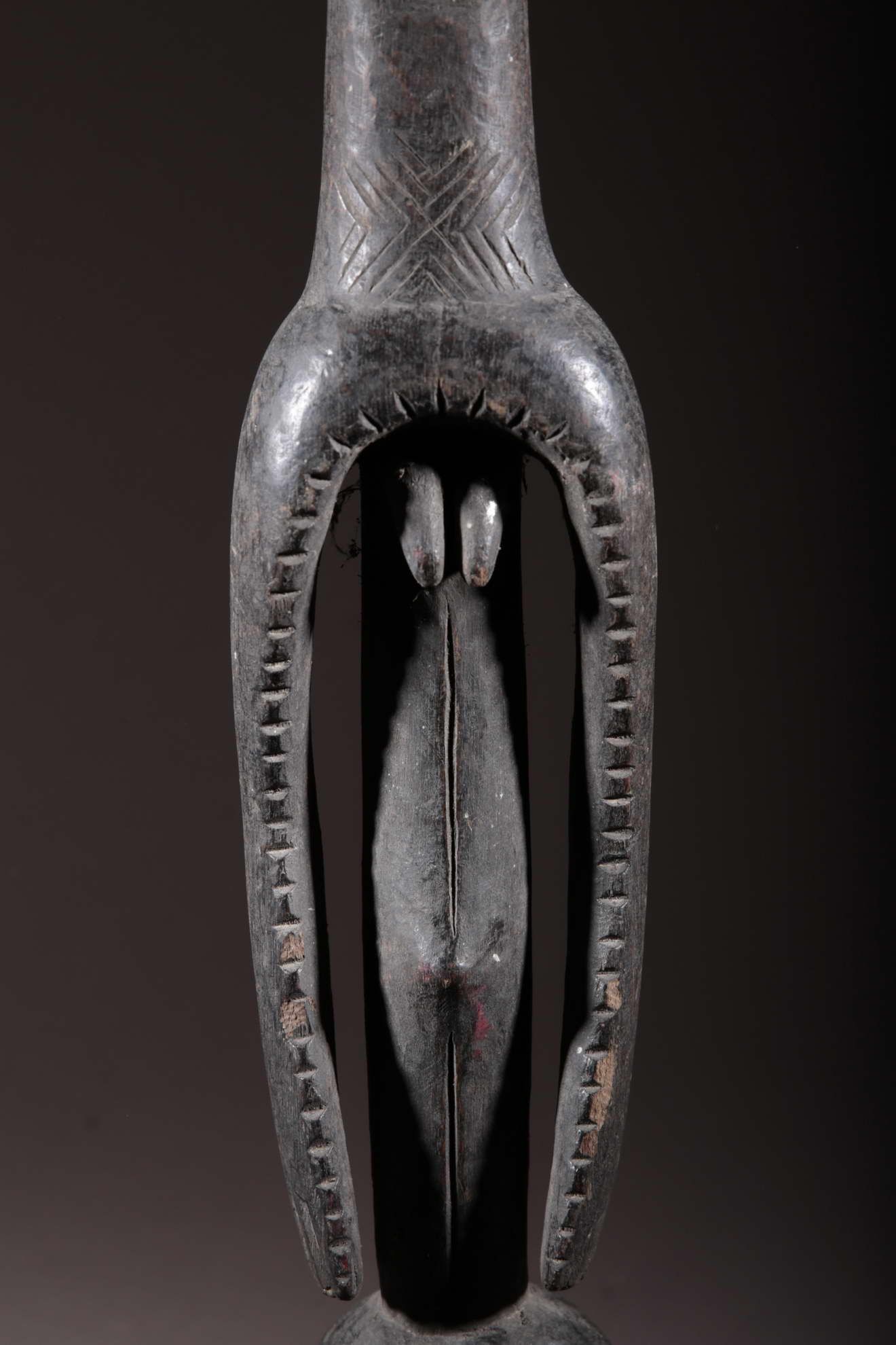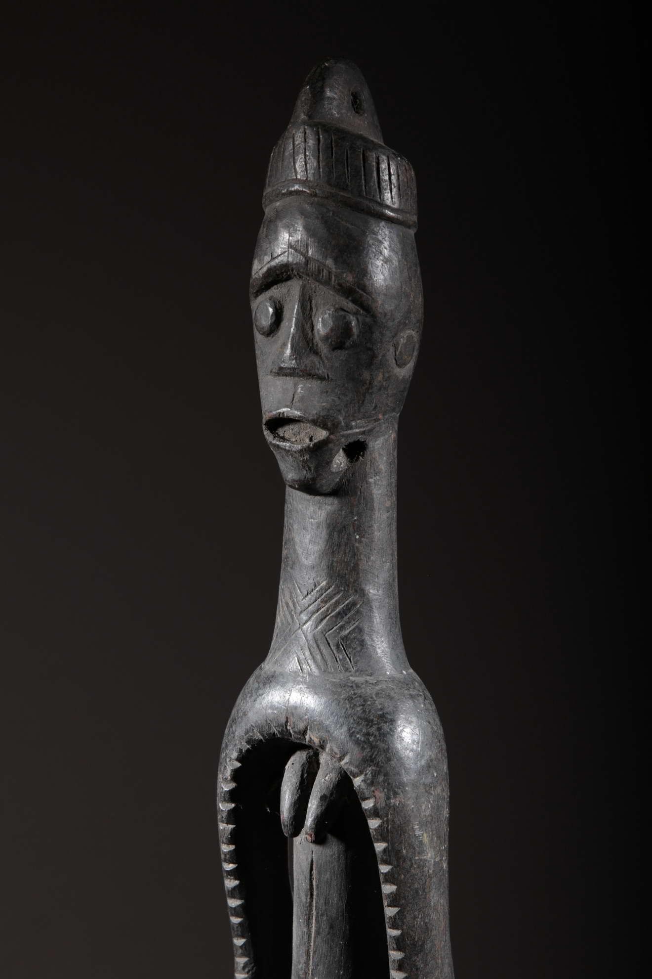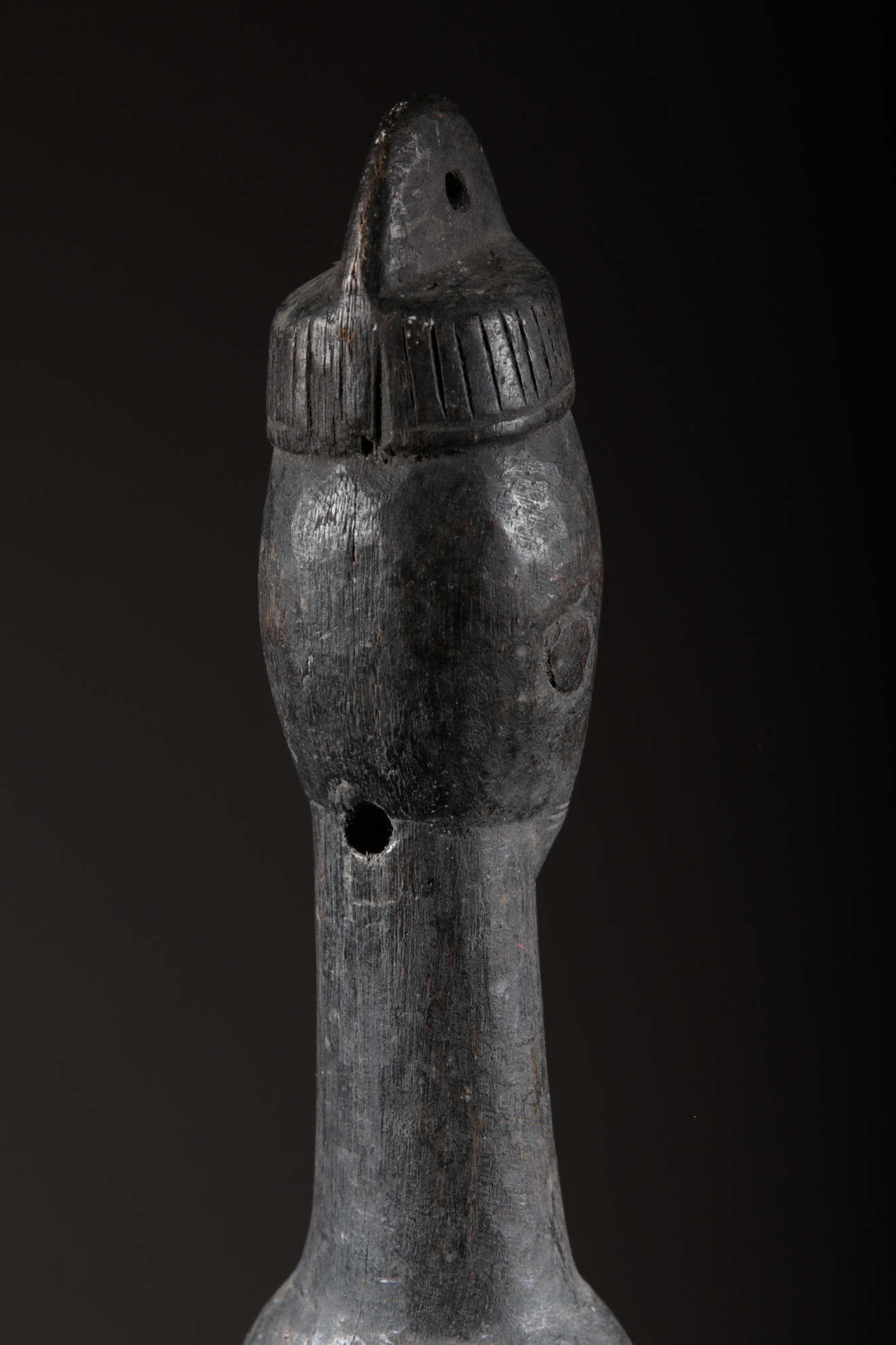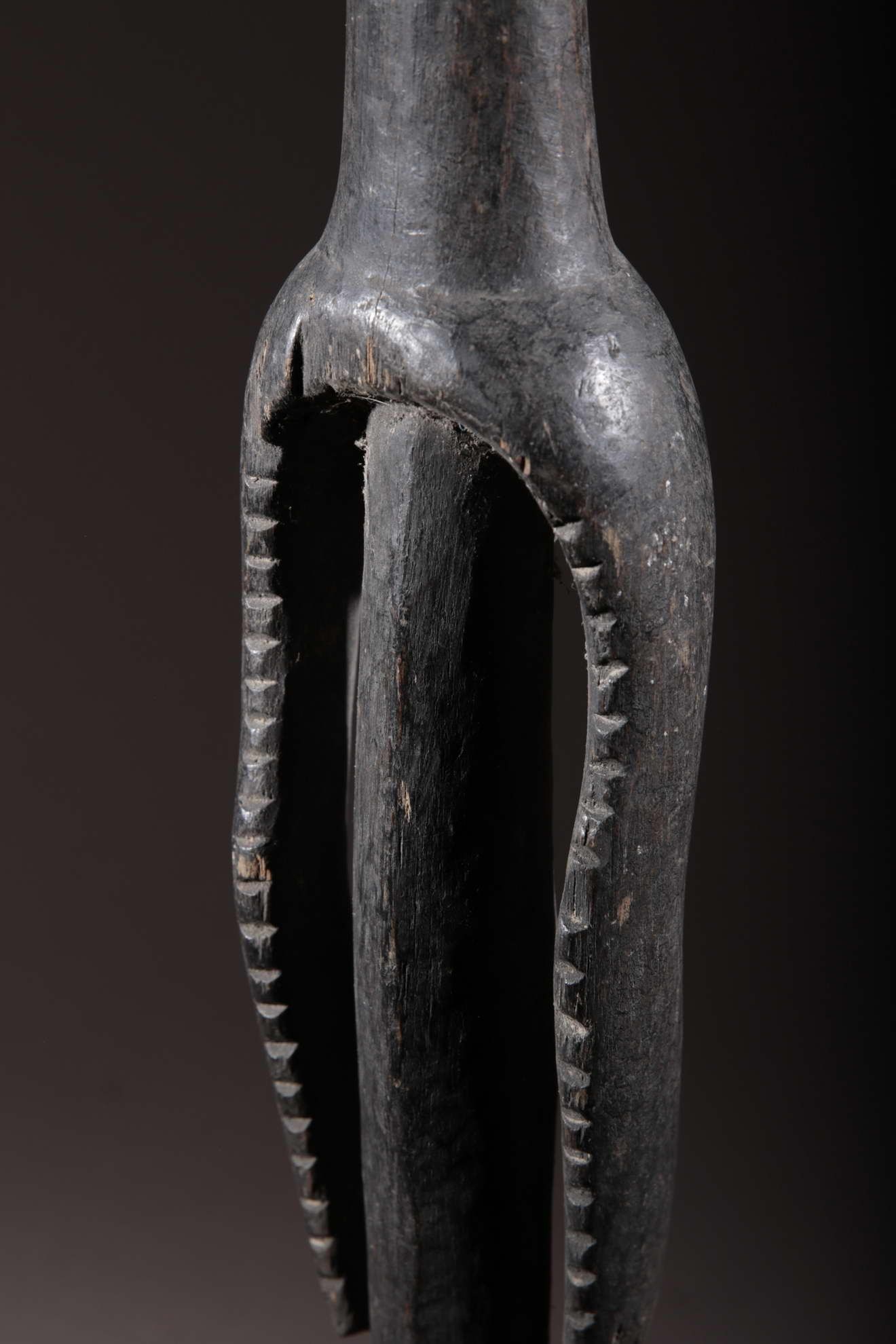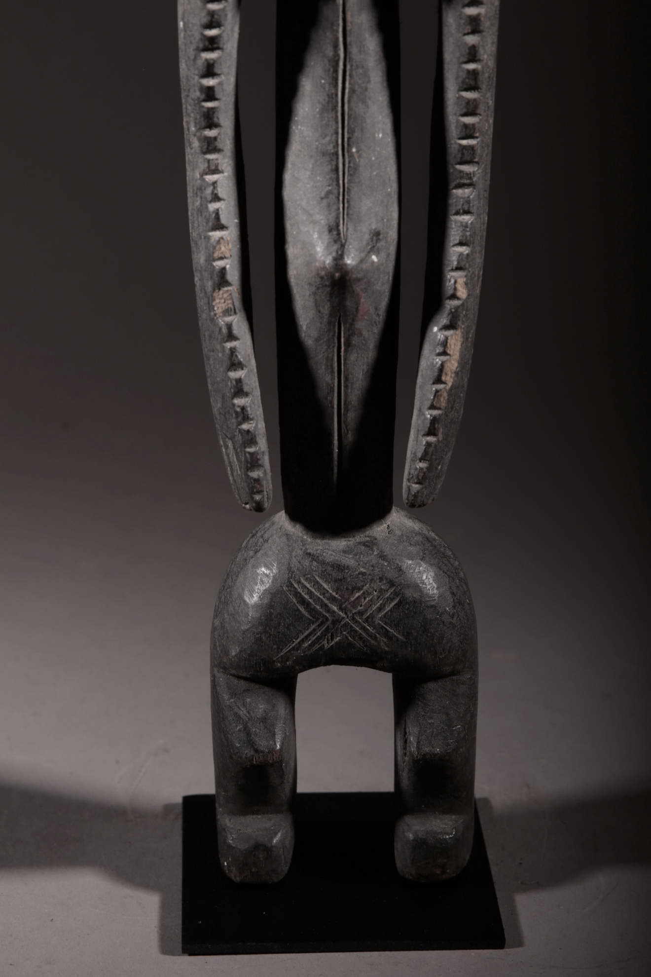 Cette statue est une figure oraculaire et guérisseuse. Elle est typique du style mumuye : mince avec un corps allongé et une petite tête, un torse et des bras longs et des jambes très courtes. C’est une « figure parlante », qui était probablement dressée à l’extérieure d’une case ou à l’intérieur d’un bâtiment. Elle sert à révéler l’identité des voleurs et autres malfaiteurs. Un jus de plante médicinale était badigeonné sur la bouche de la statue, qui « parlait » alors à l’être humain à l’écoute, comme un oracle. Les statues mumuye étaient également utilisées pour les rites de guérison lors d’épidémies telles que la variole.