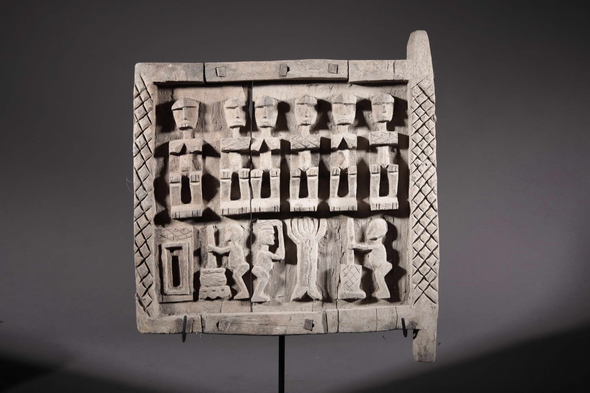 Volet de grenier Dogon du Mali. Pièce ancienne, de plus 50 ans. Pièce sur socle.