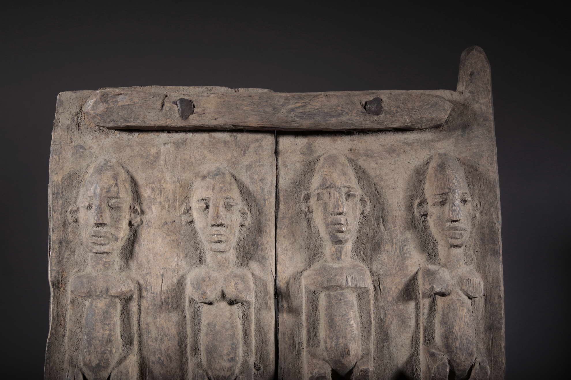 Volet de grenier Dogon du Mali. Pièce ancienne, de plus 50 ans. Pièce sur socle.