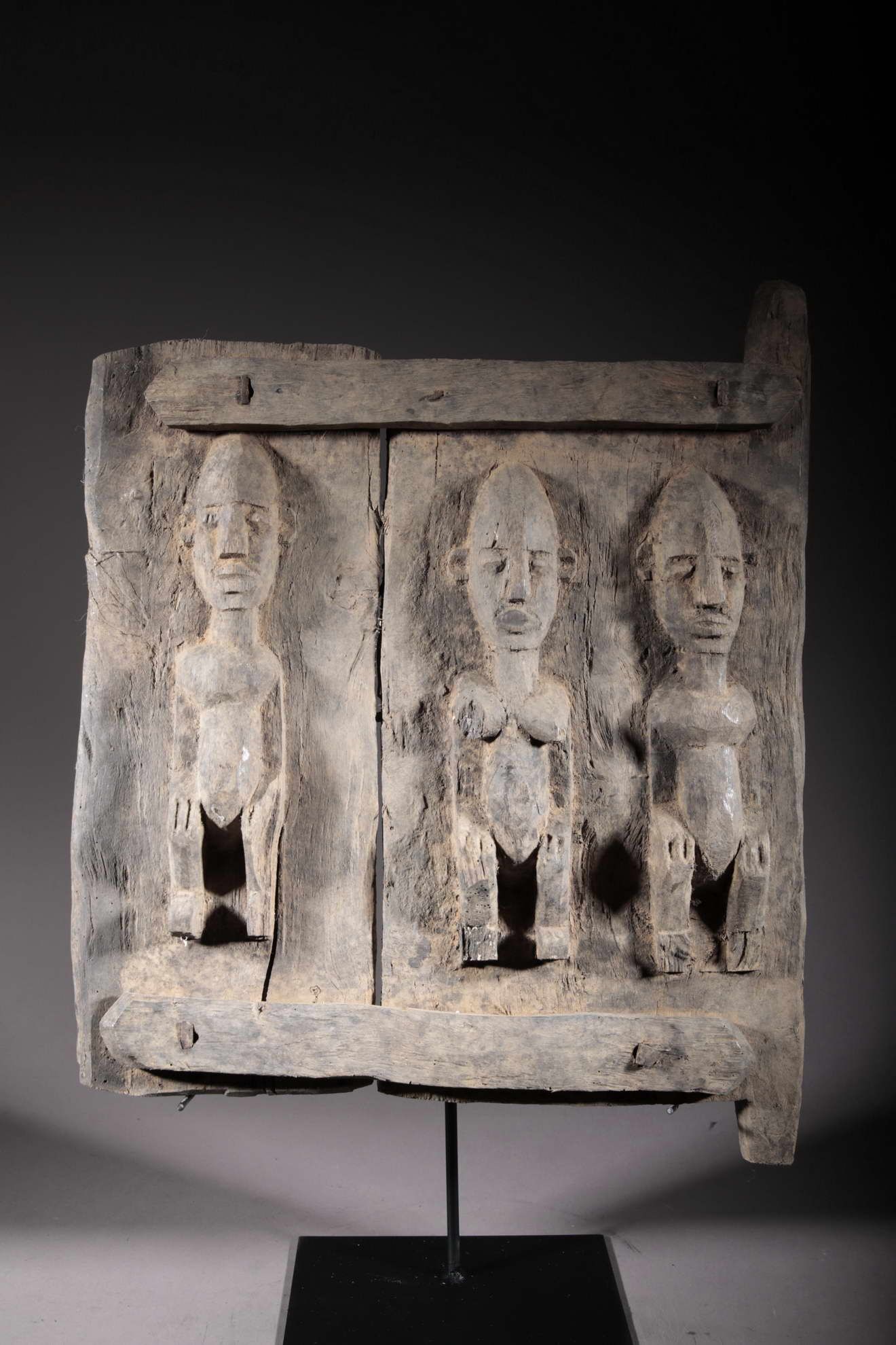 Volet de grenier Dogon du Mali. Pièce ancienne, de plus 50 ans. Pièce sur socle.